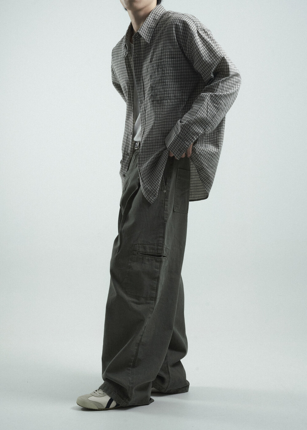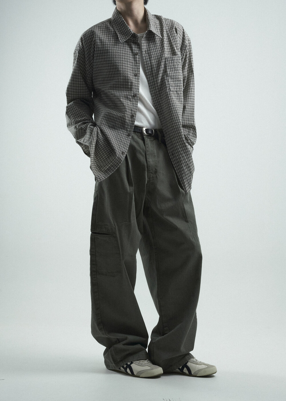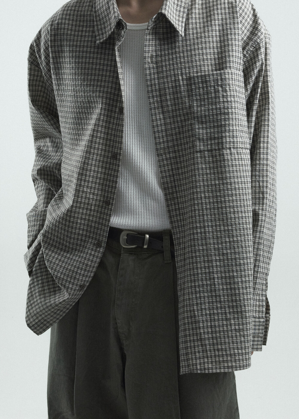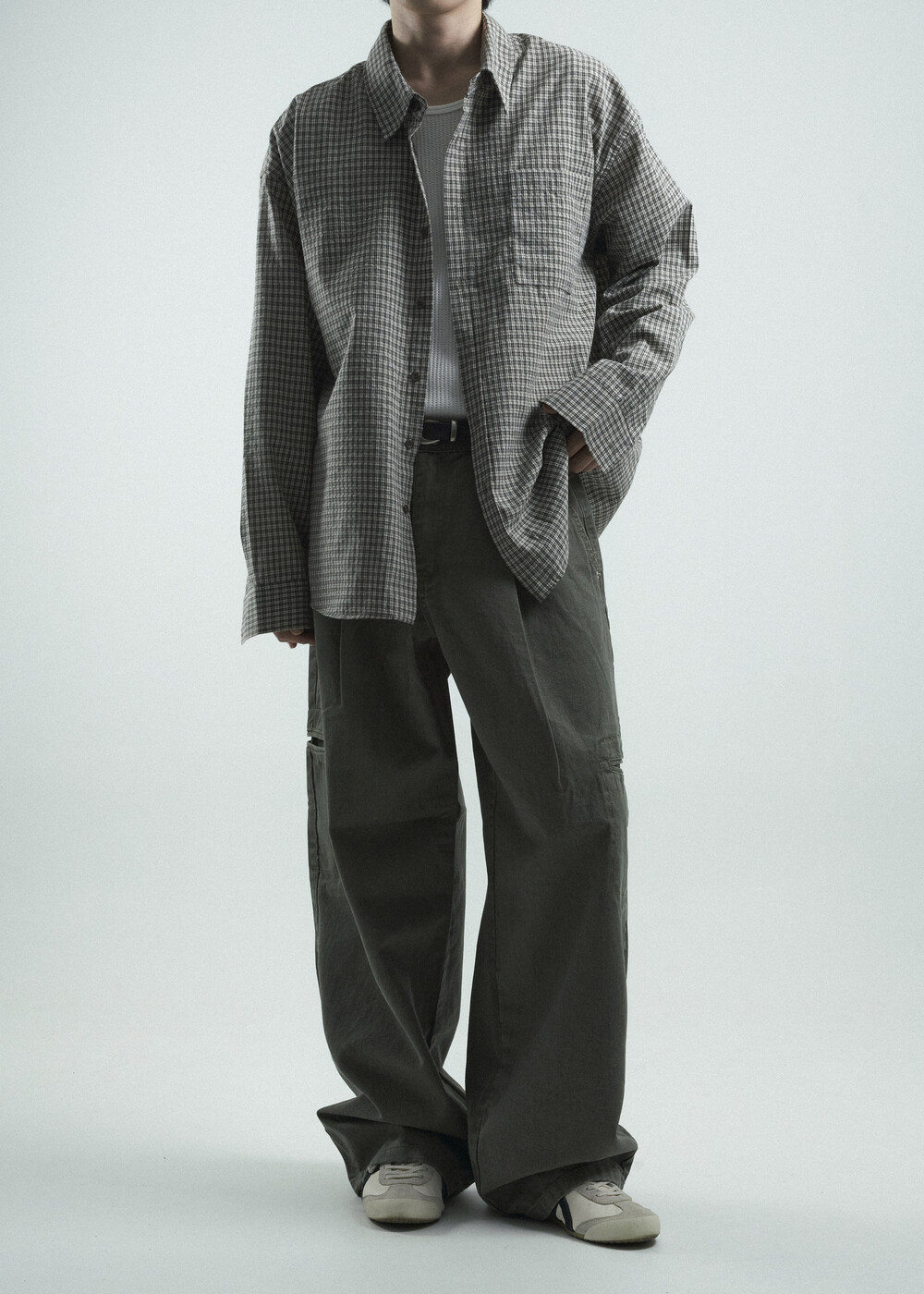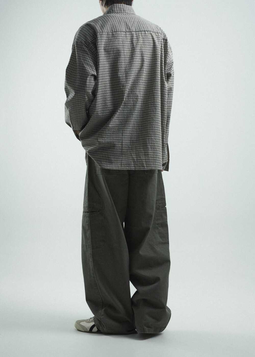 - 다운톤 컬러감의 그레이브라운 느낌을 무채색느낌으로 잘 담아낸 체크 패턴 셔츠 제품