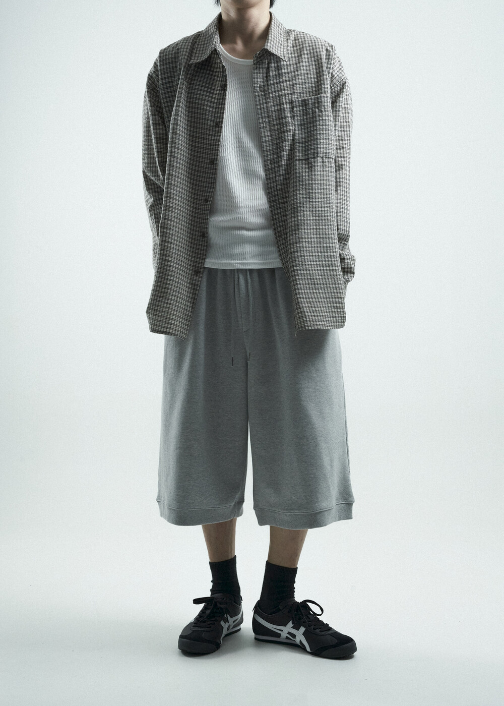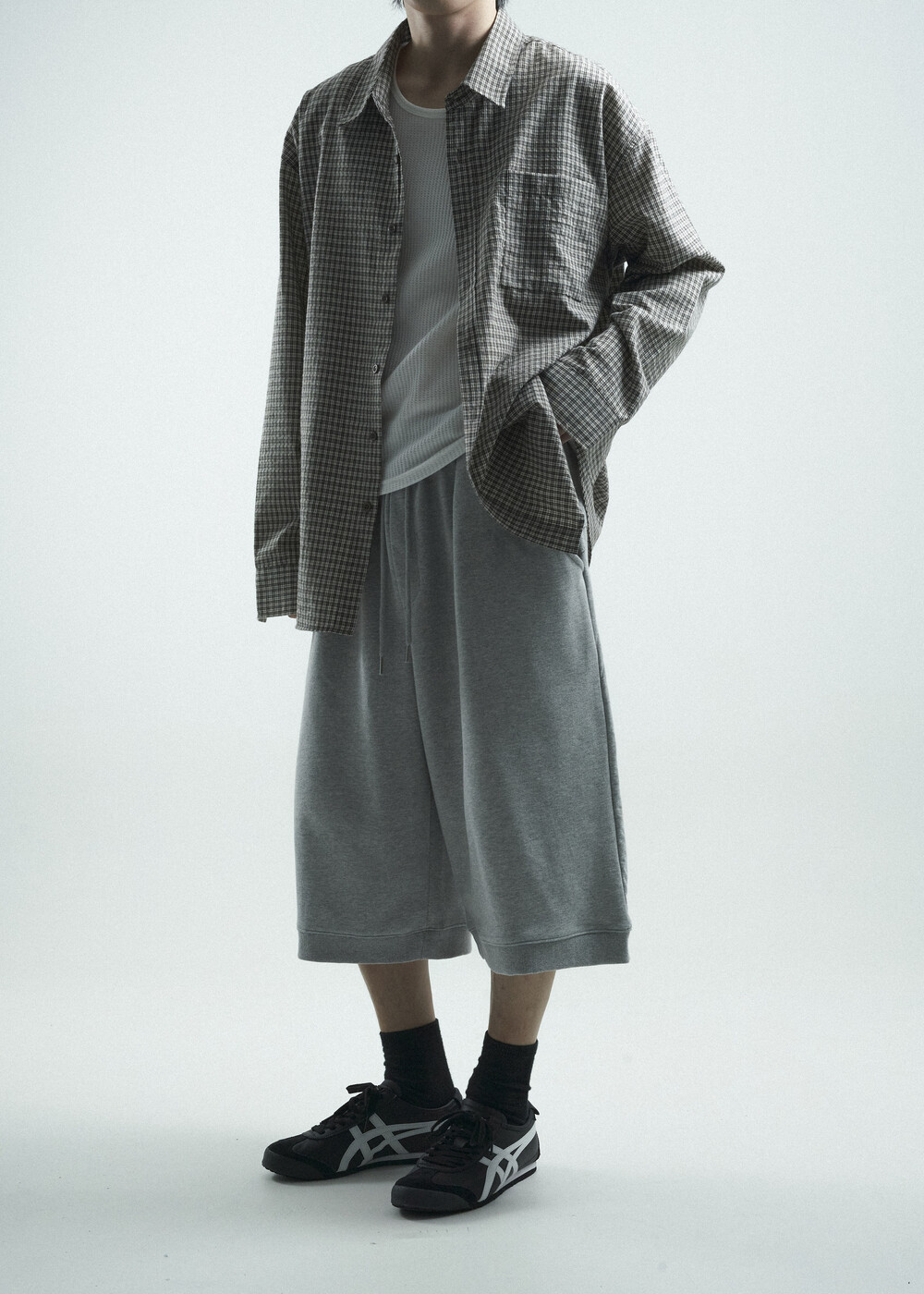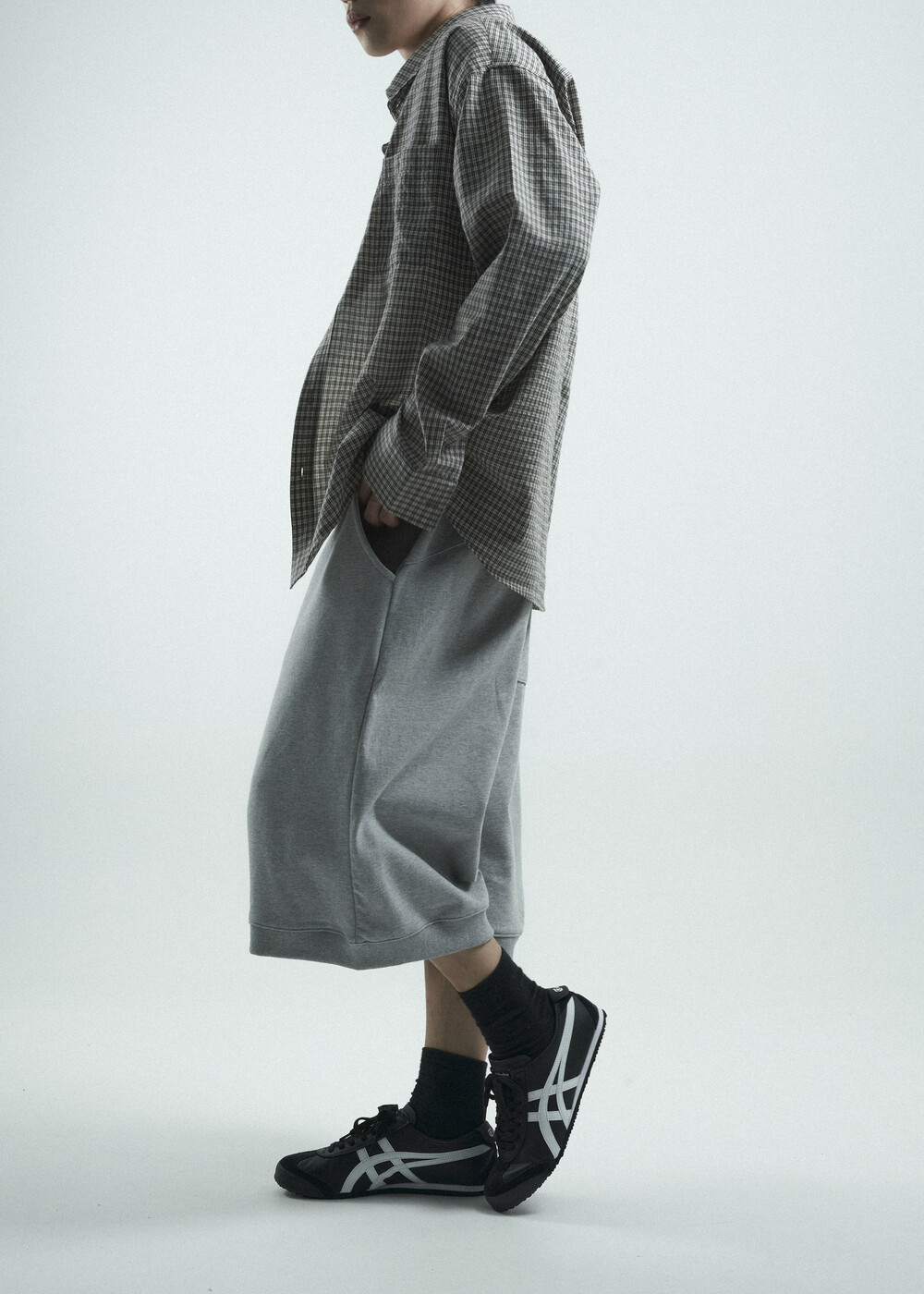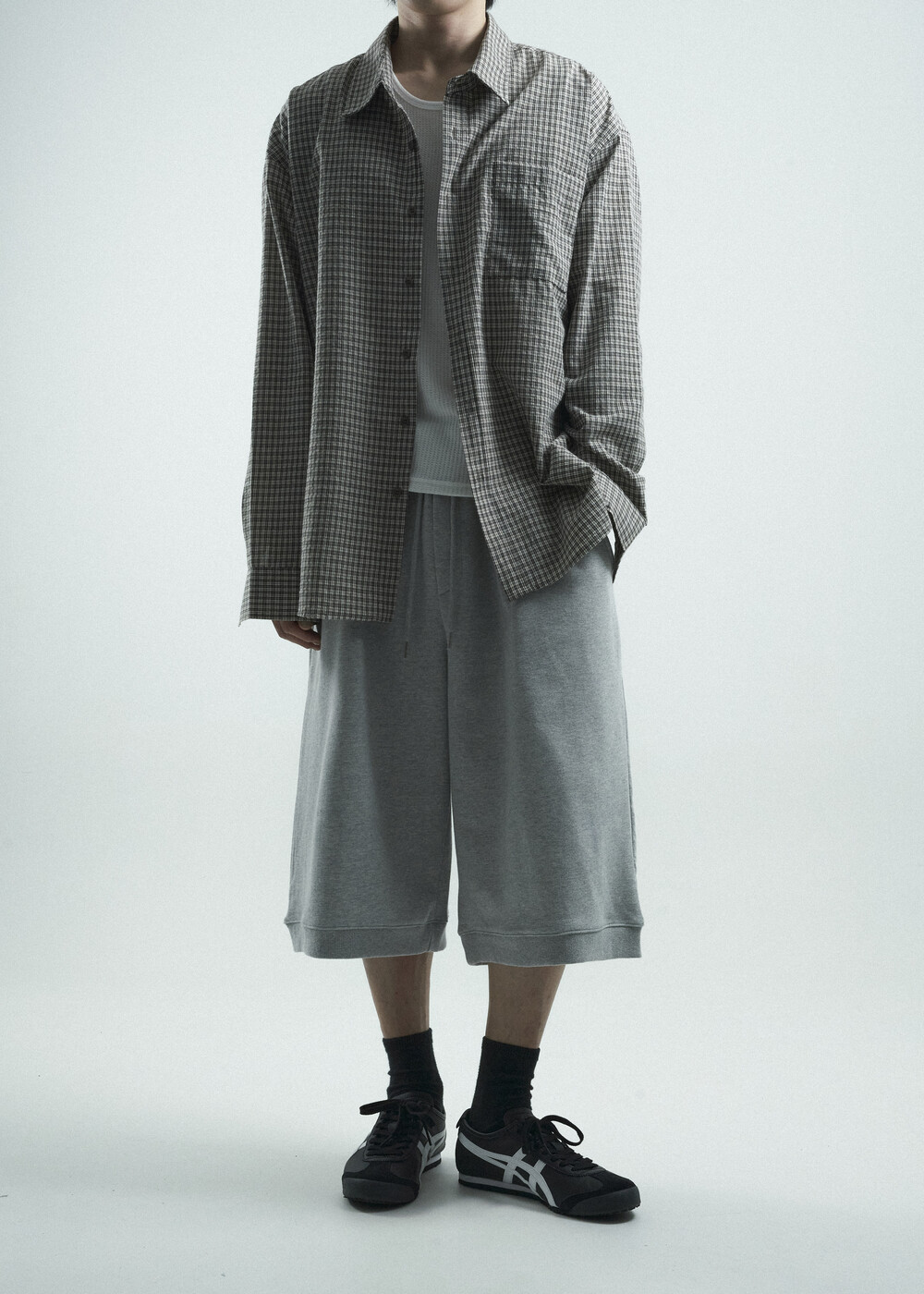 - 다운톤 컬러감의 그레이브라운 느낌을 무채색느낌으로 잘 담아낸 체크 패턴 셔츠 제품