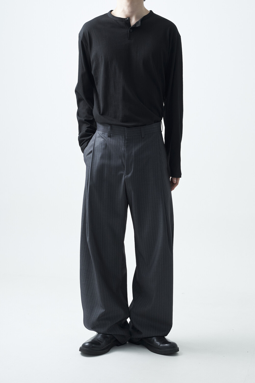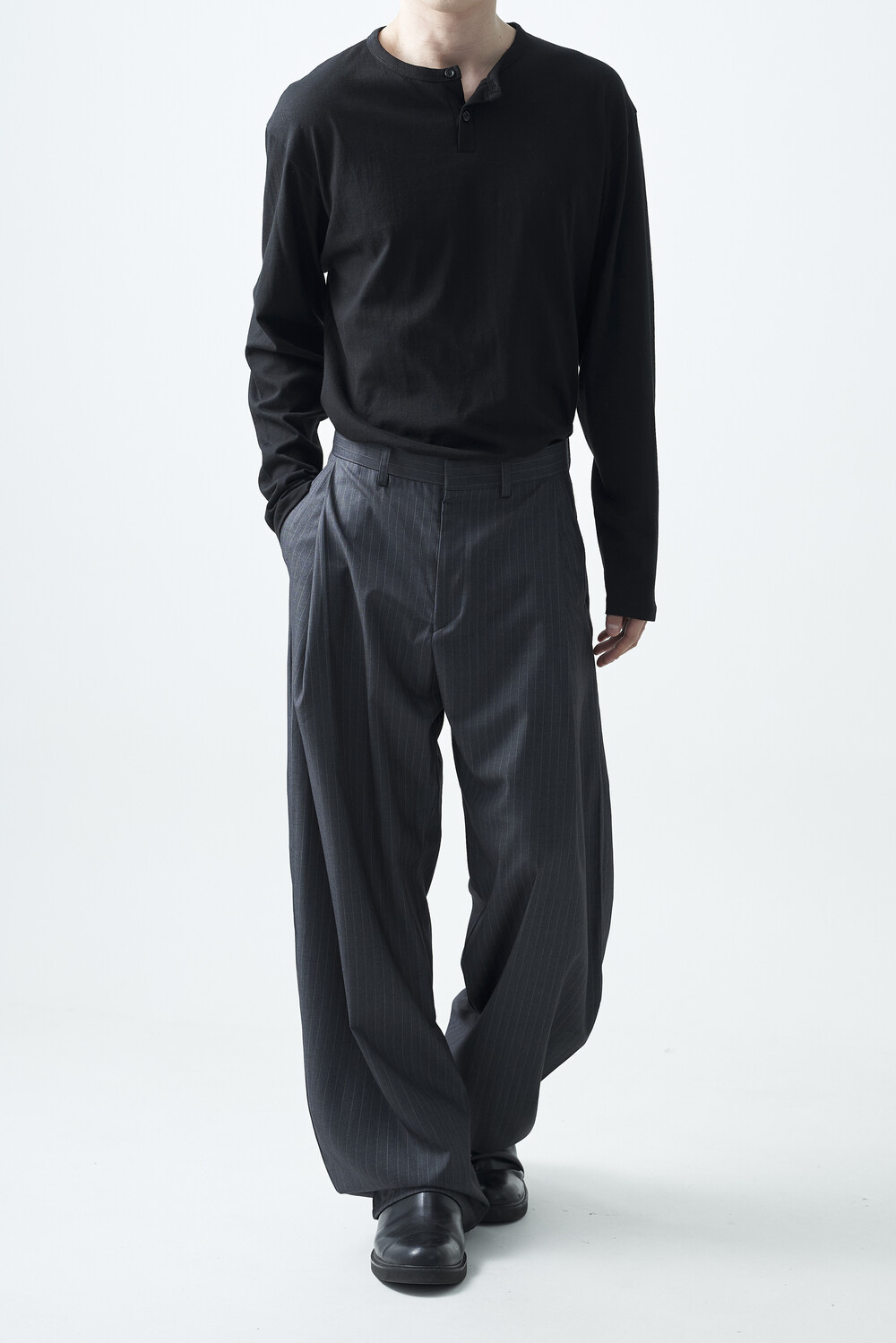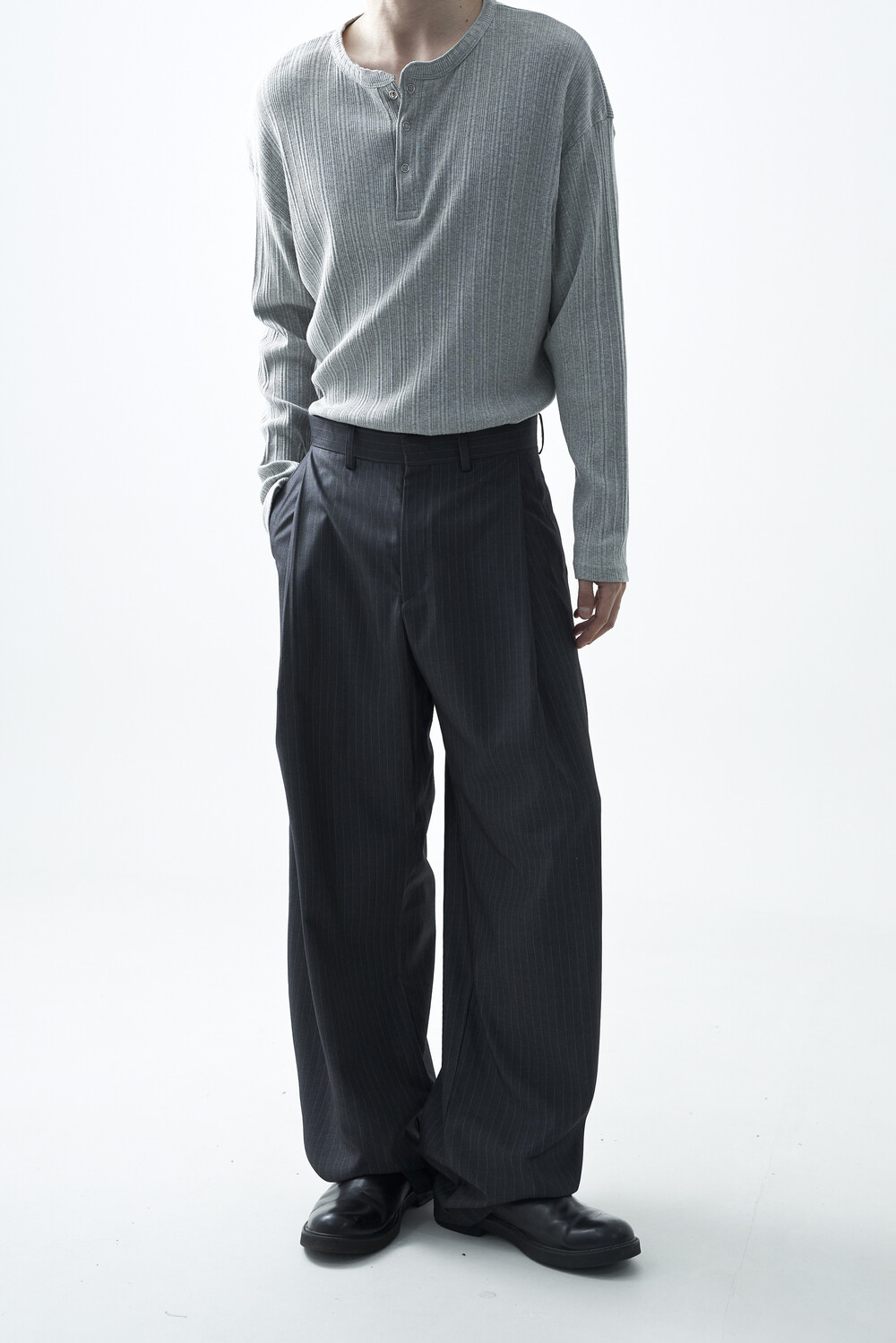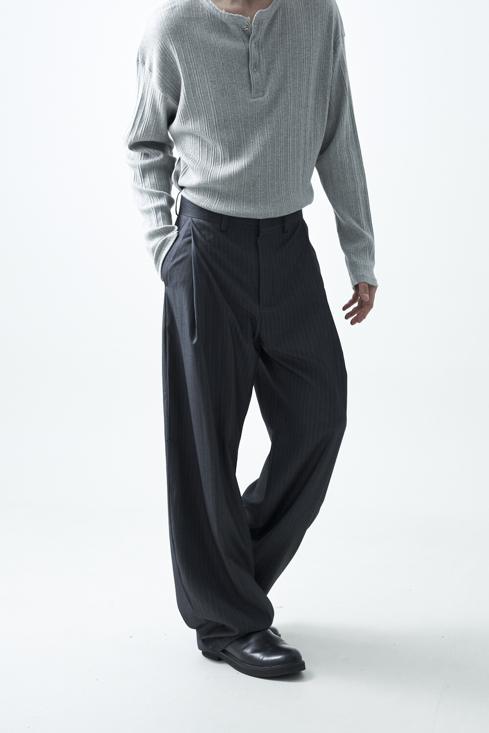 레이온 소재감을 통해 고급스러운 빛감이 맴도는 스트라이프 슬렉스 제품입니다. 사이드 핀턱을 통해 더욱 간결하고 미니멀한 커브드 와이드 핏이 매력적인 슬렉스로서 셋업 코디와 함께 다양한 매칭이 가능합니다.