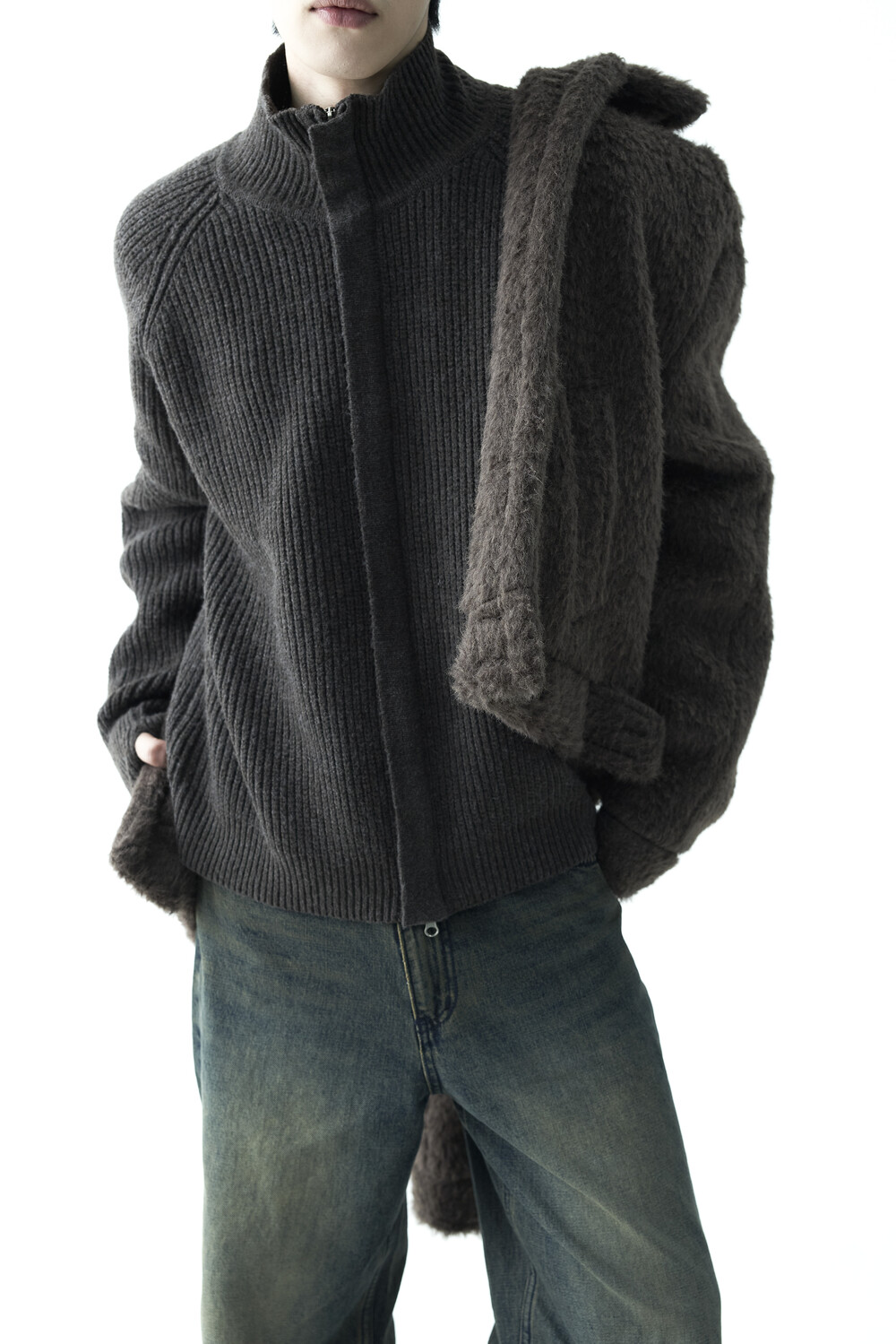 - 어깨선이 없는 래글런 숄더라인의 세미 오버핏 니트 집업 제품으로 히든 집업 디테일이 적용되었습니다. 싱글 또는 다양한 아우터와 레이어드 코디가 가능하며, 미들 스탠카라 형식으로 캐쥬얼한 아웃핏을 표현합니다.