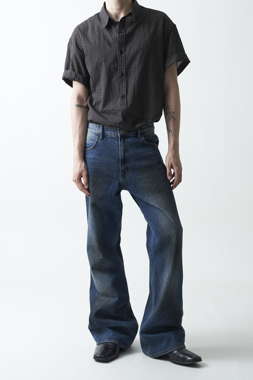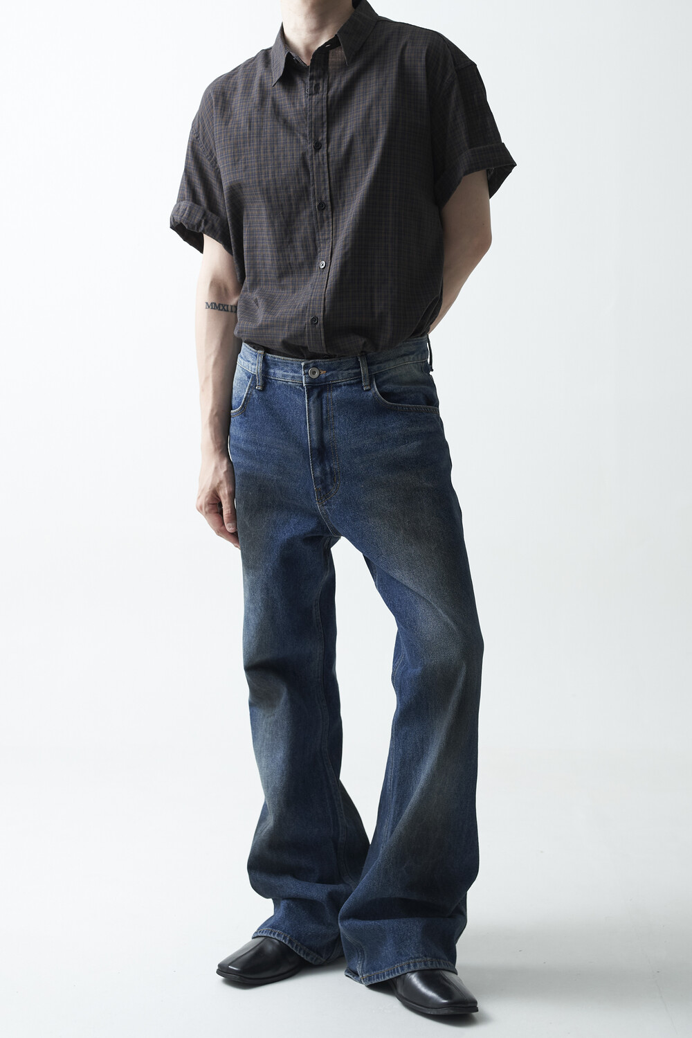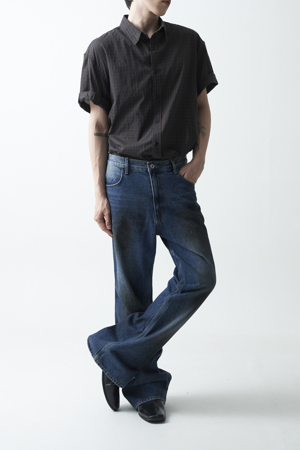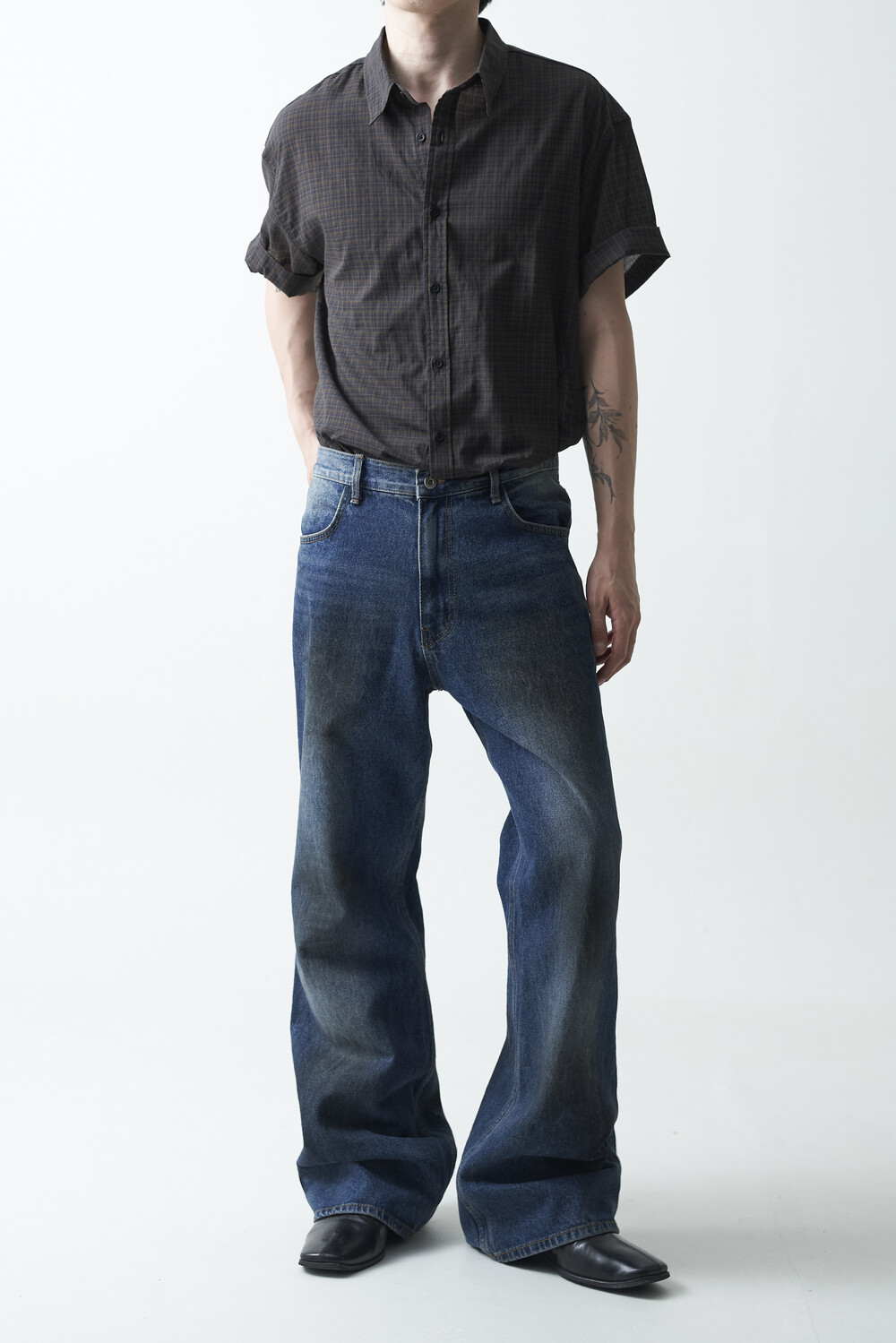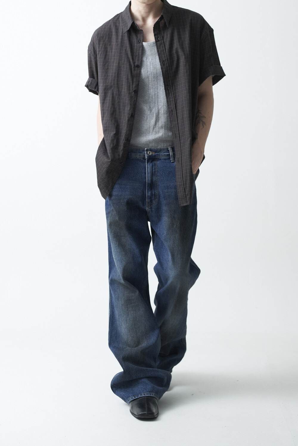 워시드 블랙 컬러감의 잔체크 패턴 하프 셔츠 제품입니다. 컬러매치 버튼과 전체적으로 미니멀한 디테일들이 매력적이며, 데일리한 코디에 포인트주기 좋은 셔츠 제품입니다.