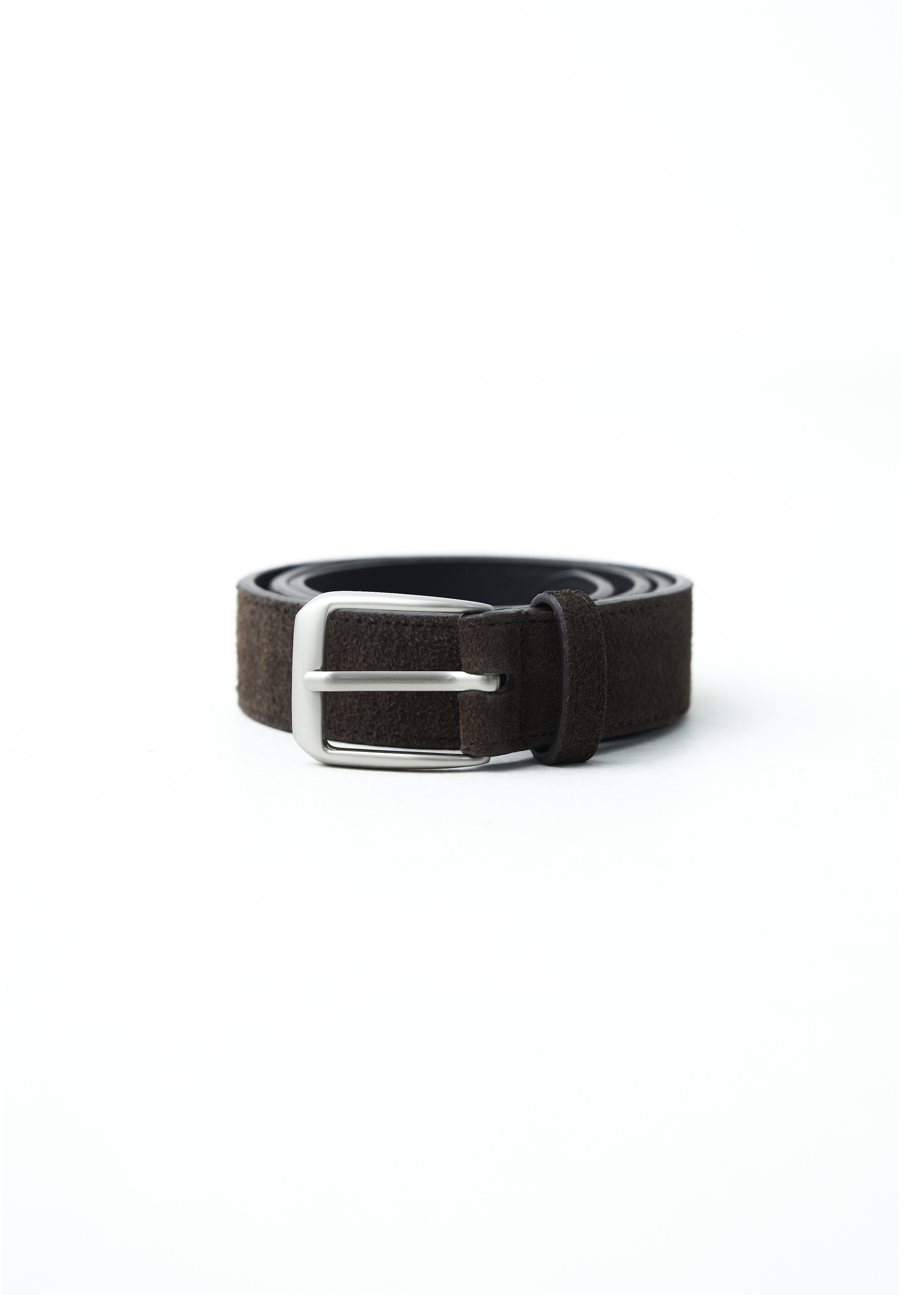 짙은 브라운 컬러감의 제품들과 높은 코디력을 보여주며 무채색 의류들과 함께 코디했을 때 그 매력을 유니크하게 느끼실 수 있습니다. 이태리 천연가죽을 소재로 제작된 스웨이드 벨트를 통해 더욱 미니멀한 코디에 포인트를 느껴보세요.
