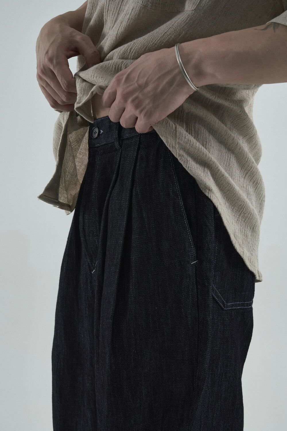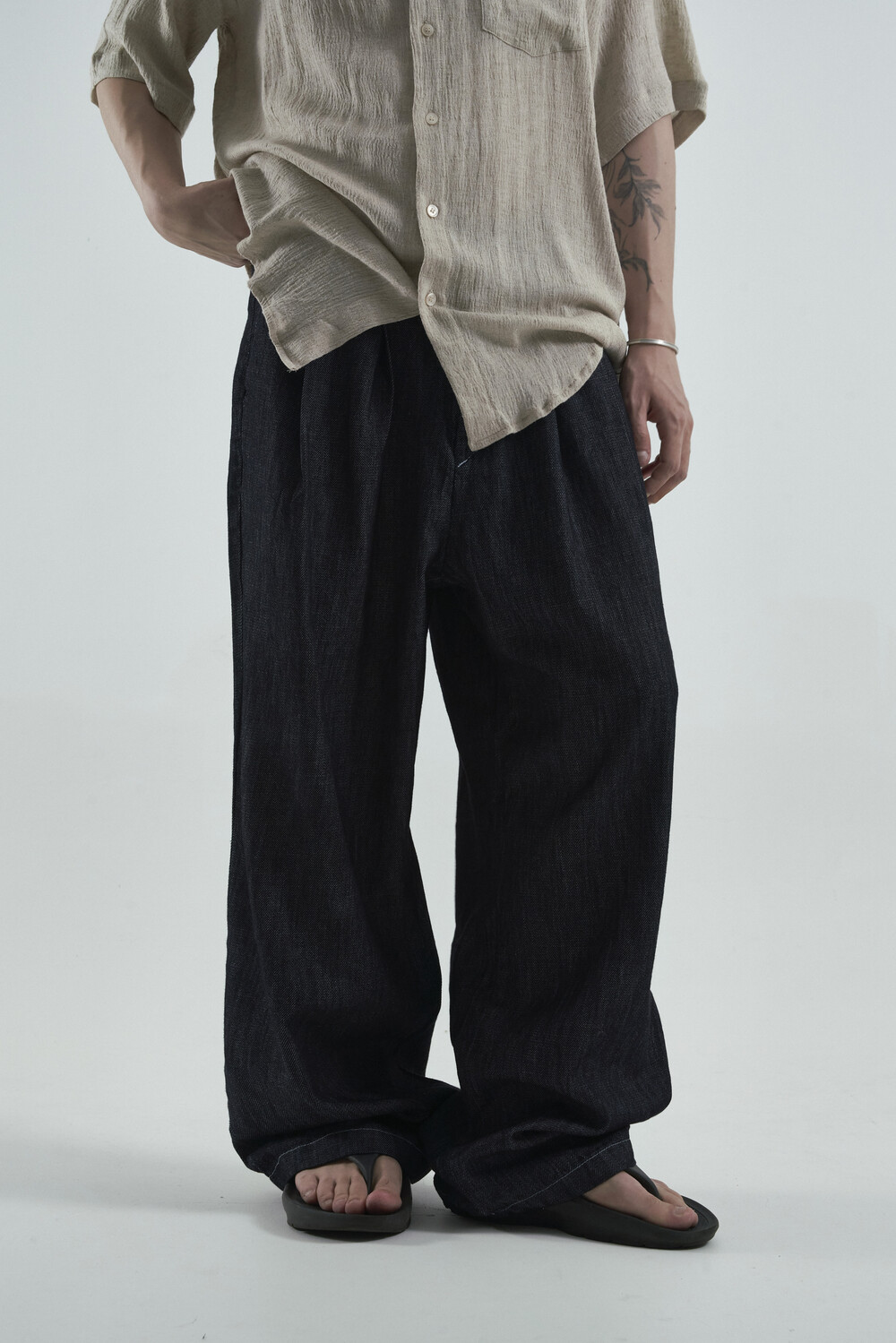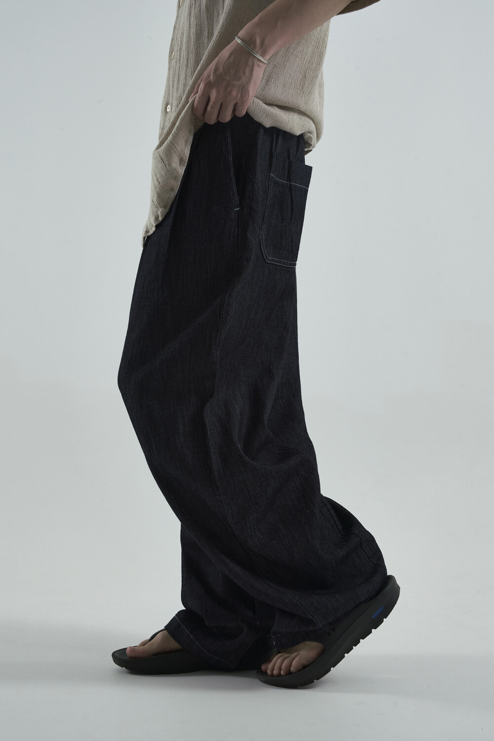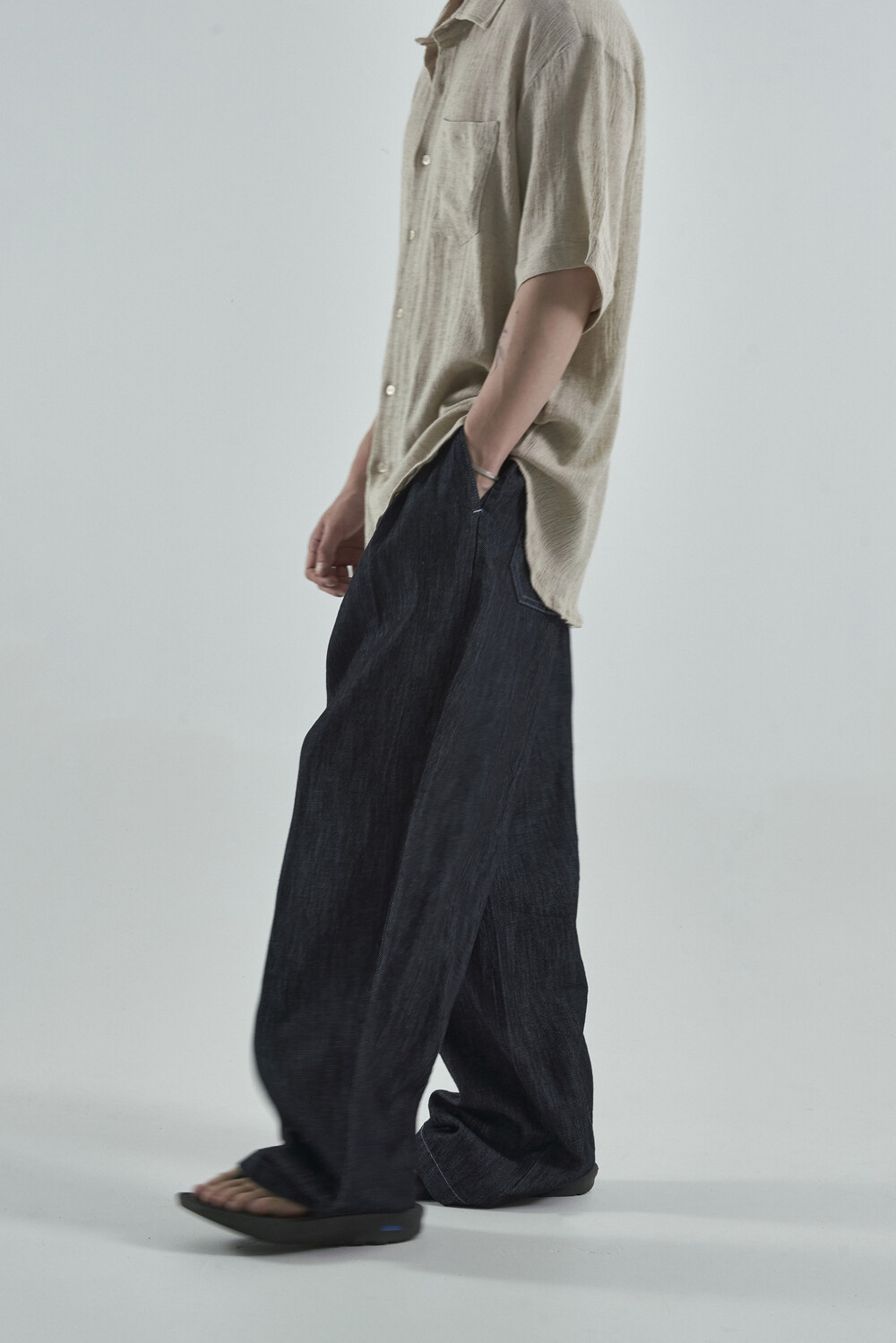 - 데님 팬츠 특유의 거친 느낌보다는 바이오워싱을 통한 부드러운 착용감과 린넨데님 텍스쳐를 나타내는 제품입니다.