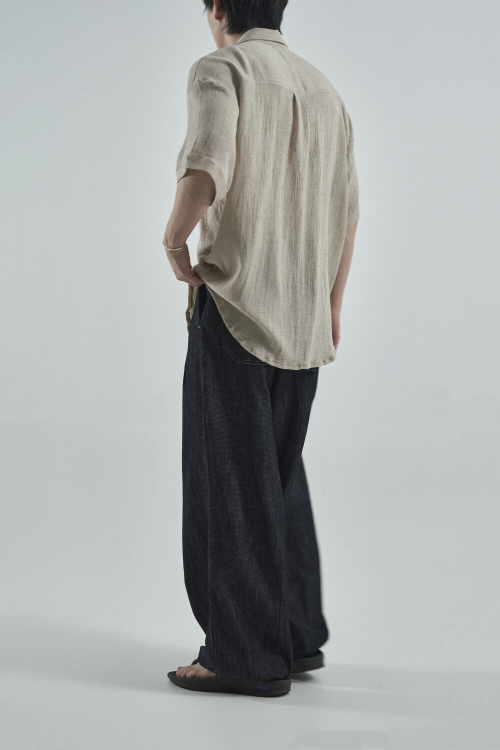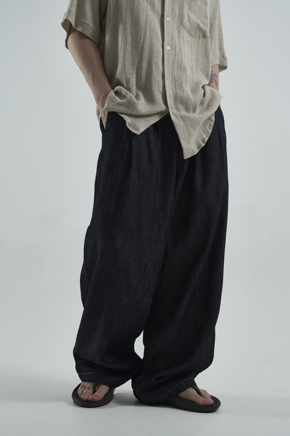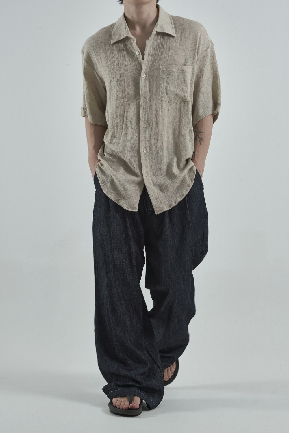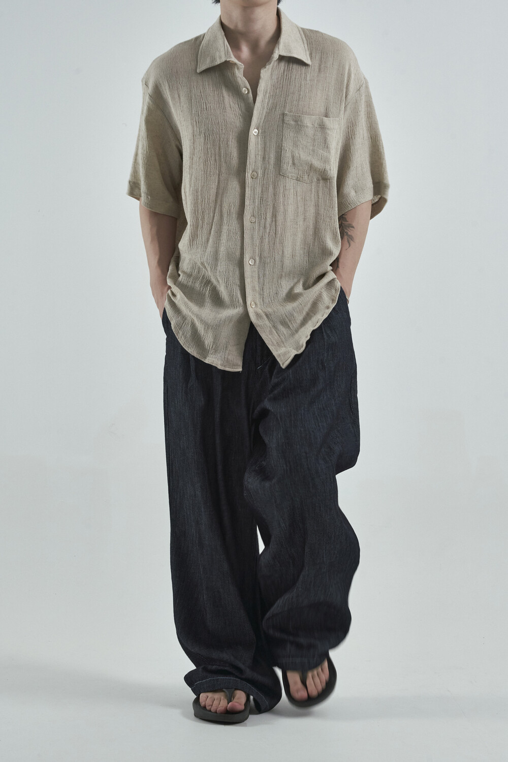 - 데님 팬츠 특유의 거친 느낌보다는 바이오워싱을 통한 부드러운 착용감과 린넨데님 텍스쳐를 나타내는 제품입니다.