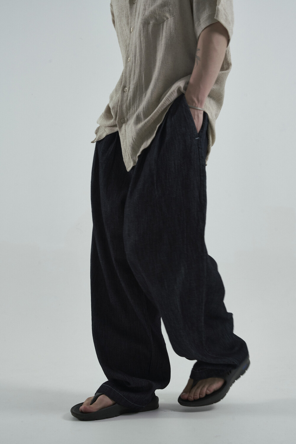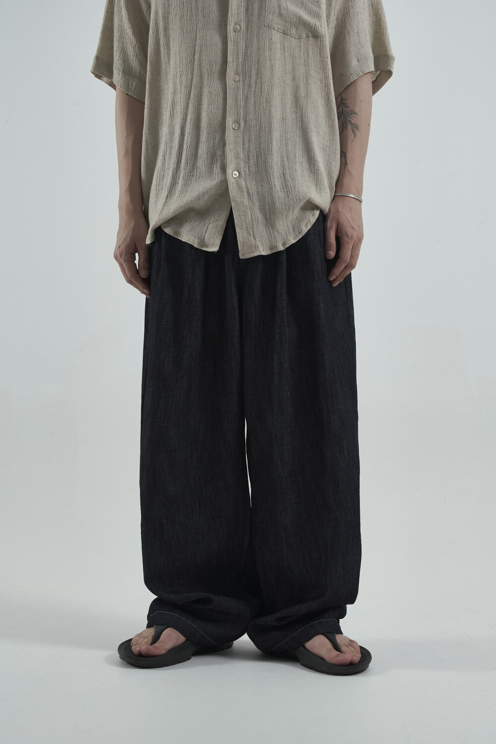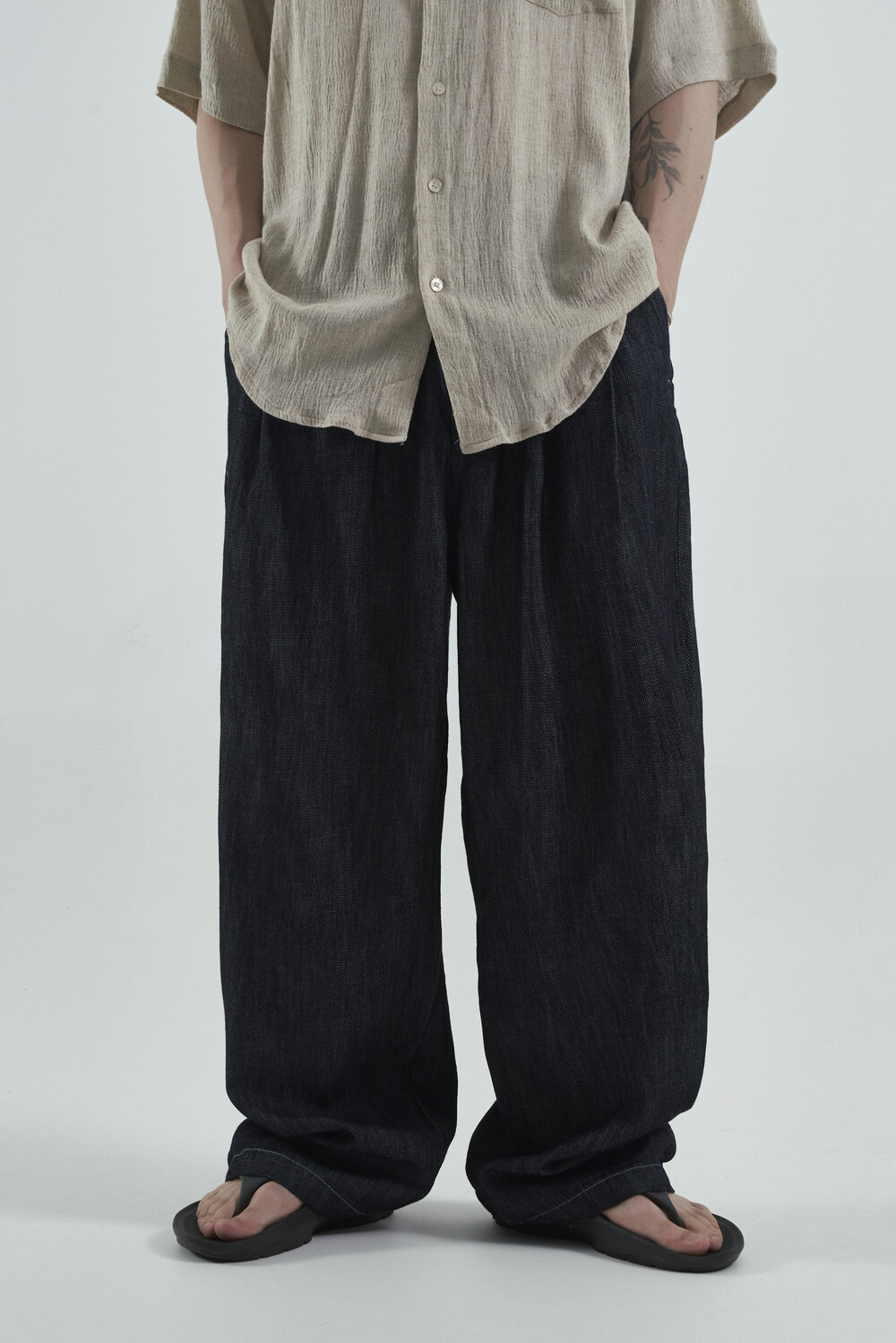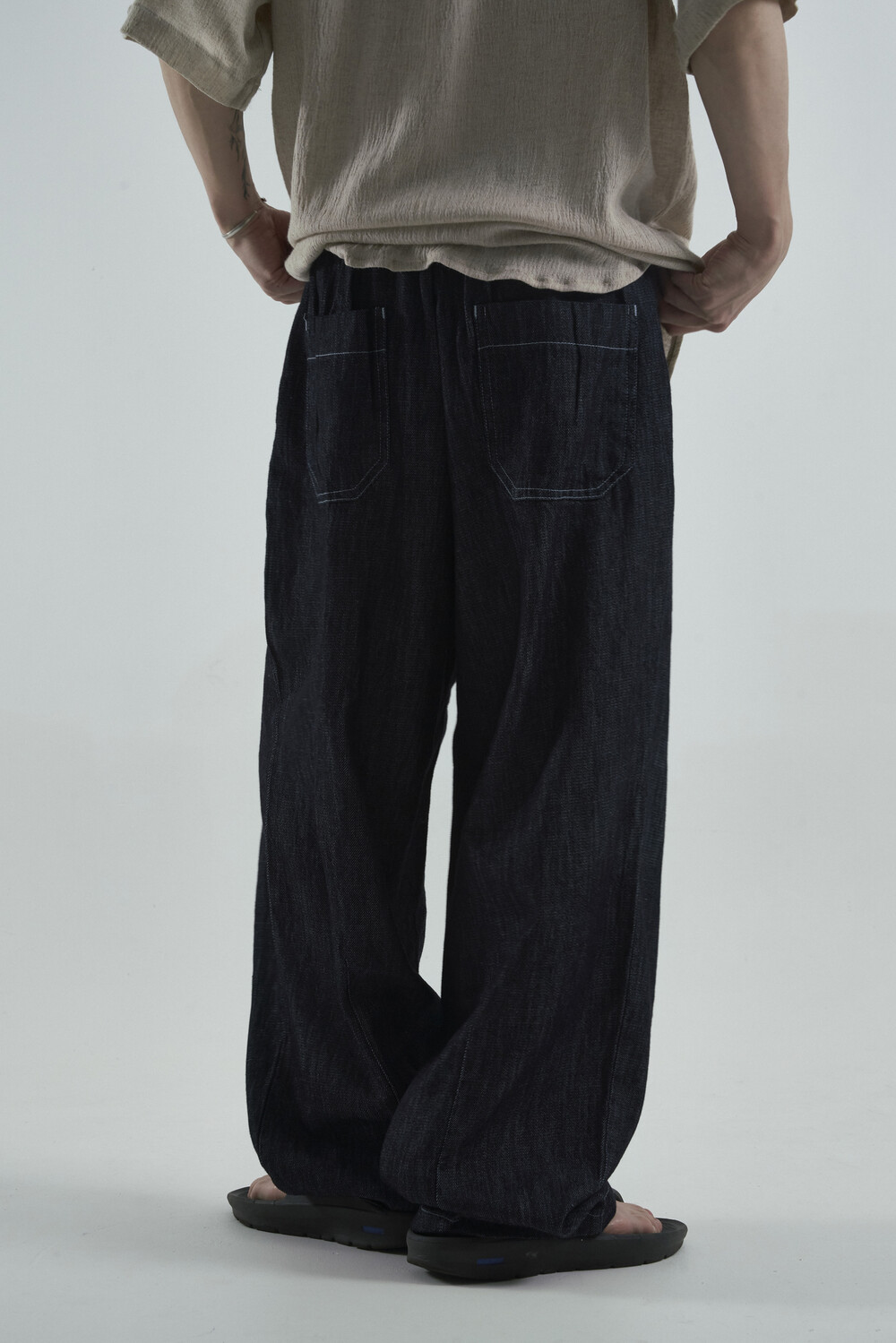 - 진청/생지 컬러감의 시원한 린넨 와이드 팬츠 제품으로 후면부 밴딩을 통해 편안한 착용이 가능합니다.