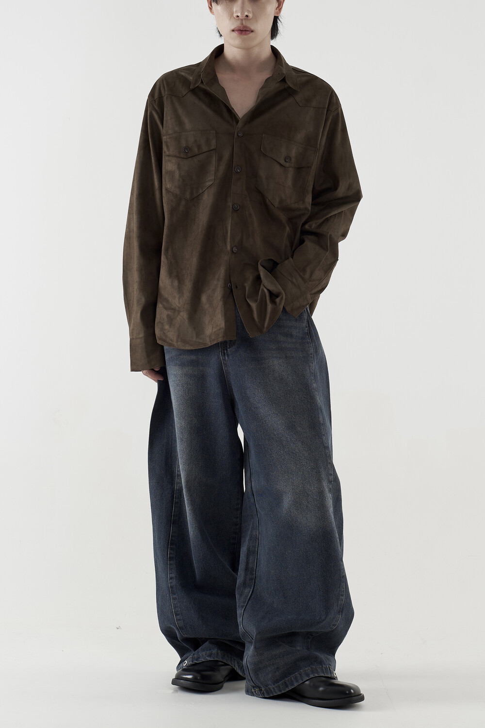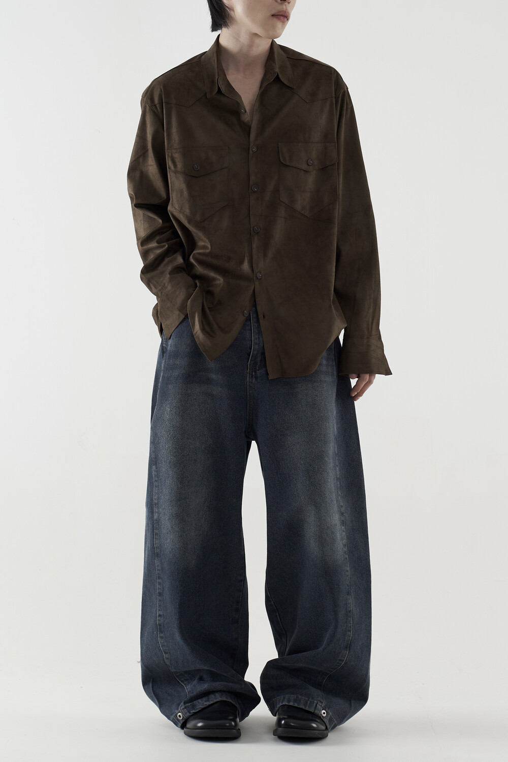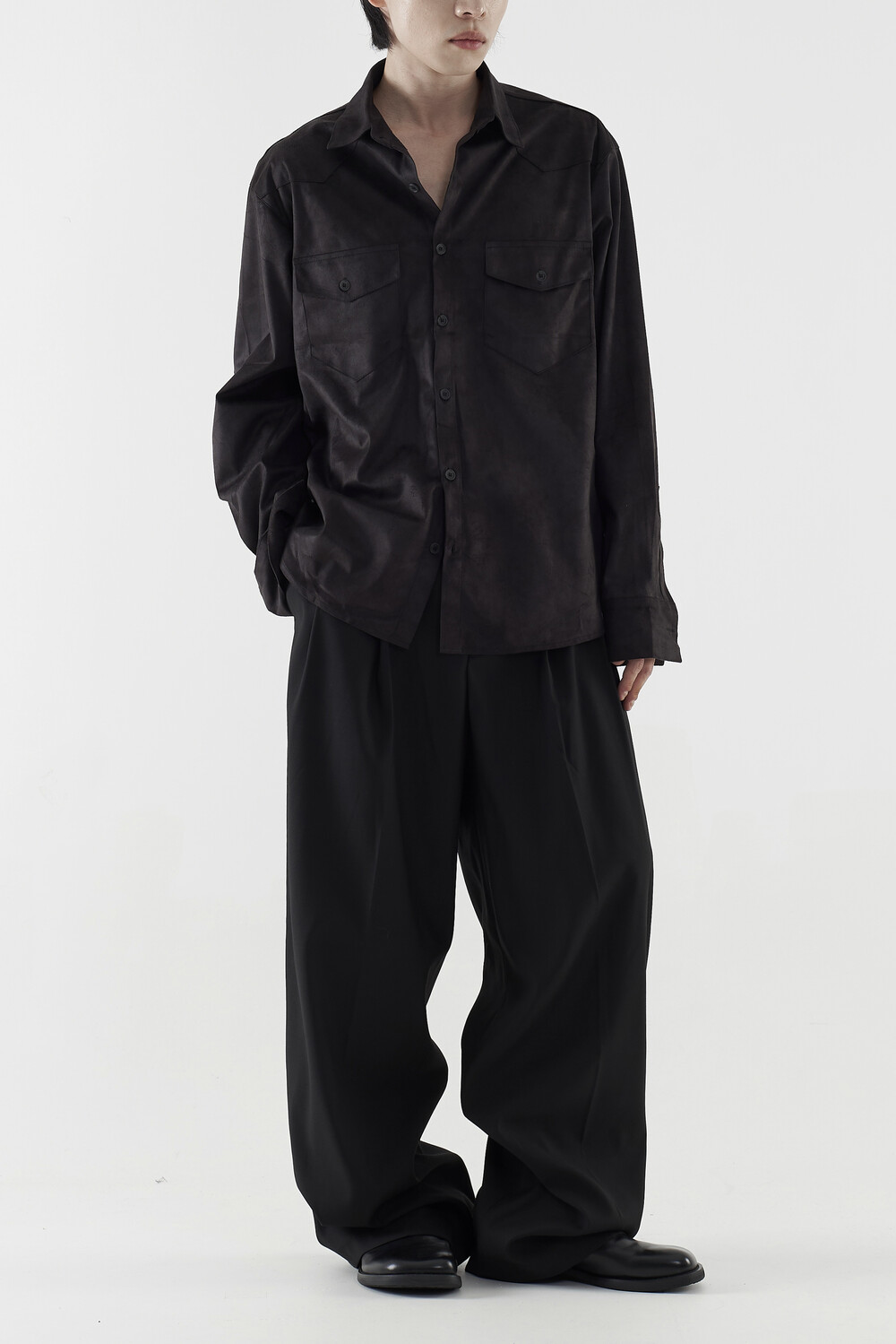 부드러운 질감으로 가을 ~ 겨울까지 뛰어난 활용도를 보여주며 뻣뻣하지 않고 유연한 조직감을 통해 찰랑이는 실루엣을 연출합니다. 슬렉스, 데님 제품들과도 다양한 코디를 하실 수 있으며 여유로운 핏감으로 오버핏을 연출하는 듯하지만 스웨이드 재질 특유의 체형을 안정적으로 감싸주는 착용감이 상당히 매력적인 제품입니다.