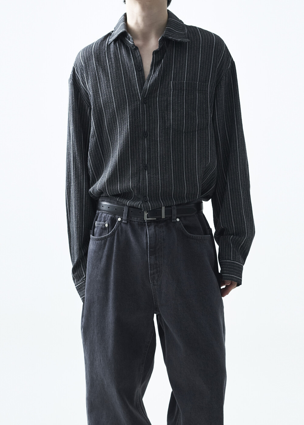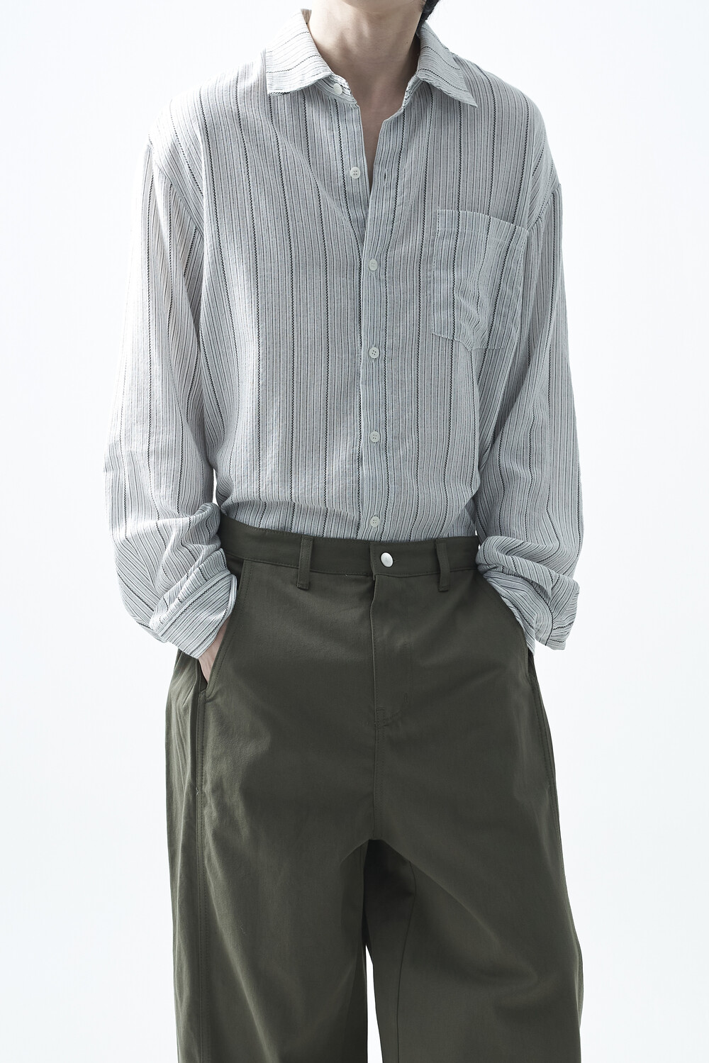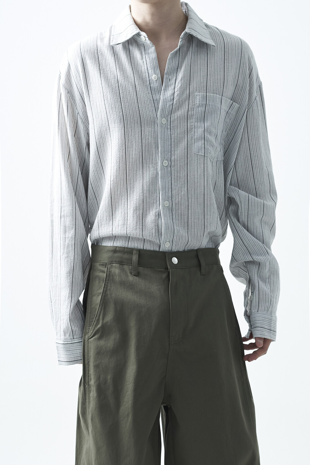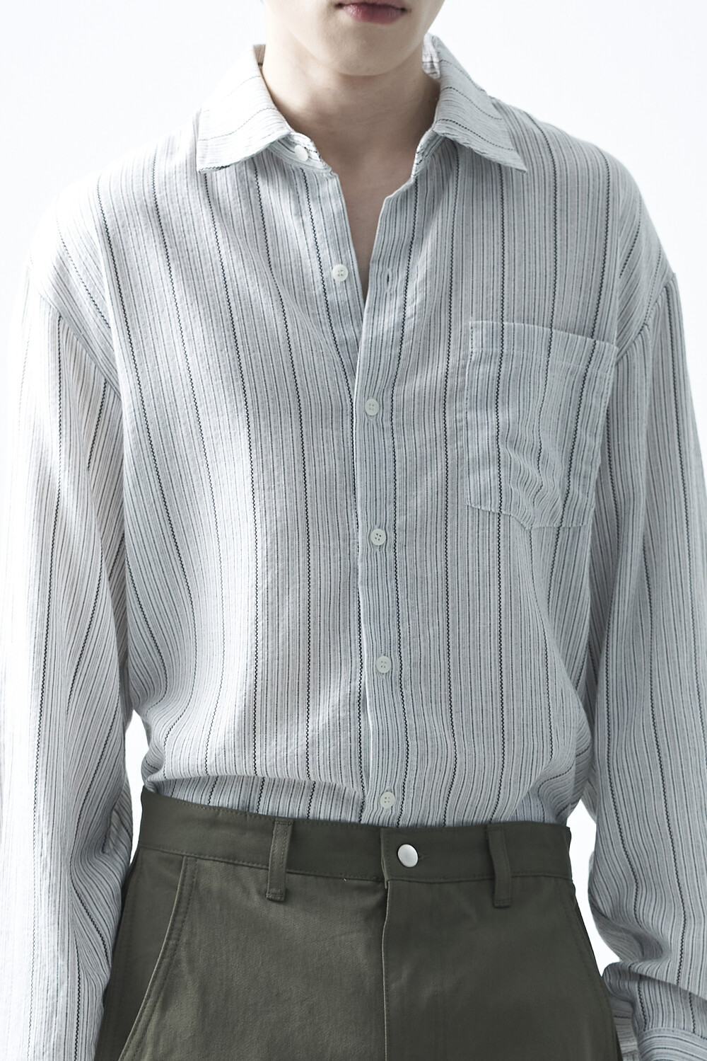 - 캐쥬얼한 스트라이프 패턴과 모던한 컬러감의 믹스매치로 자연스러우면서도 차분한 무드를 연출하는 스트라이프 셔츠 제품입니다. 유니크한 패턴으로 모던한 코디에서 매력적인 포인트를 줄 수 있습니다.