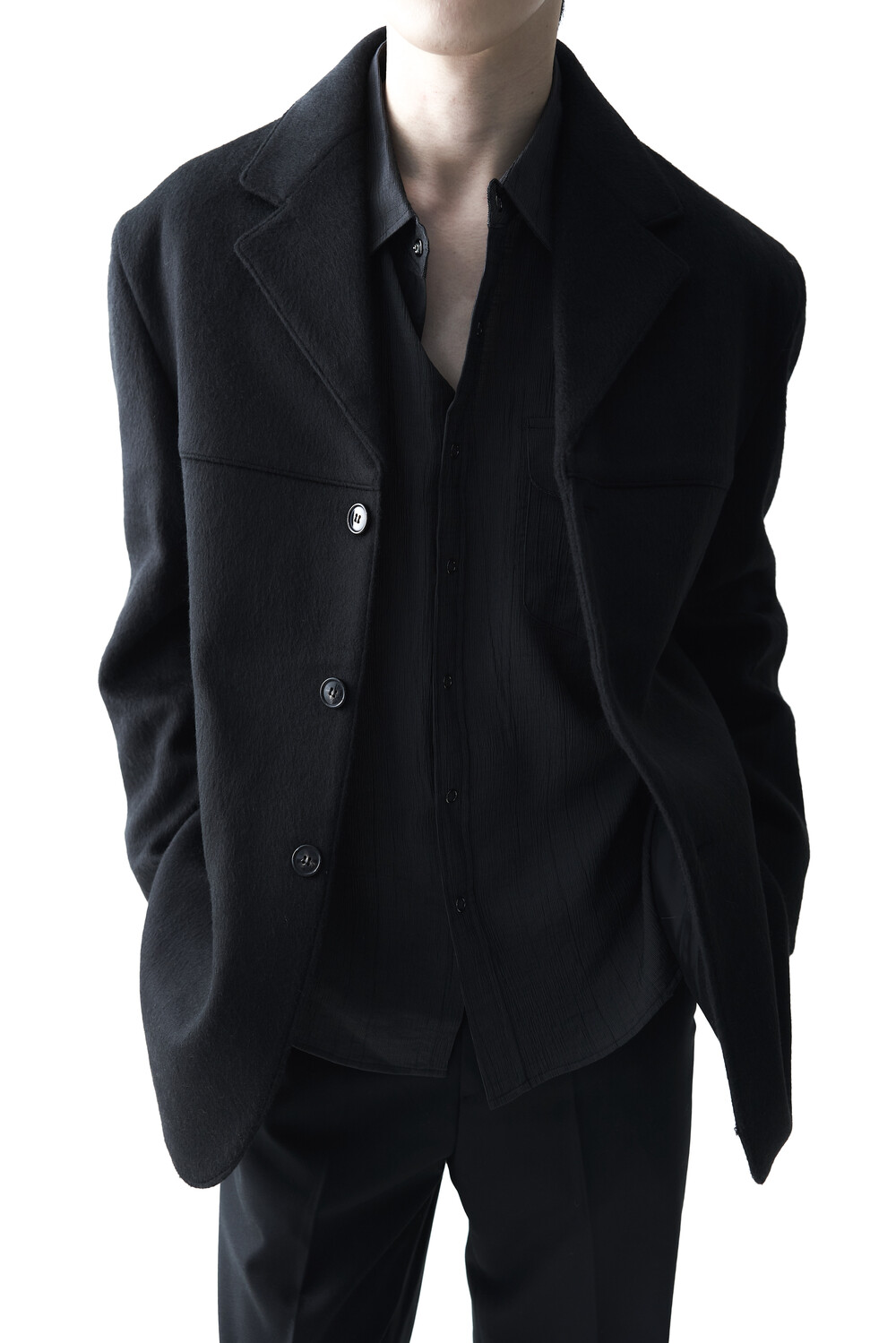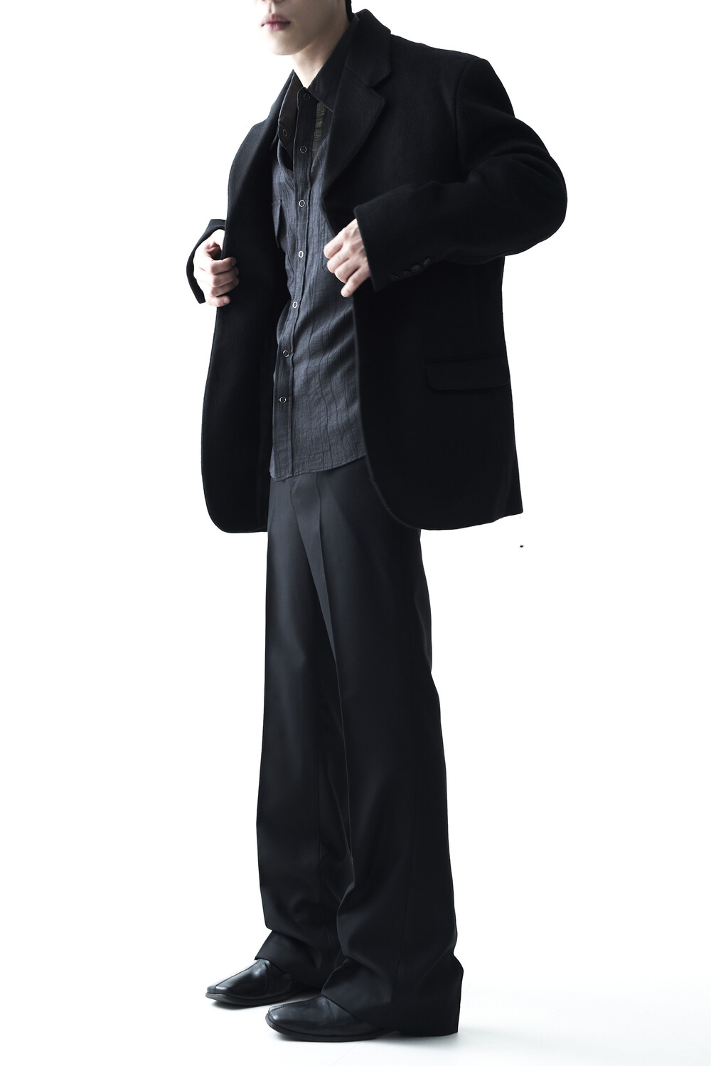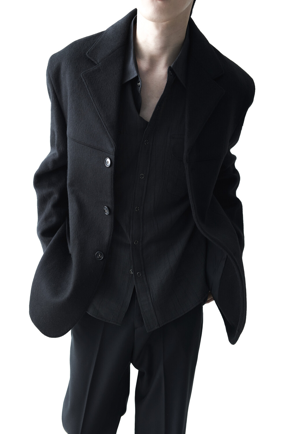 스냅 형태의 버튼 스타일로 싱글 또는 아우터 레이어드 연출이 가능합니다.