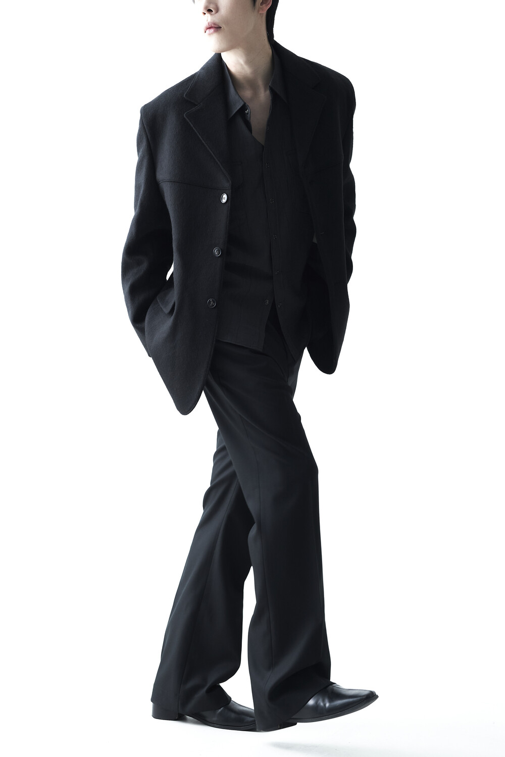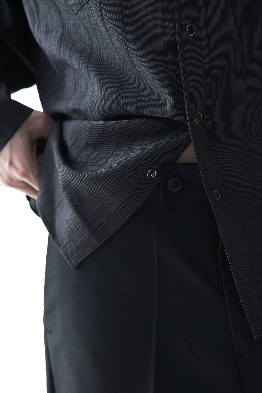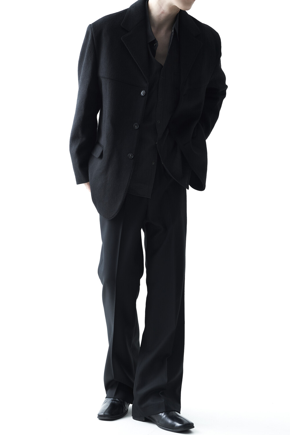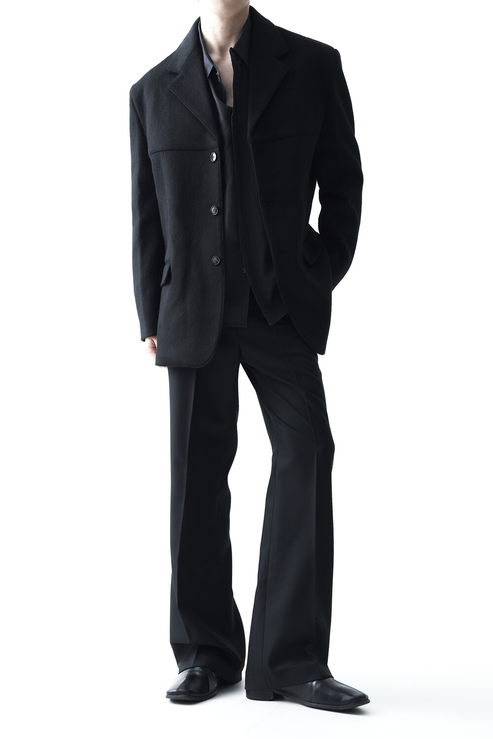 스냅 형태의 버튼 스타일로 싱글 또는 아우터 레이어드 연출이 가능합니다.