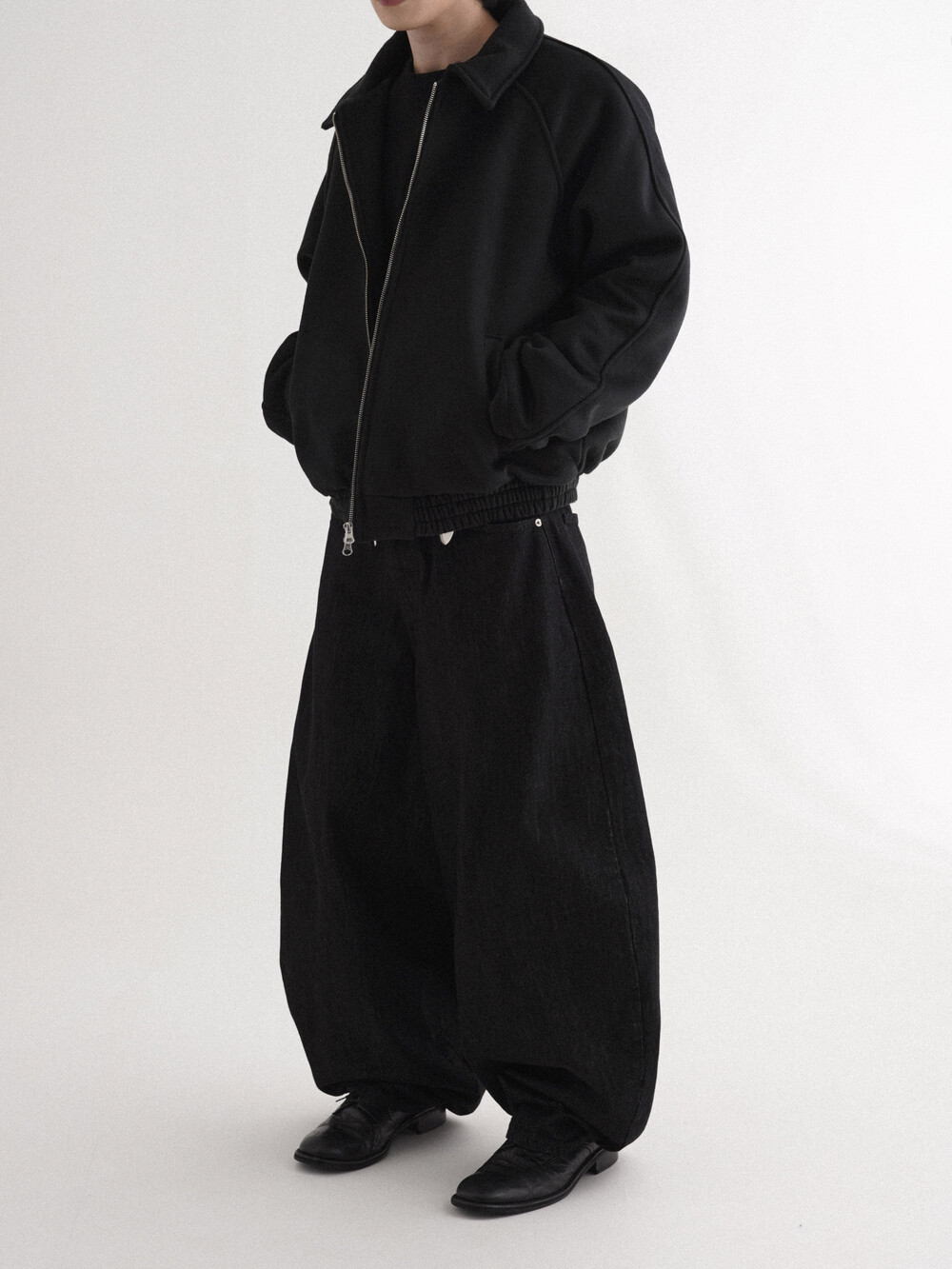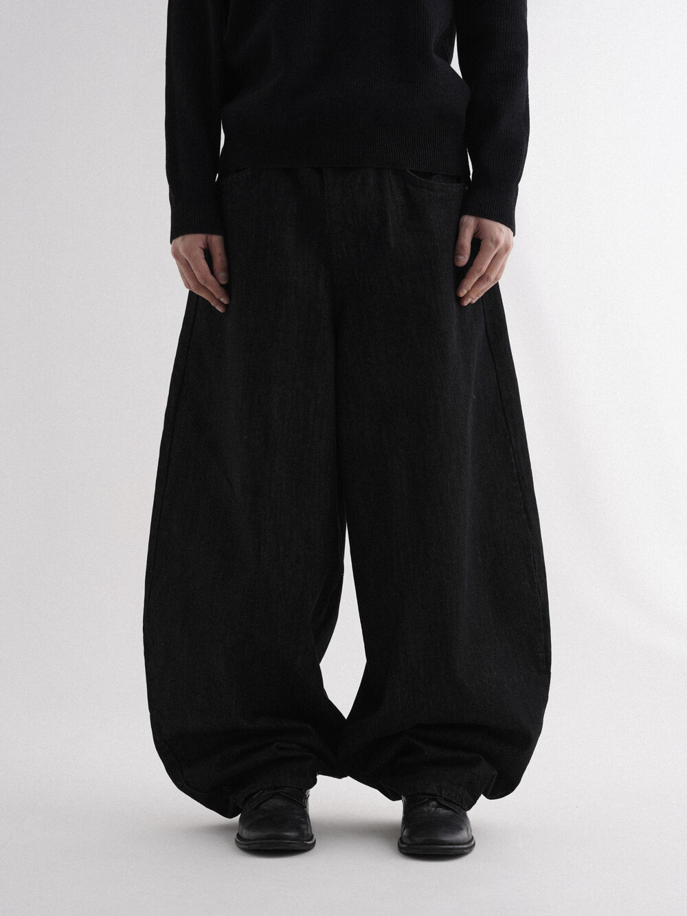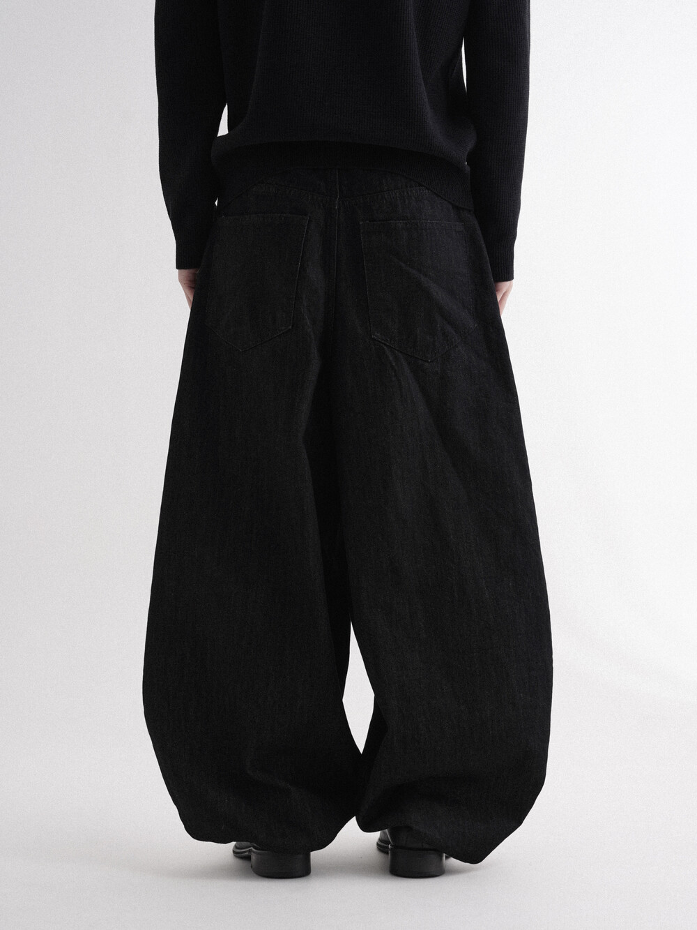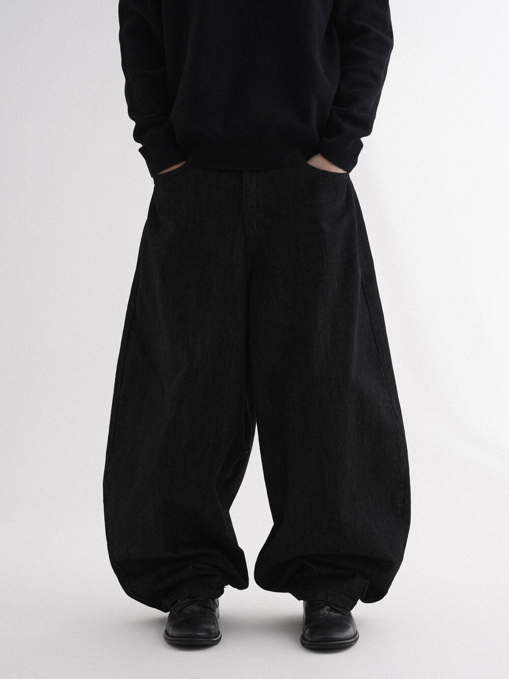 - 벌룬데님 팬츠의 풀오버한 핏으로 전체적인 벌룬 핏으로 시작해 좁은 밑단으로 형성되어 남녀 모두 착용 가능합니다.