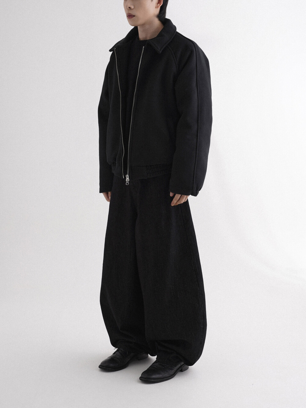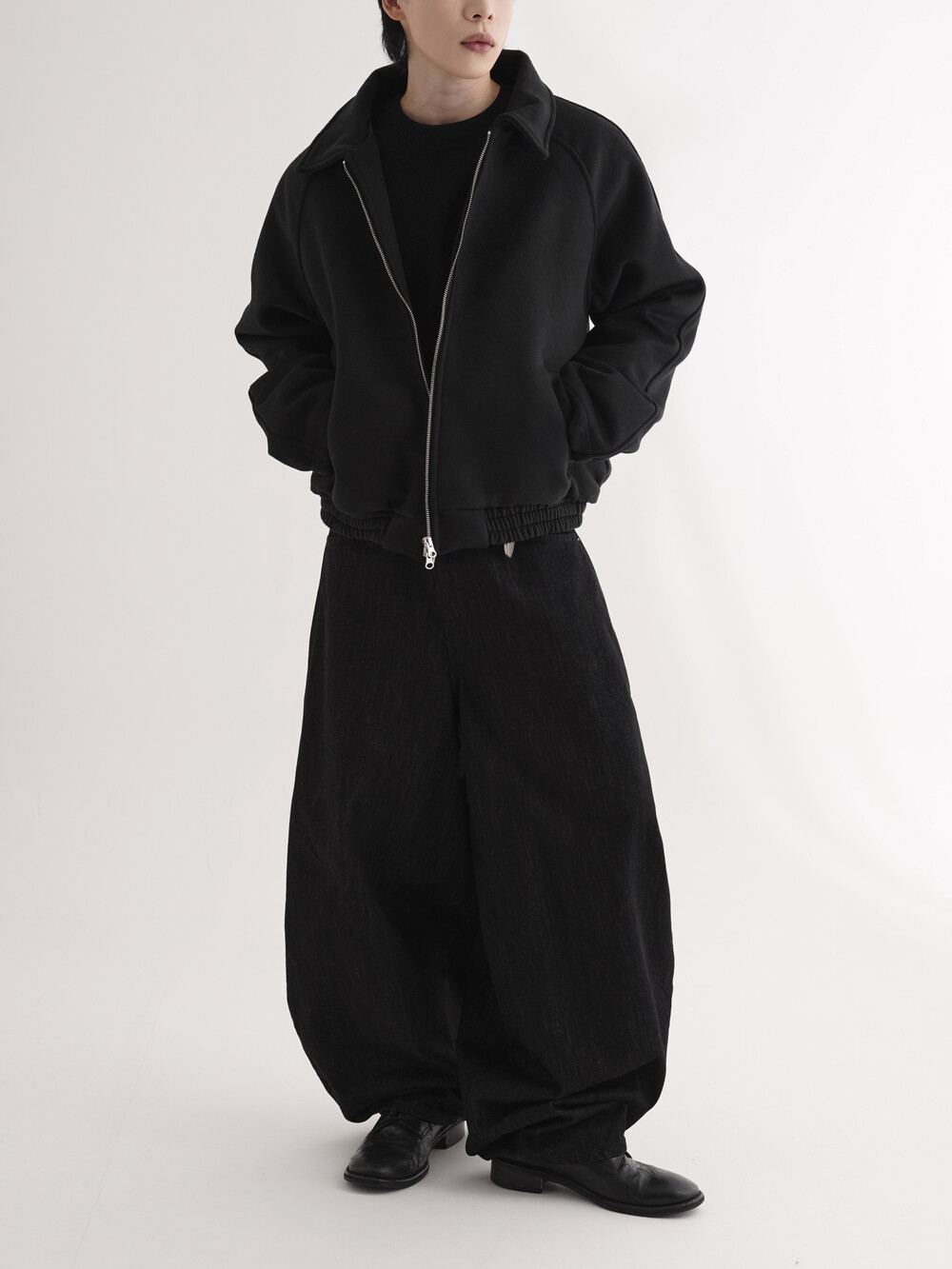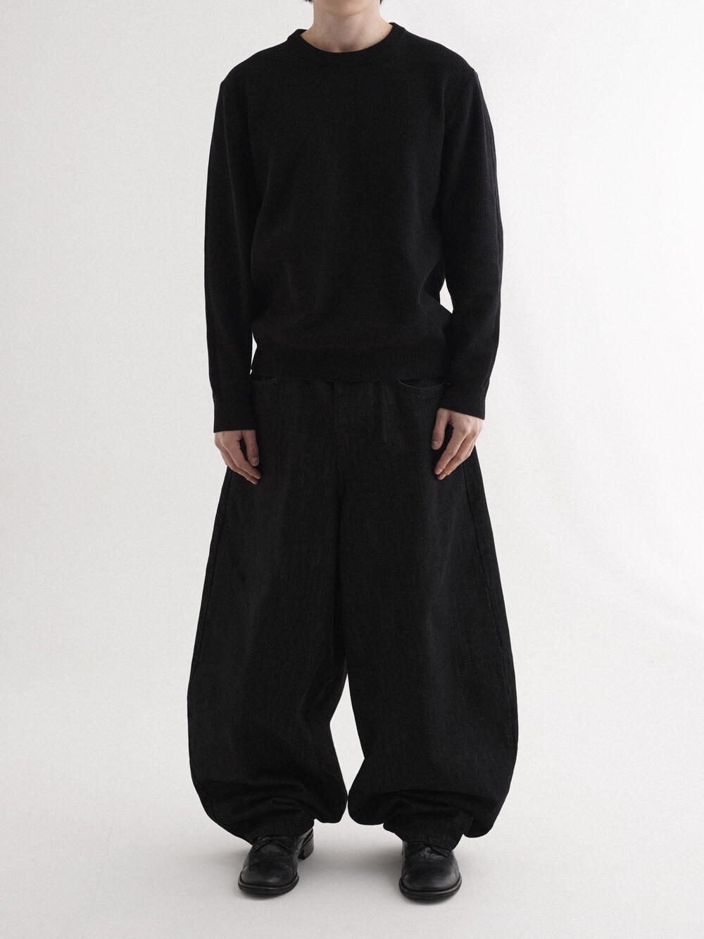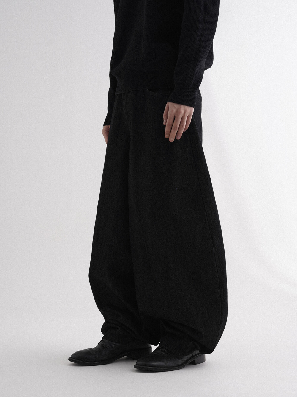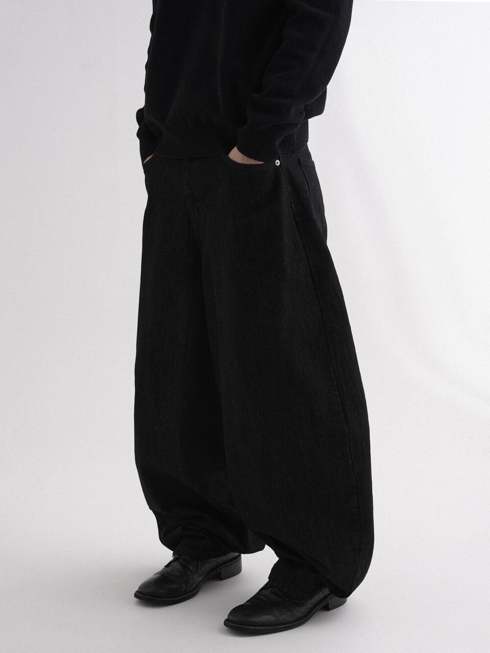- 벌룬데님 팬츠의 풀오버한 핏으로 전체적인 벌룬 핏으로 시작해 좁은 밑단으로 형성되어 남녀 모두 착용 가능합니다.