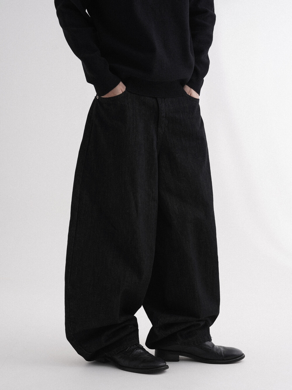 - 딥한 흑청 컬러감의 슬랍 벌룬 데님 팬츠
