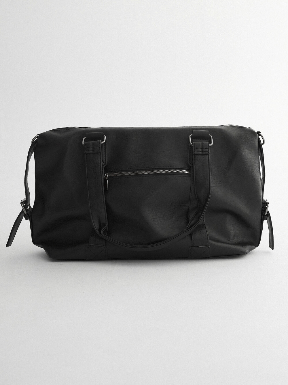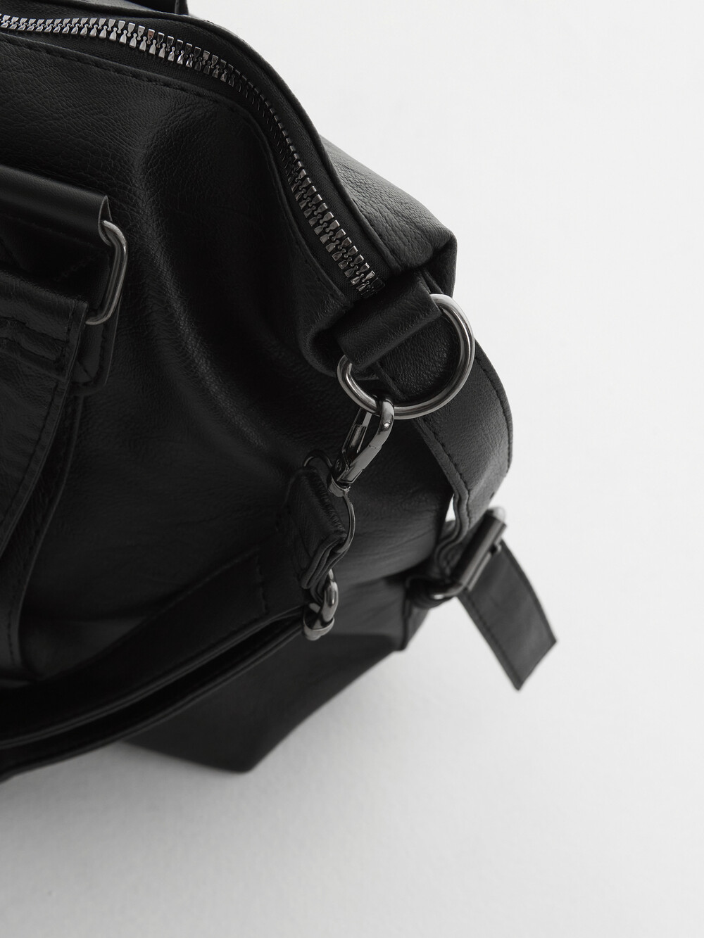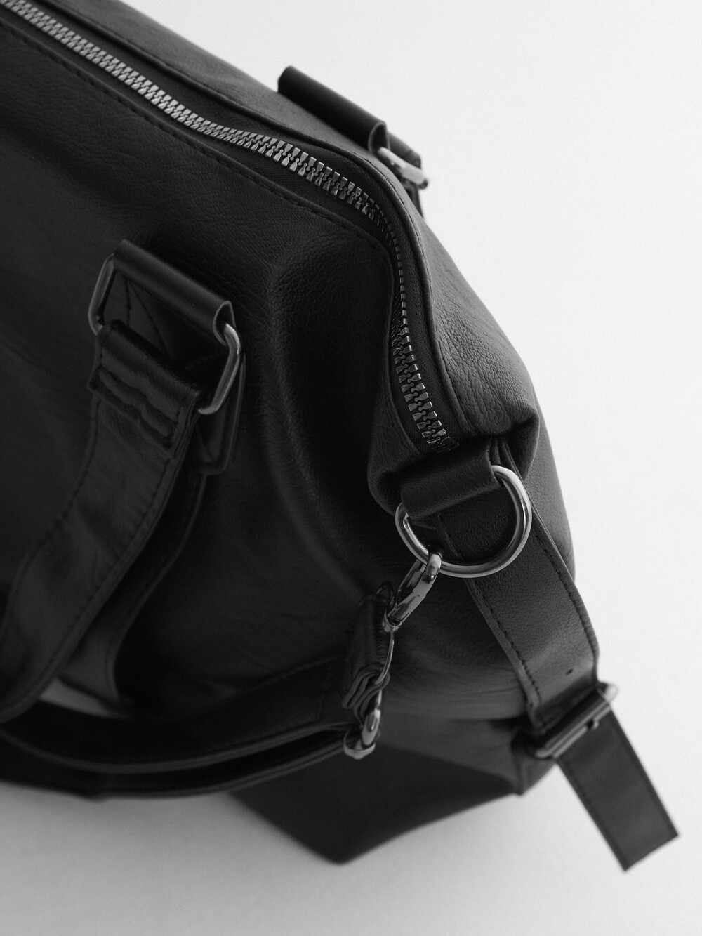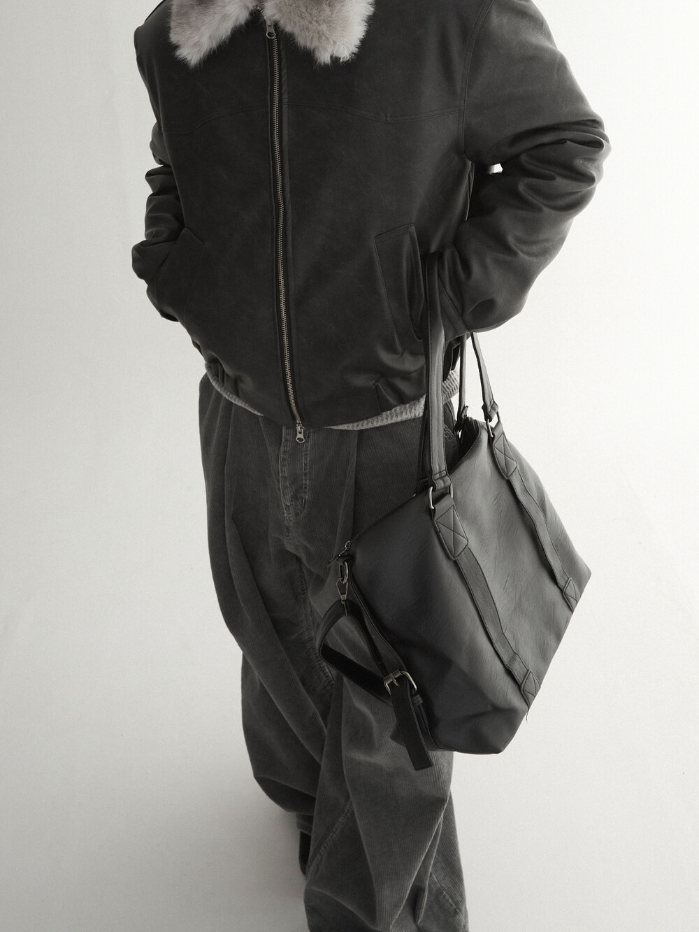 Detail point - 포멀한 숄더백 사이즈감의 캐쥬얼한 투웨이 크로스백 제품입니다. 평소 가볍게 손에 잡고 다닐 수 있는 행잉 방식과 어깨에 걸칠 수 있는 숄더 크로스 방식이 모두 가능 할 수 있도록 손잡이 부분 외 사이드 측의 숄더 스트링이 추가되어 있는 가방 제품입니다. 부드러운 합성 비건레더 소재를 통해 방오성이 뛰어나며 측면과 내부 포켓을 통해 다양한 수납이 수월합니다. 또한 블랙 원컬러로 제작되어 어떠한 코디에도 폭넓은 코디가 가능합니다. (* 소재 특성상 습도가 높은 곳에서의 보관을 피하시는 것을 추천드리며, 날카로운 기물들로 인한 외부 스크래치에 주의 부탁드립니다.)