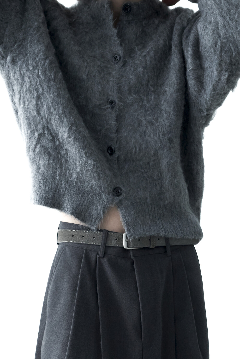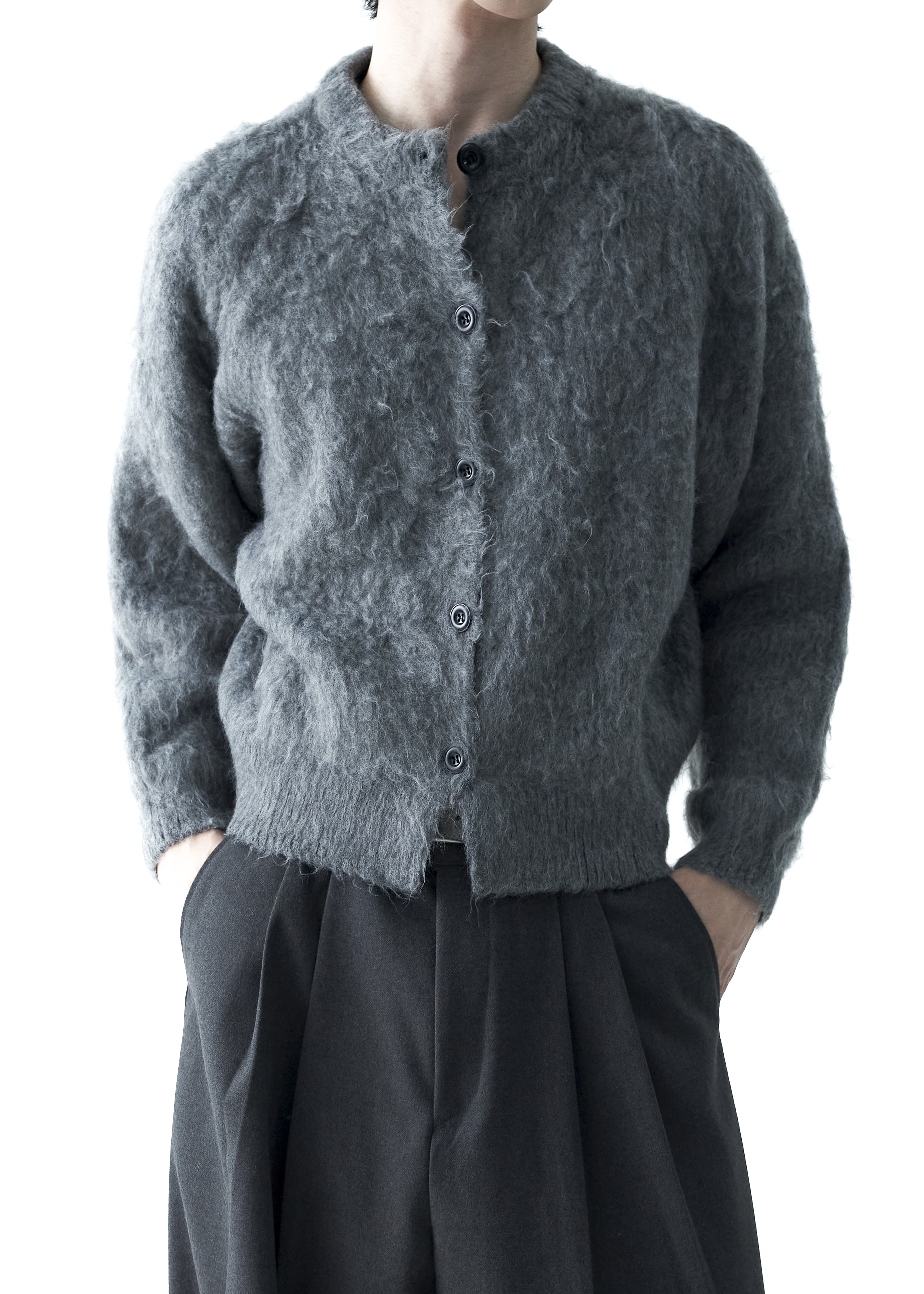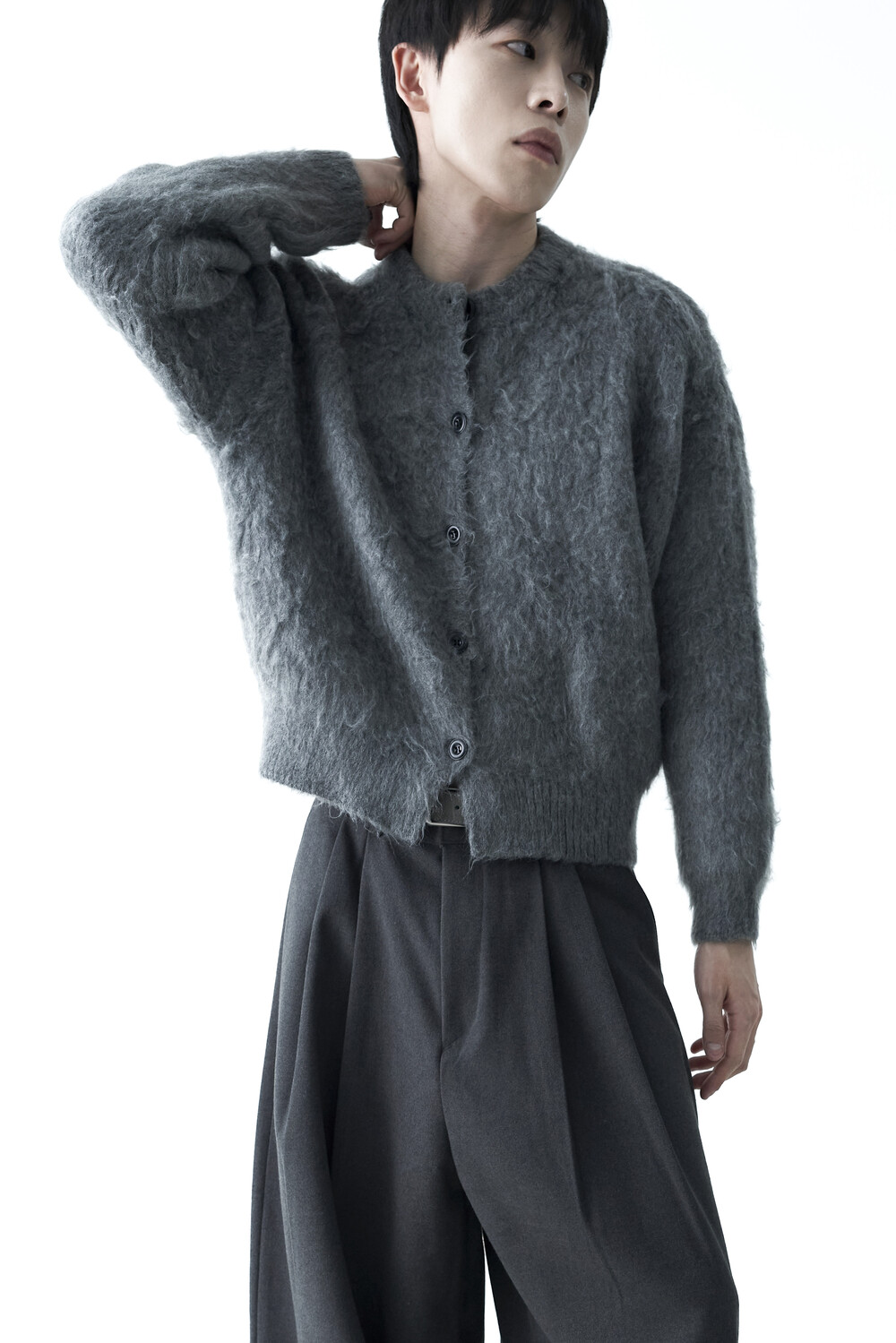 - 볼드한 라운드넥과 숏 크롭한 기장감으로 구성된 앙고라 니트 가디건 제품입니다. 포근한 브러쉬 앙고라 텍스쳐로 따뜻한 보온성을 나타내며, 총장 58cm의 짧은 기장감으로 남녀 모두 착용하실 수 있는 유니섹스 아이템입니다. 밑단 밴딩을 통해 더욱 안정적인 크롭 실루엣을 잘 표현하고 있으며, 루즈한 숄더 라인으로 체형 보완에 뛰어난 효과를 나타냅니다.