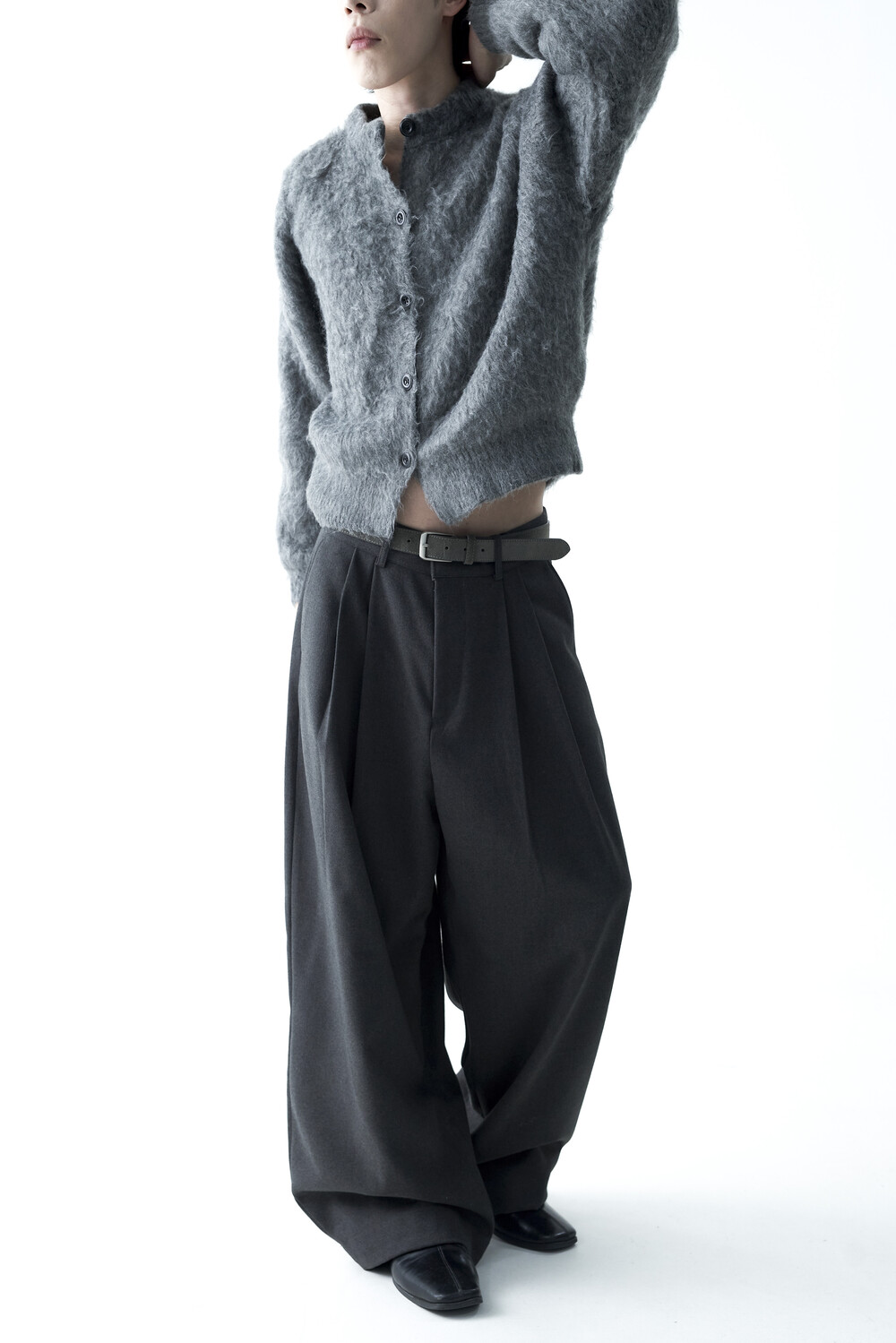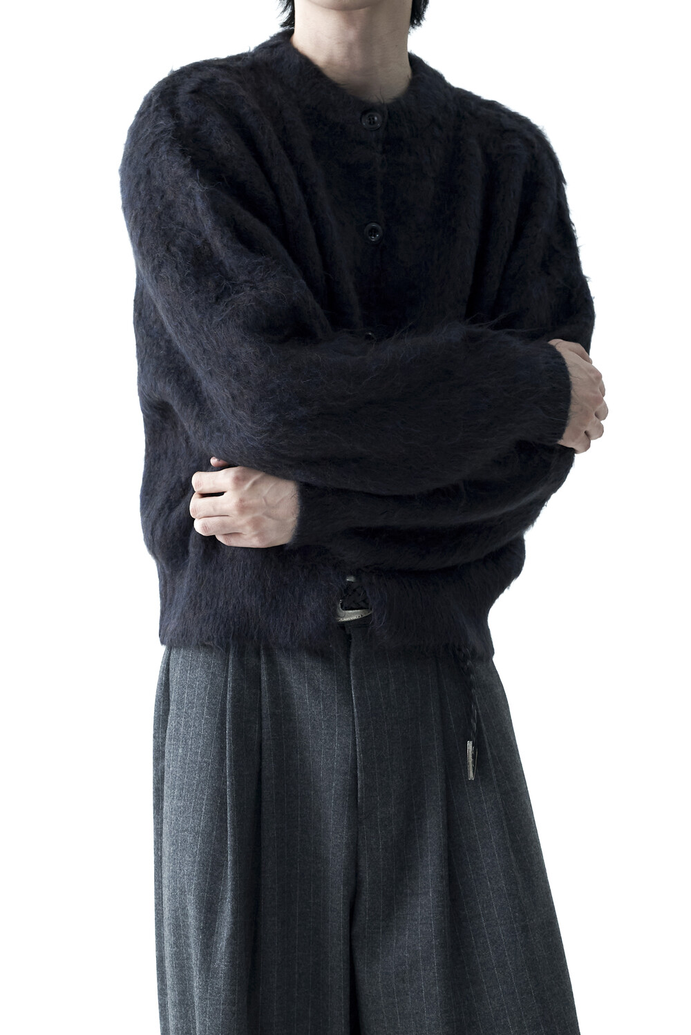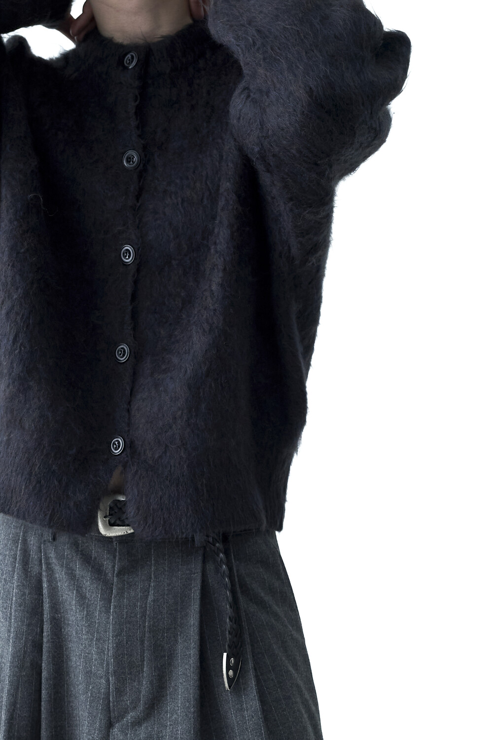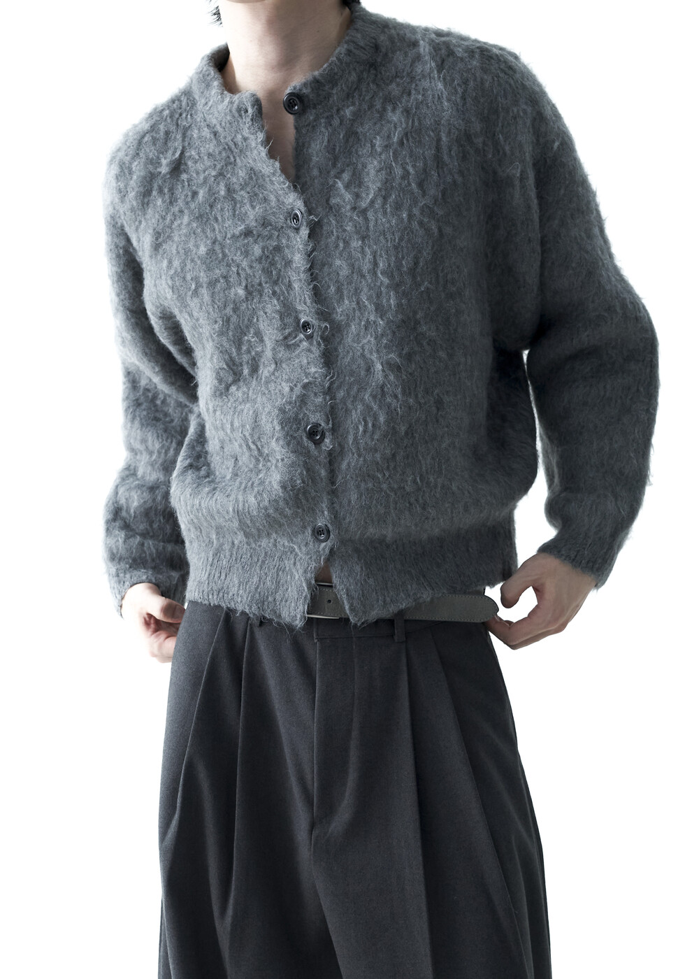 - 볼드한 라운드넥과 숏 크롭한 기장감으로 구성된 앙고라 니트 가디건 제품입니다. 포근한 브러쉬 앙고라 텍스쳐로 따뜻한 보온성을 나타내며, 총장 58cm의 짧은 기장감으로 남녀 모두 착용하실 수 있는 유니섹스 아이템입니다. 밑단 밴딩을 통해 더욱 안정적인 크롭 실루엣을 잘 표현하고 있으며, 루즈한 숄더 라인으로 체형 보완에 뛰어난 효과를 나타냅니다.