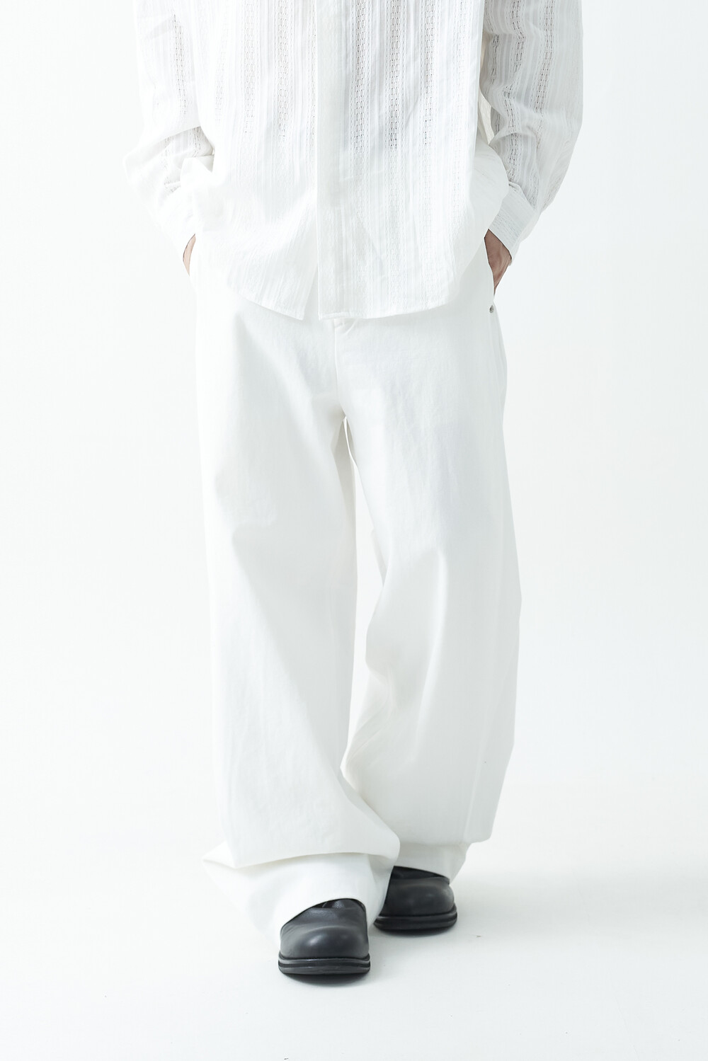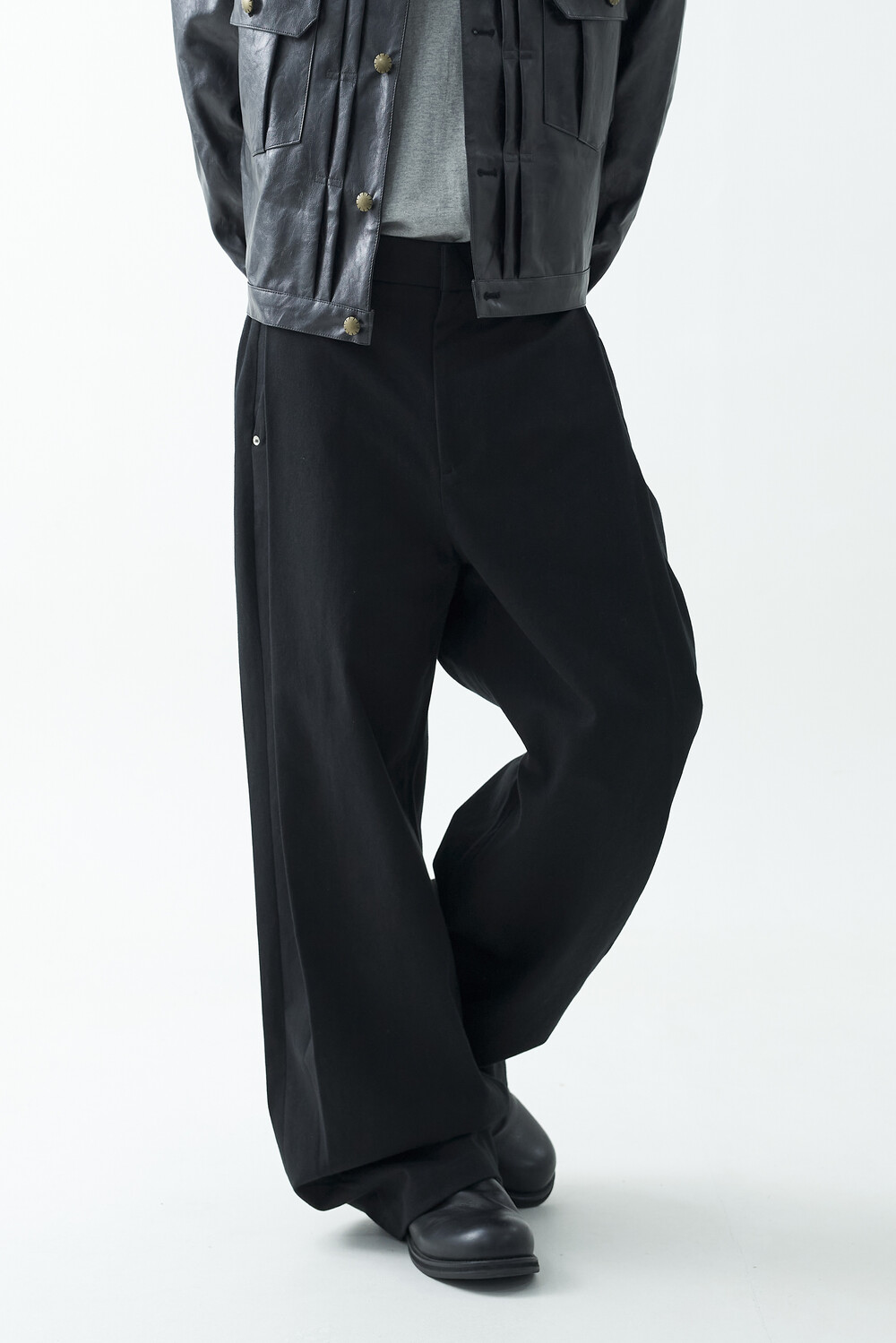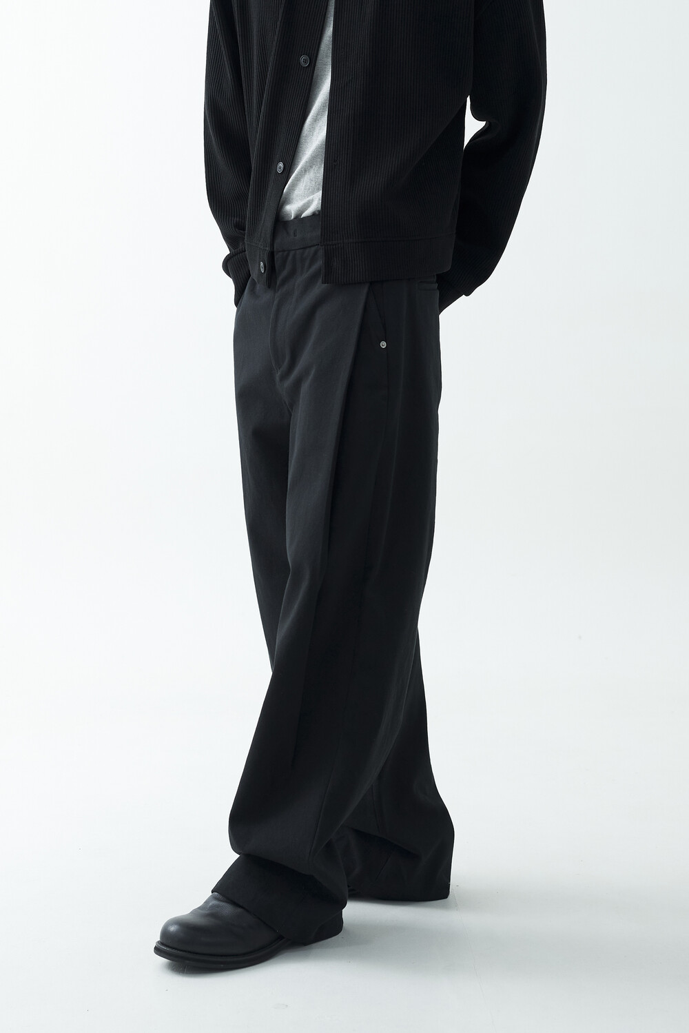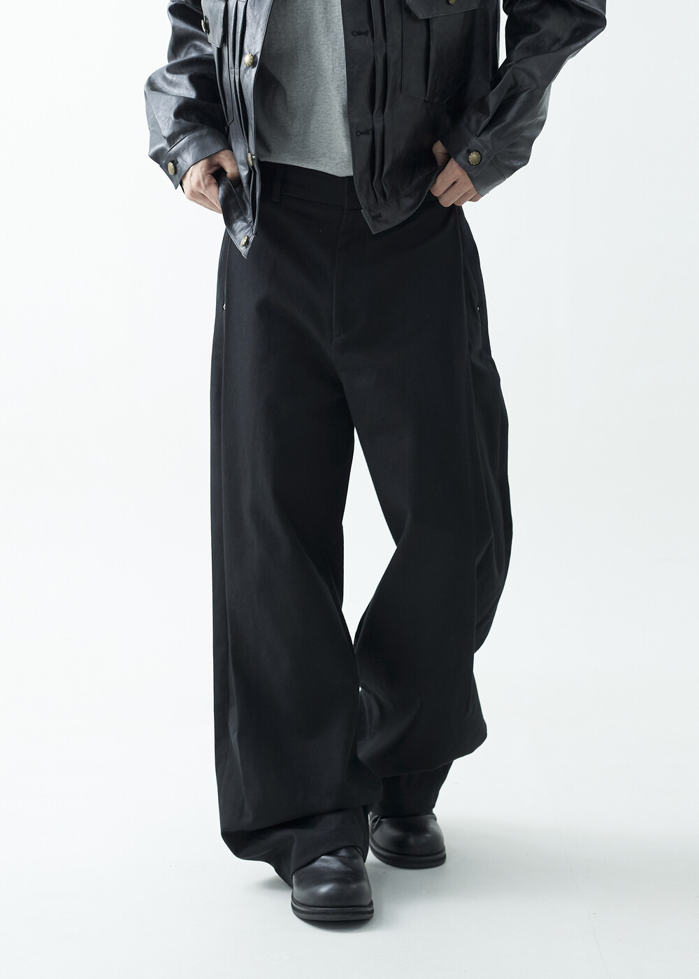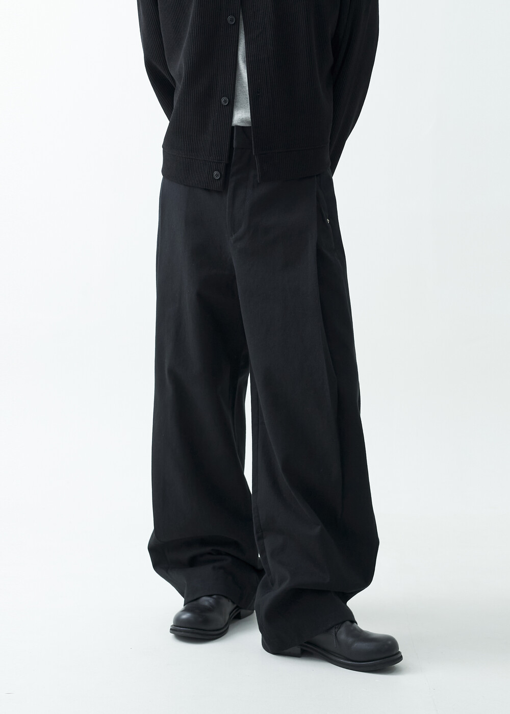 깊은 핀턱을 디테일 포인트로 구성된 코튼 와이드 팬츠 제품입니다. 활동시에도 핏이 흐트러지지 않도록 무게감 있는 코튼 소재감이 적용되었으며, 와이드한 실루엣으로 떨어지면서도 밑단이 흩날리지 않게끔 제작된 팬츠제품입니다.