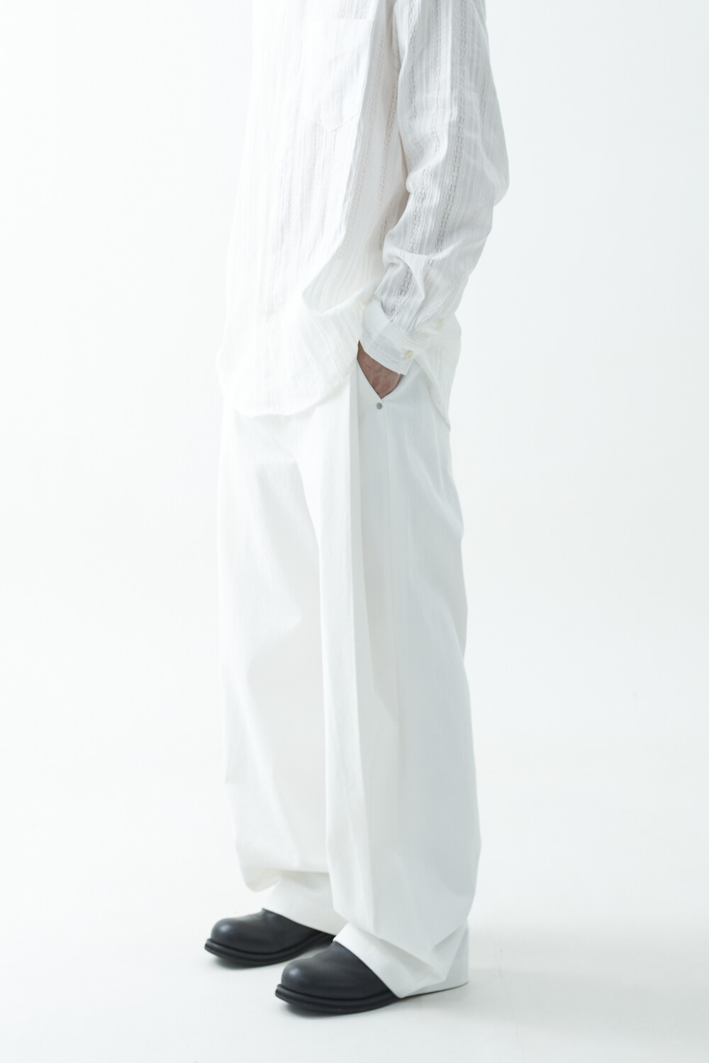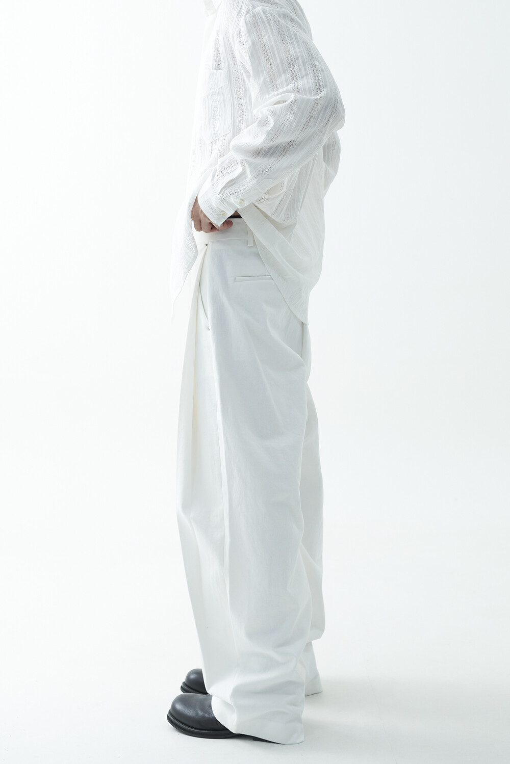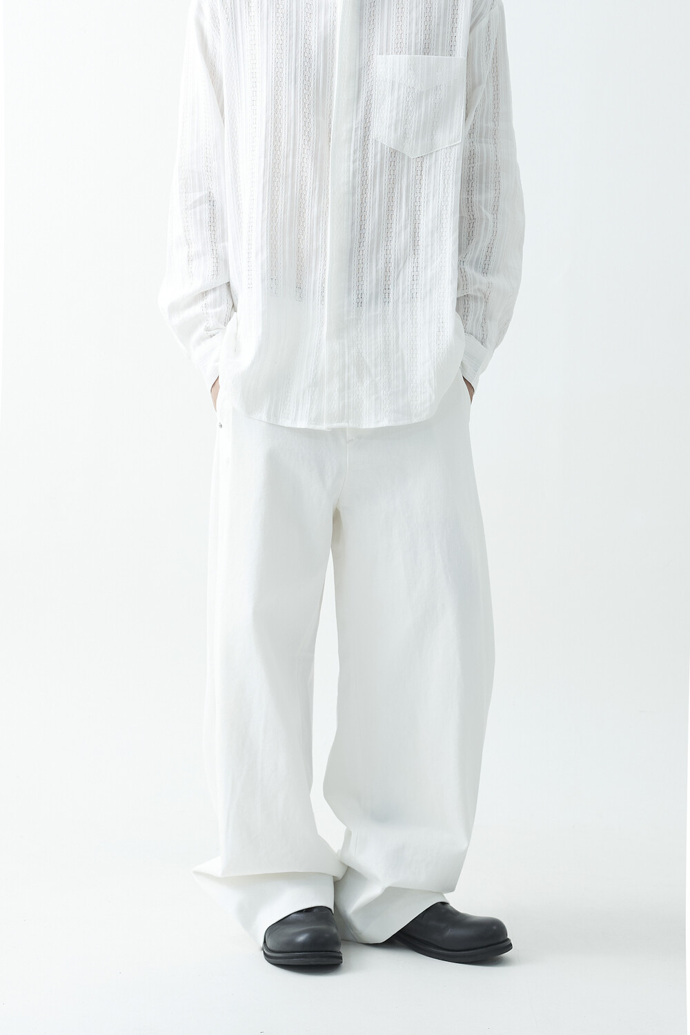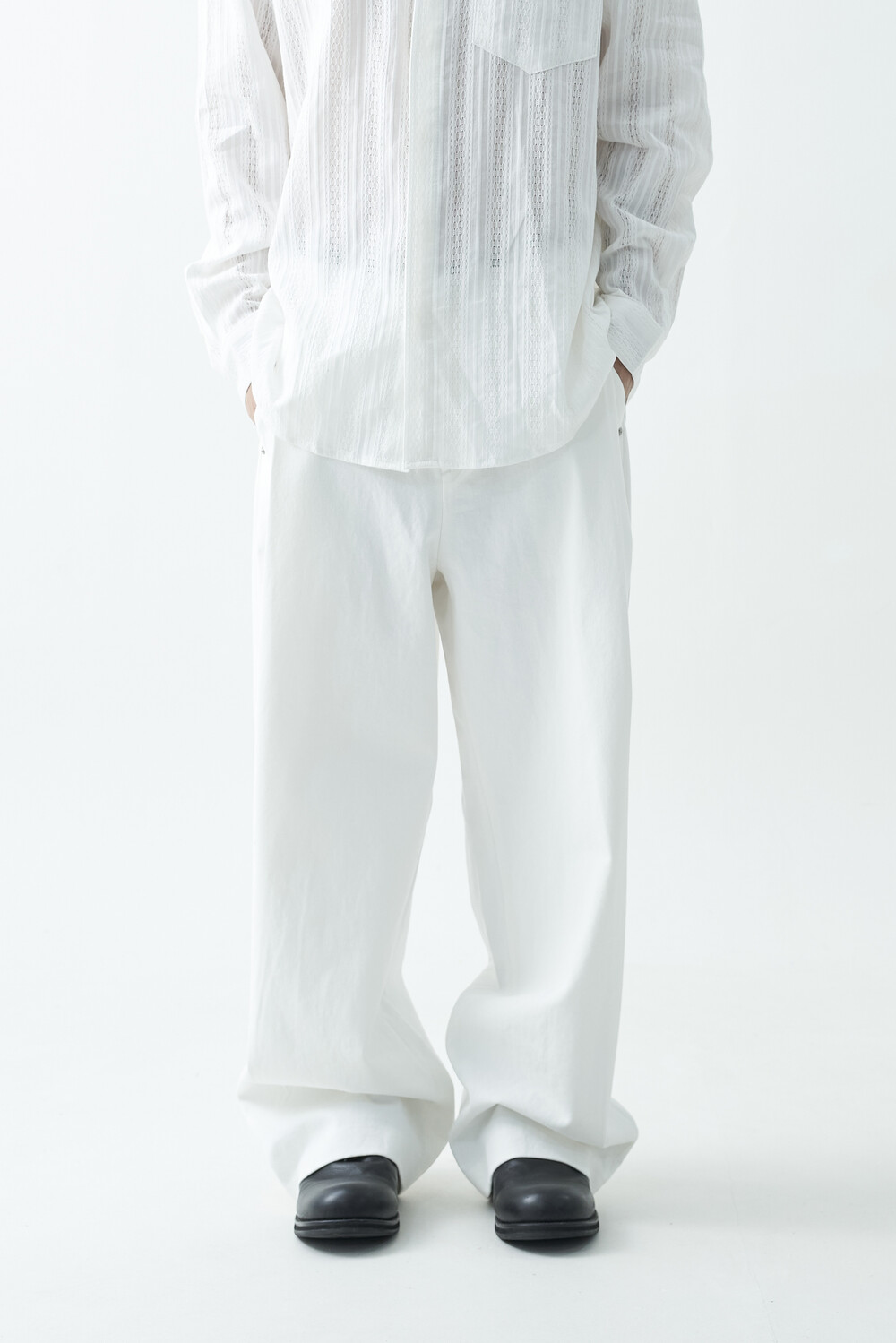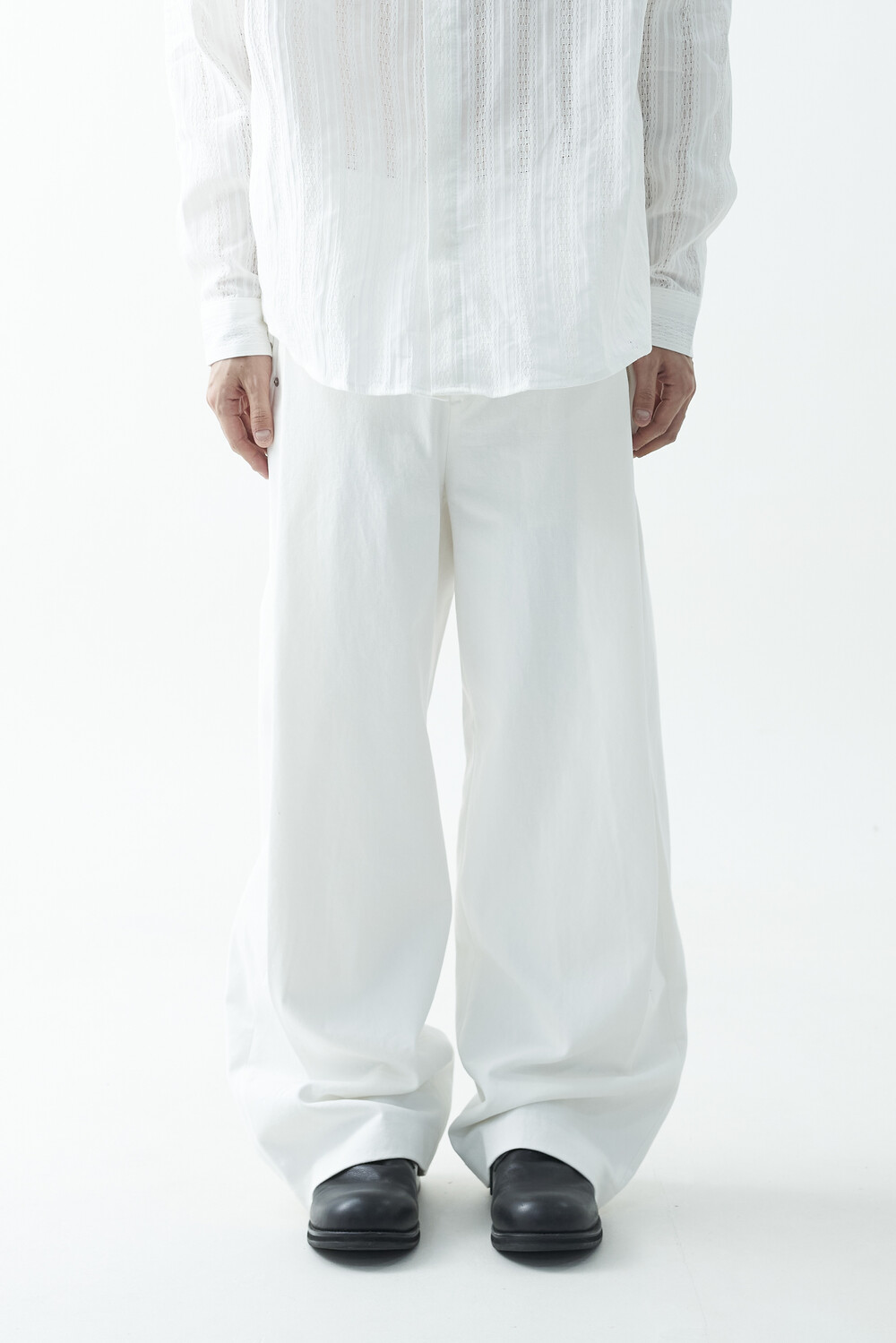 깊은 핀턱을 디테일 포인트로 구성된 코튼 와이드 팬츠 제품입니다. 활동시에도 핏이 흐트러지지 않도록 무게감 있는 코튼 소재감이 적용되었으며, 와이드한 실루엣으로 떨어지면서도 밑단이 흩날리지 않게끔 제작된 팬츠제품입니다.