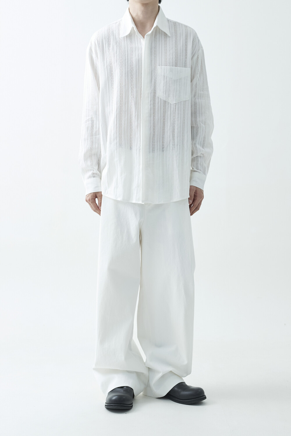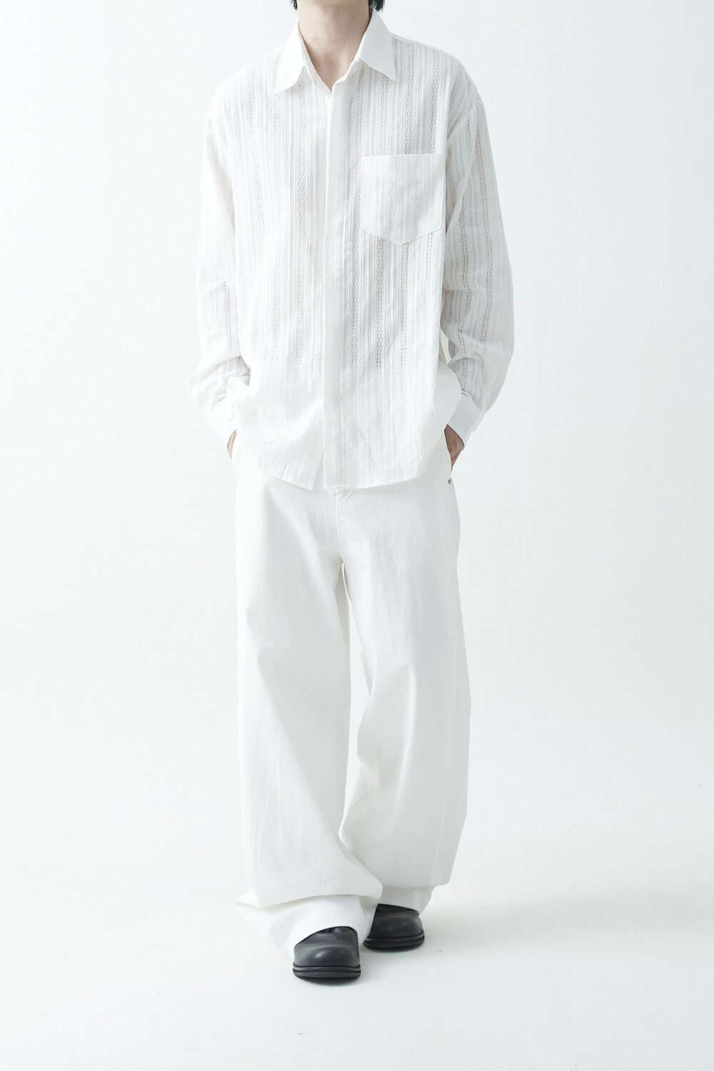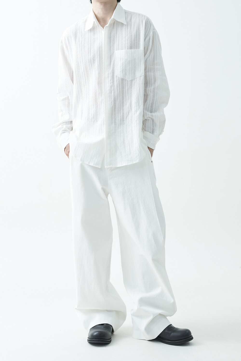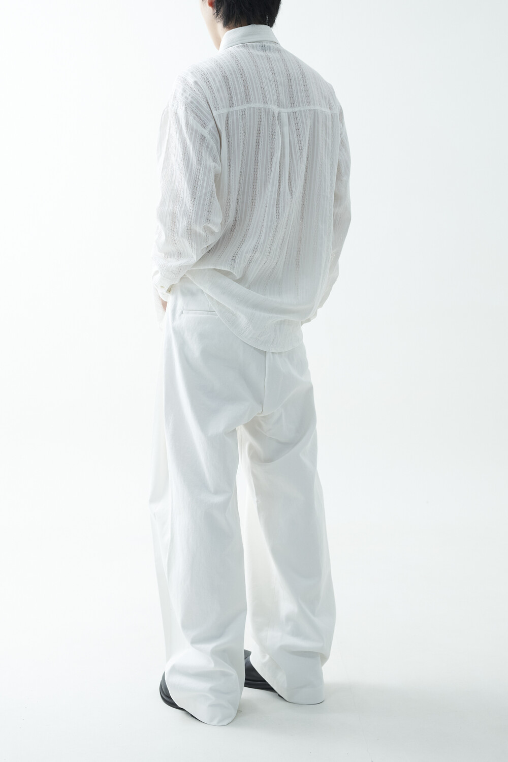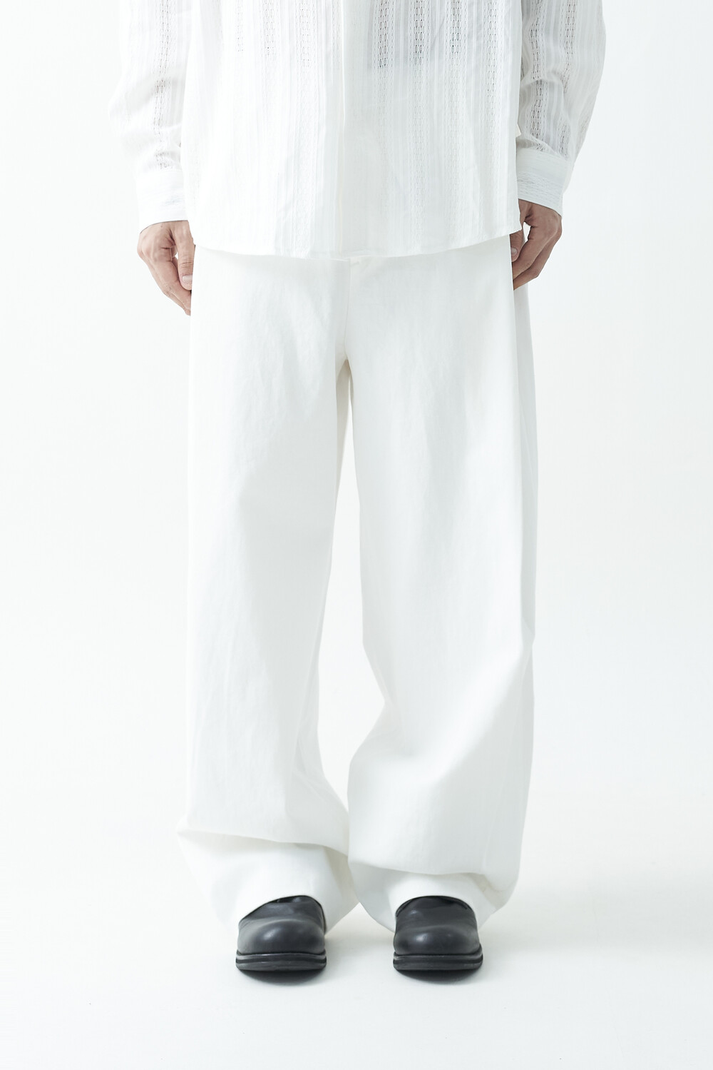깊은 핀턱을 디테일 포인트로 구성된 코튼 와이드 팬츠 제품입니다. 활동시에도 핏이 흐트러지지 않도록 무게감 있는 코튼 소재감이 적용되었으며, 와이드한 실루엣으로 떨어지면서도 밑단이 흩날리지 않게끔 제작된 팬츠제품입니다.