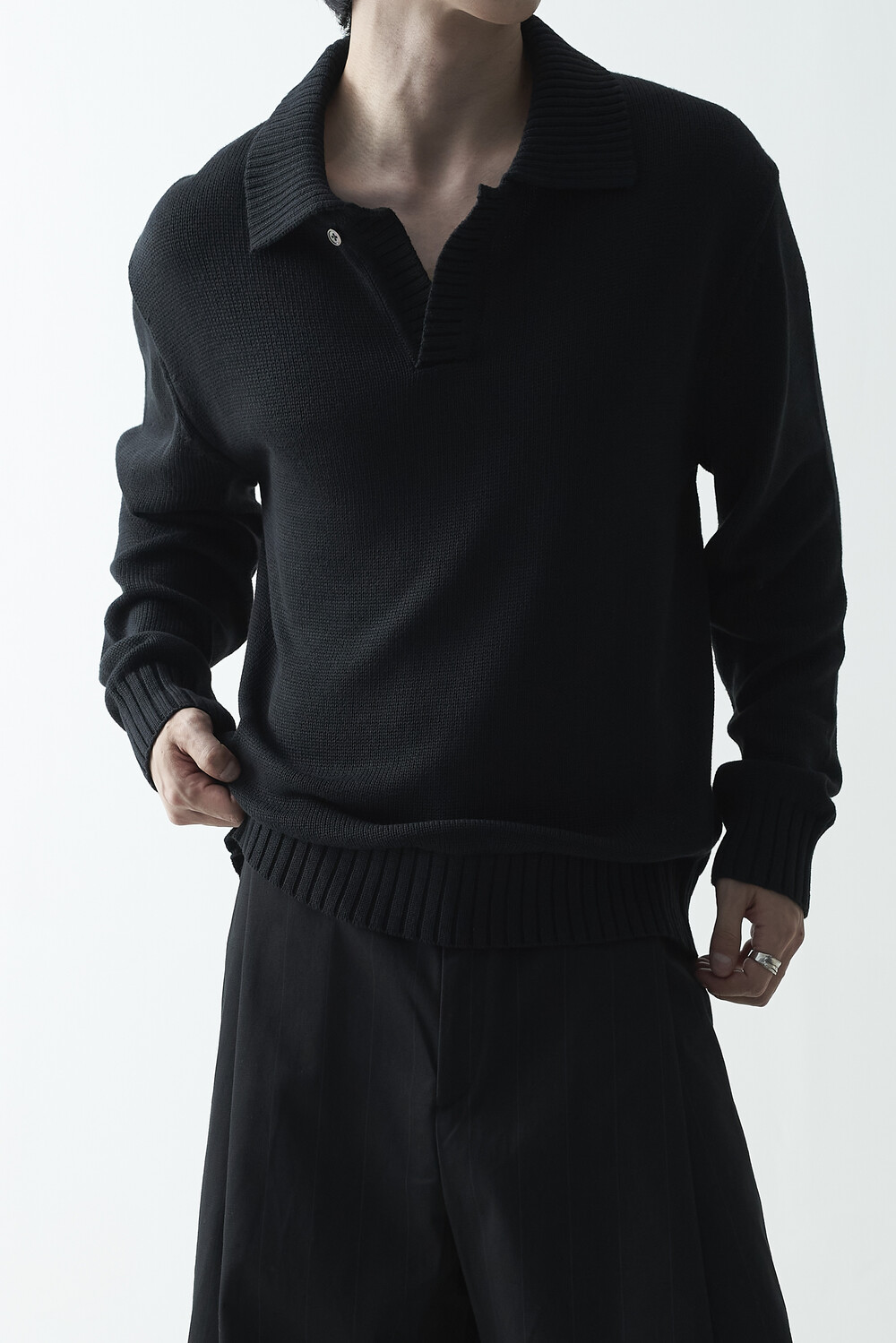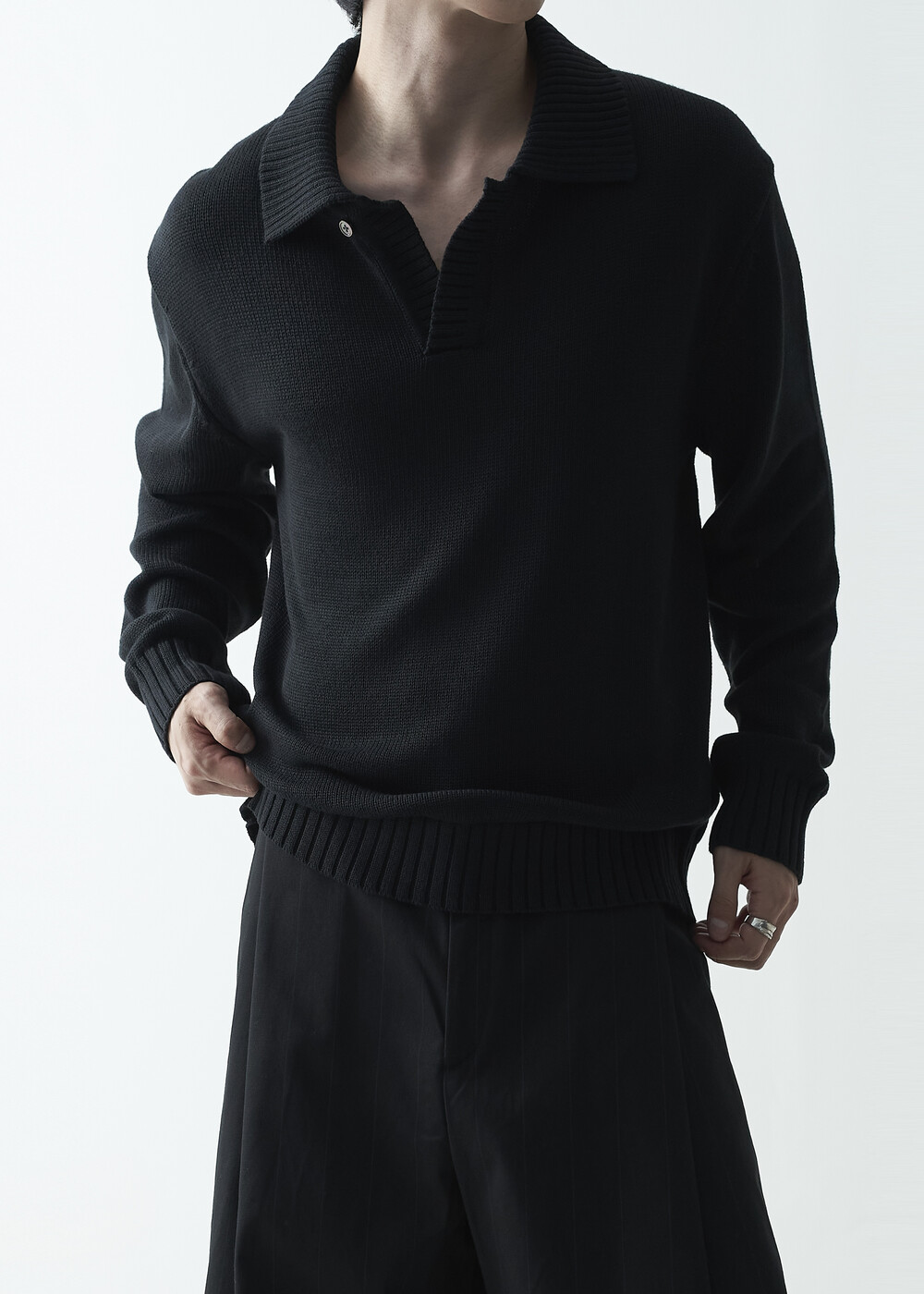전체적으로 볼드한 디테일과 원버튼 스타일의 카라넥 니트 제품입니다. 탄탄한 착용감으로 겨울까지 착용하실 수 있으며, 미니멀한 코디에 효과적입니다.