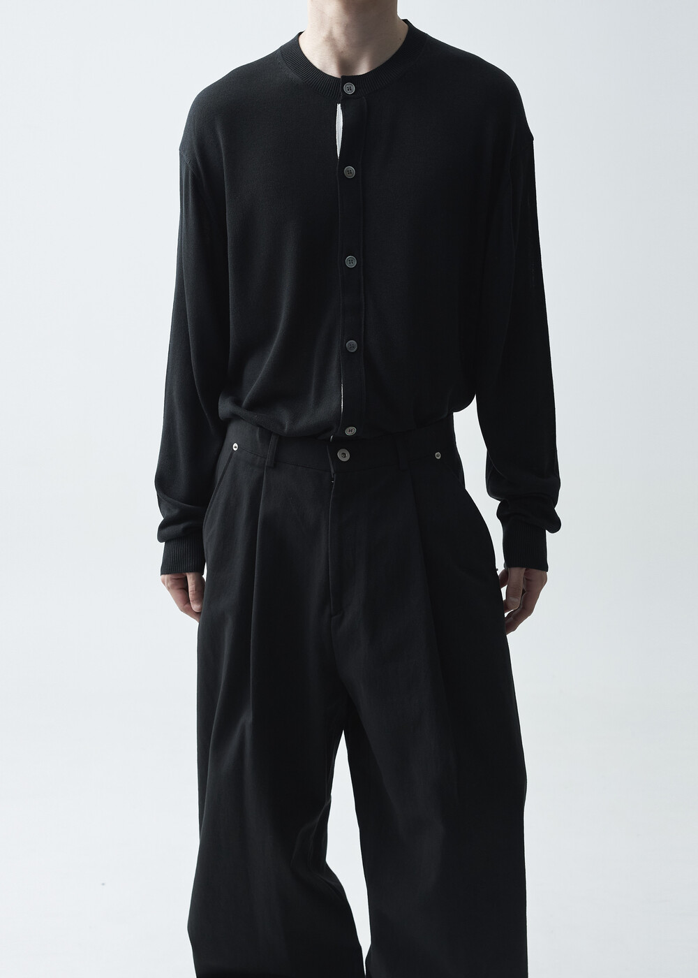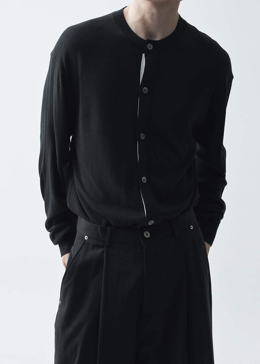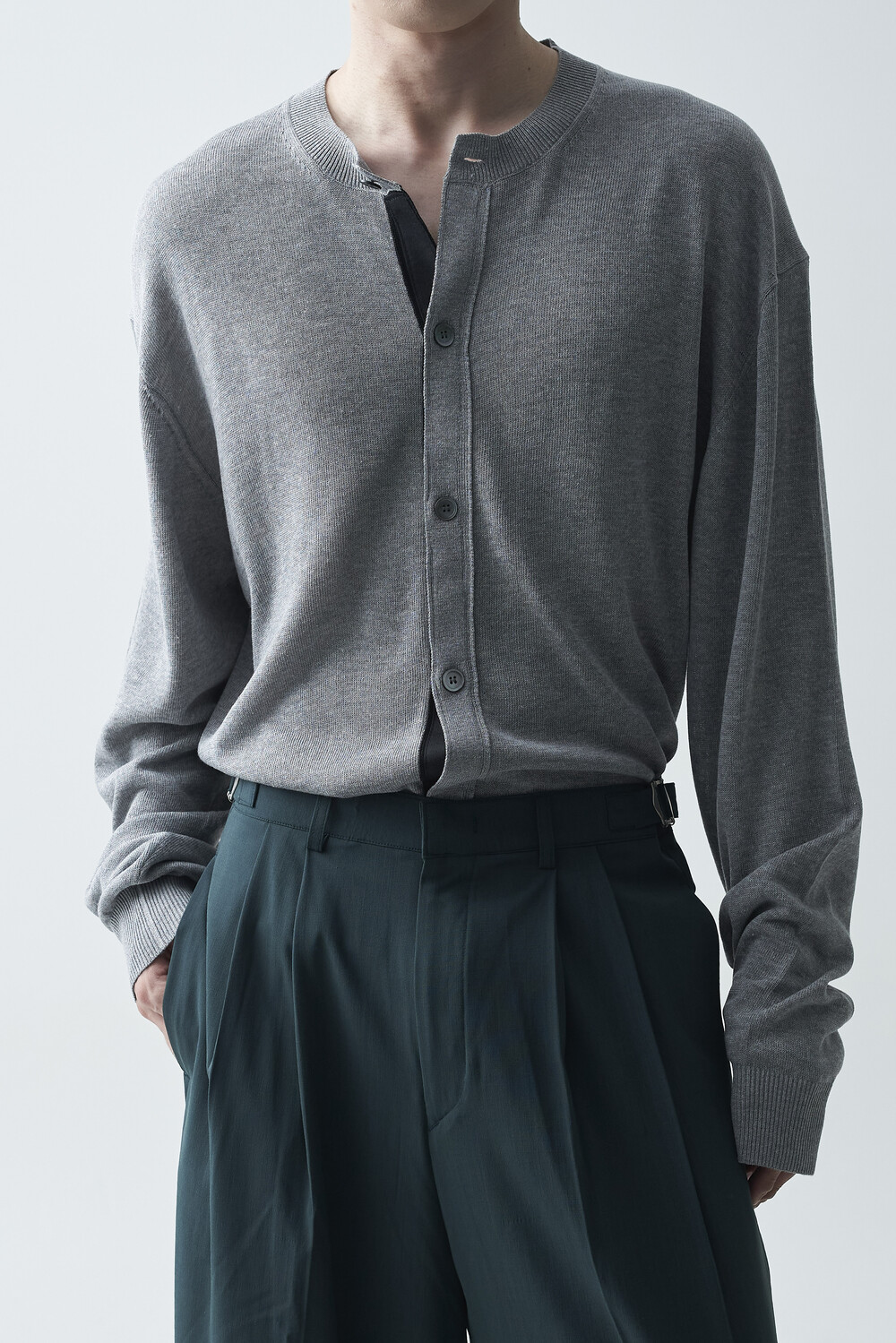 안정적인 라운드넥 스타일의 린넨 가디건 제품으로 중간부분 자연스럽게 드러나는 배색 디테일이 매력적인 제품입니다.