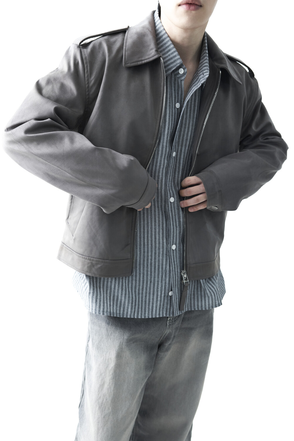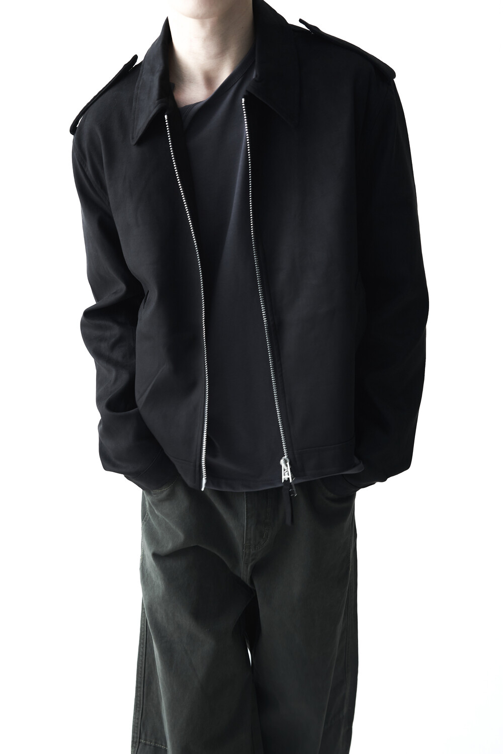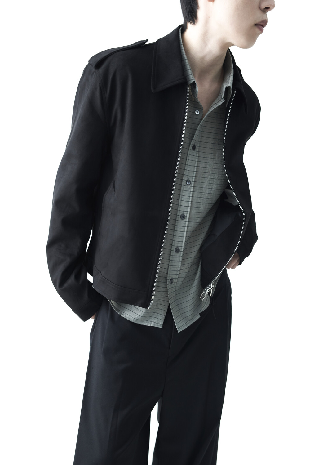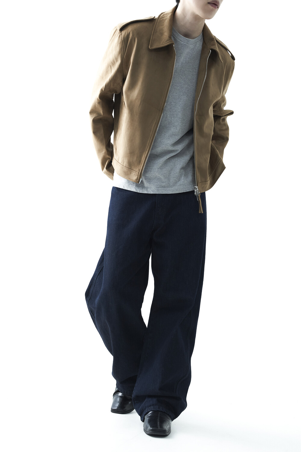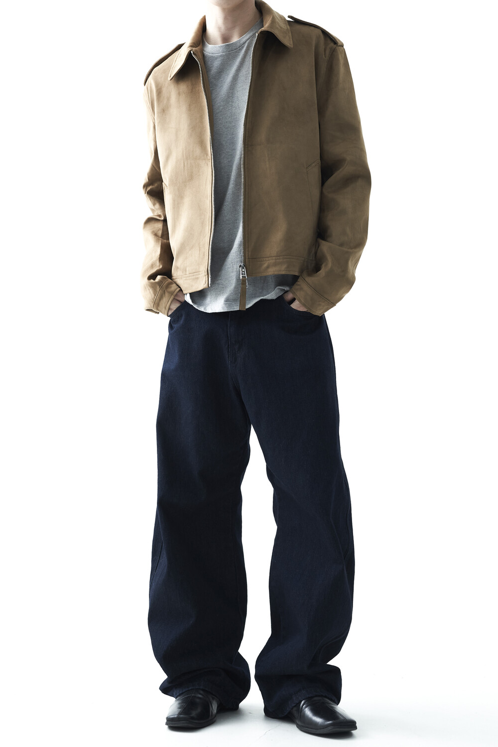- 견장(epaulet) 디테일이 적용된 부드러운 터치감의 스웨이드 자켓 제품입니다. 간절기에 알맞은 두께감으로 구성되었으며, 크롭한 기장감으로 다양한 이너제품들과 높은 코디력을 갖춘 제품입니다. 디테일 투웨이 지퍼를 통해 두가지 스타일로 착용해보시는 것을 권장해드립니다.