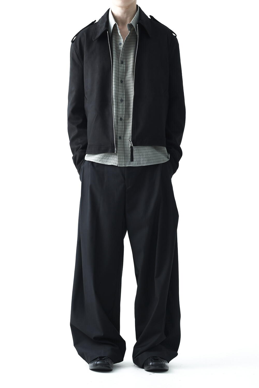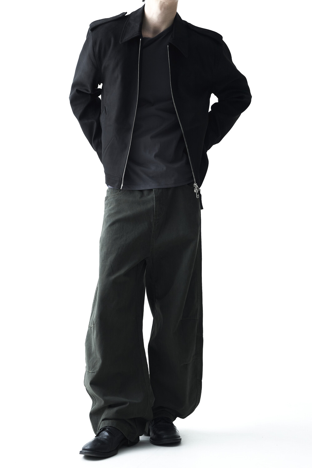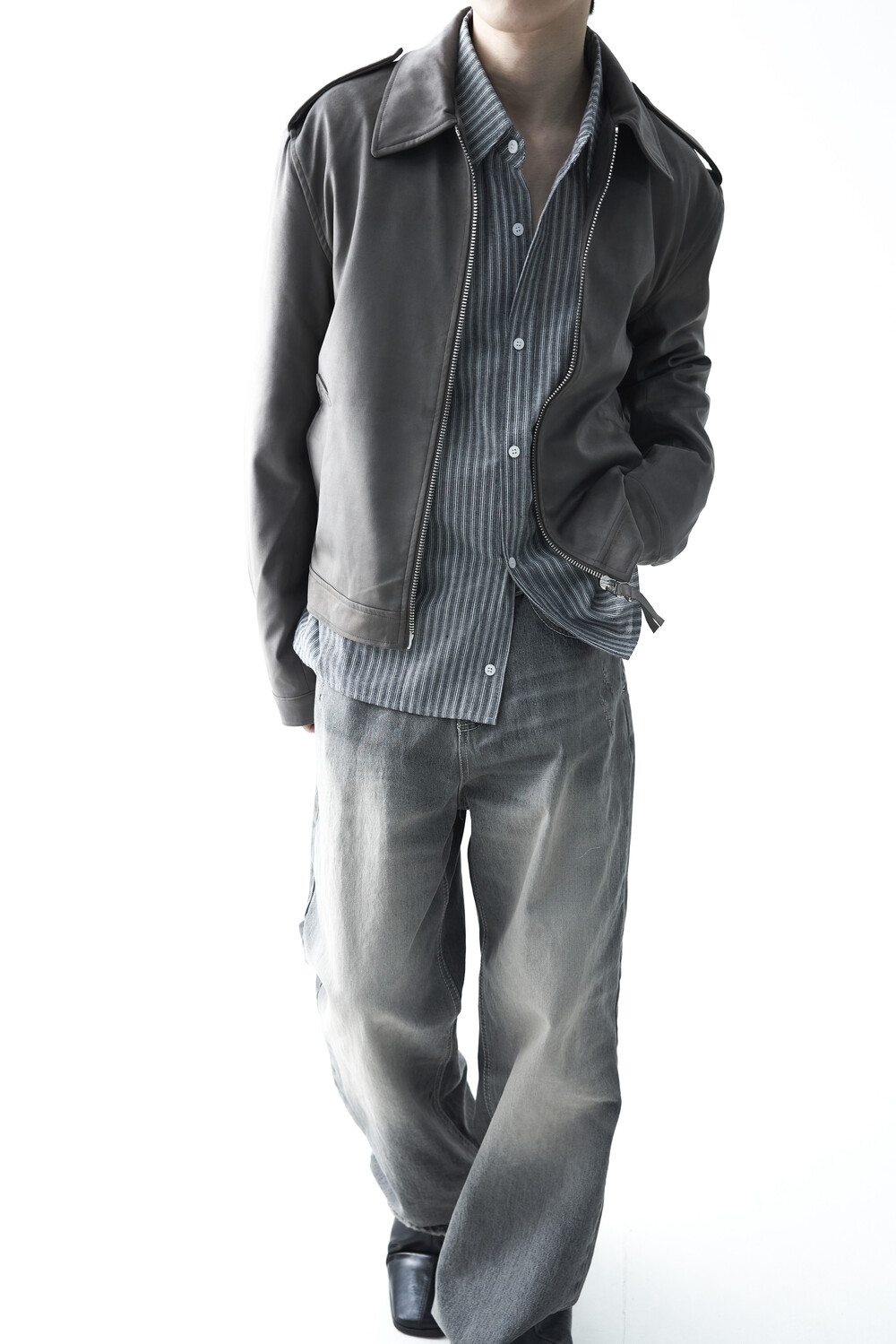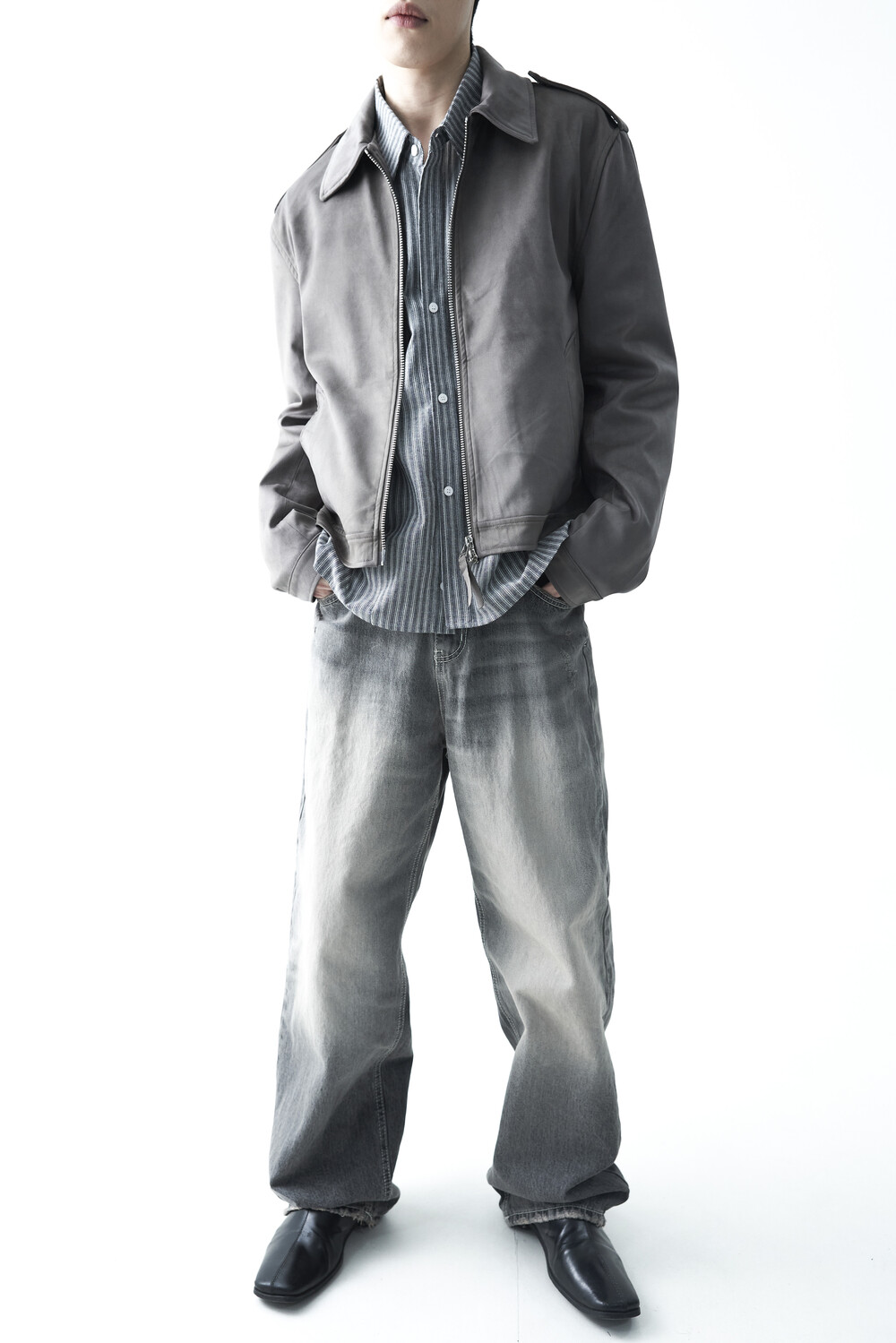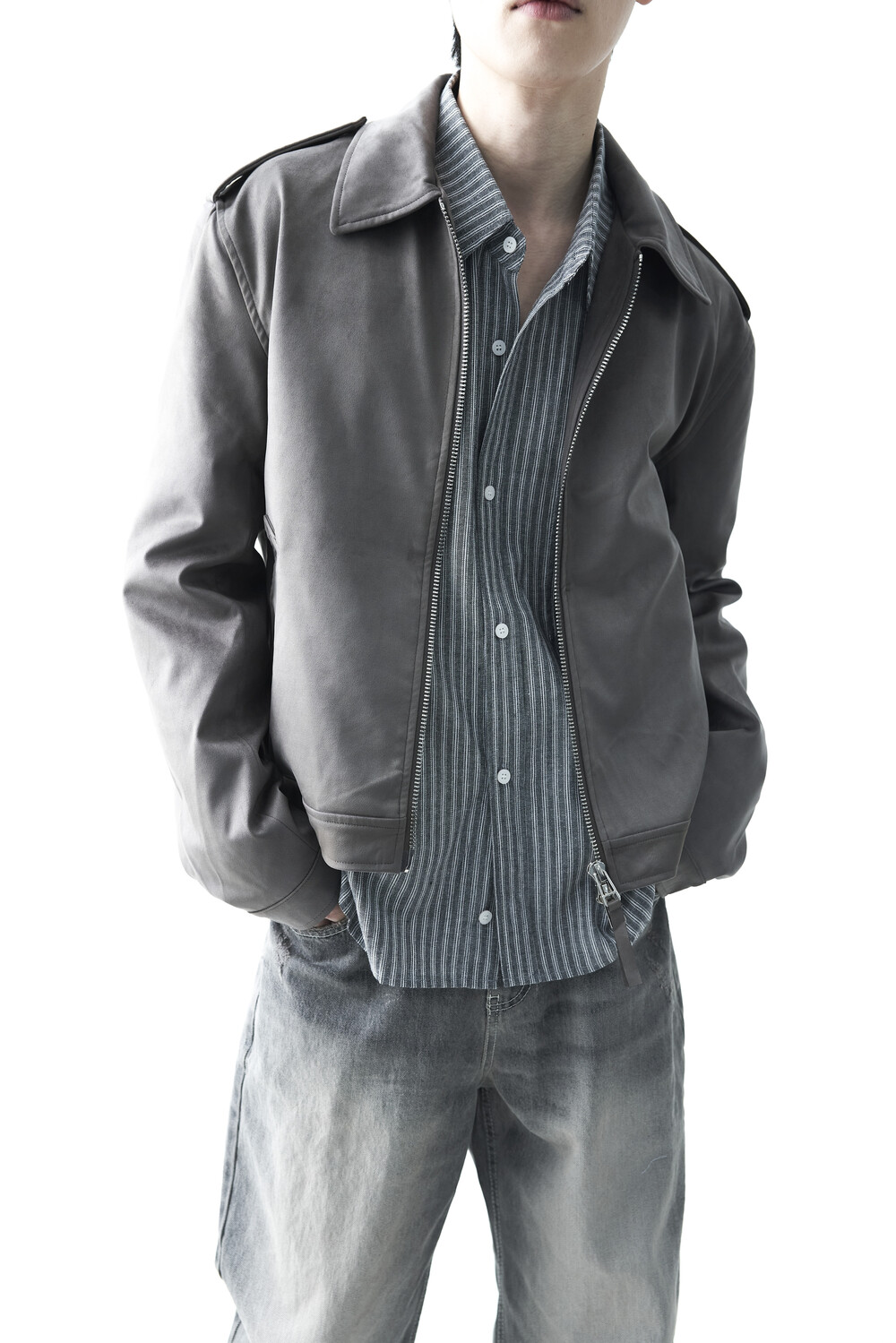 - 견장(epaulet) 디테일이 적용된 부드러운 터치감의 스웨이드 자켓 제품입니다. 간절기에 알맞은 두께감으로 구성되었으며, 크롭한 기장감으로 다양한 이너제품들과 높은 코디력을 갖춘 제품입니다. 디테일 투웨이 지퍼를 통해 두가지 스타일로 착용해보시는 것을 권장해드립니다.