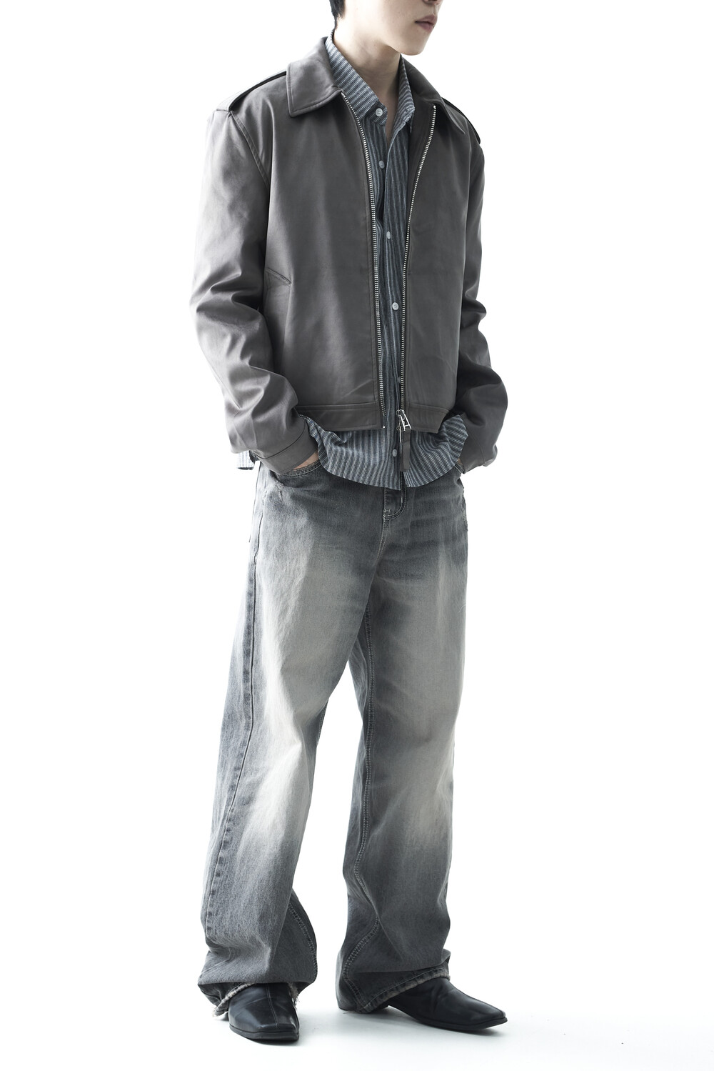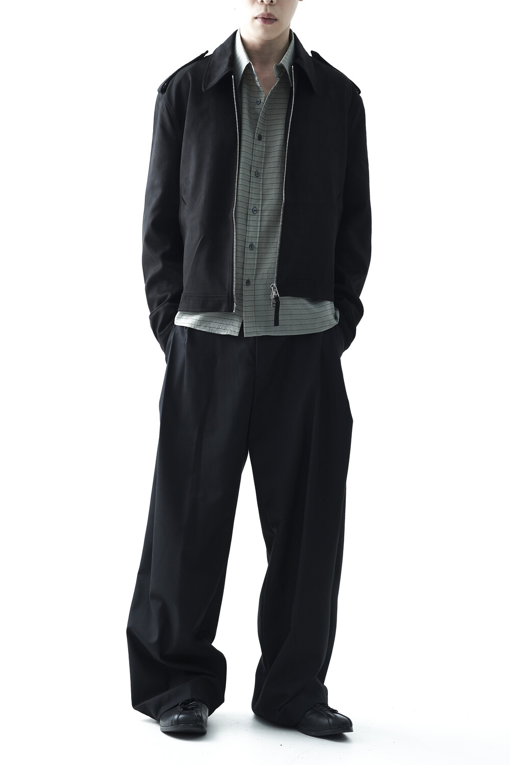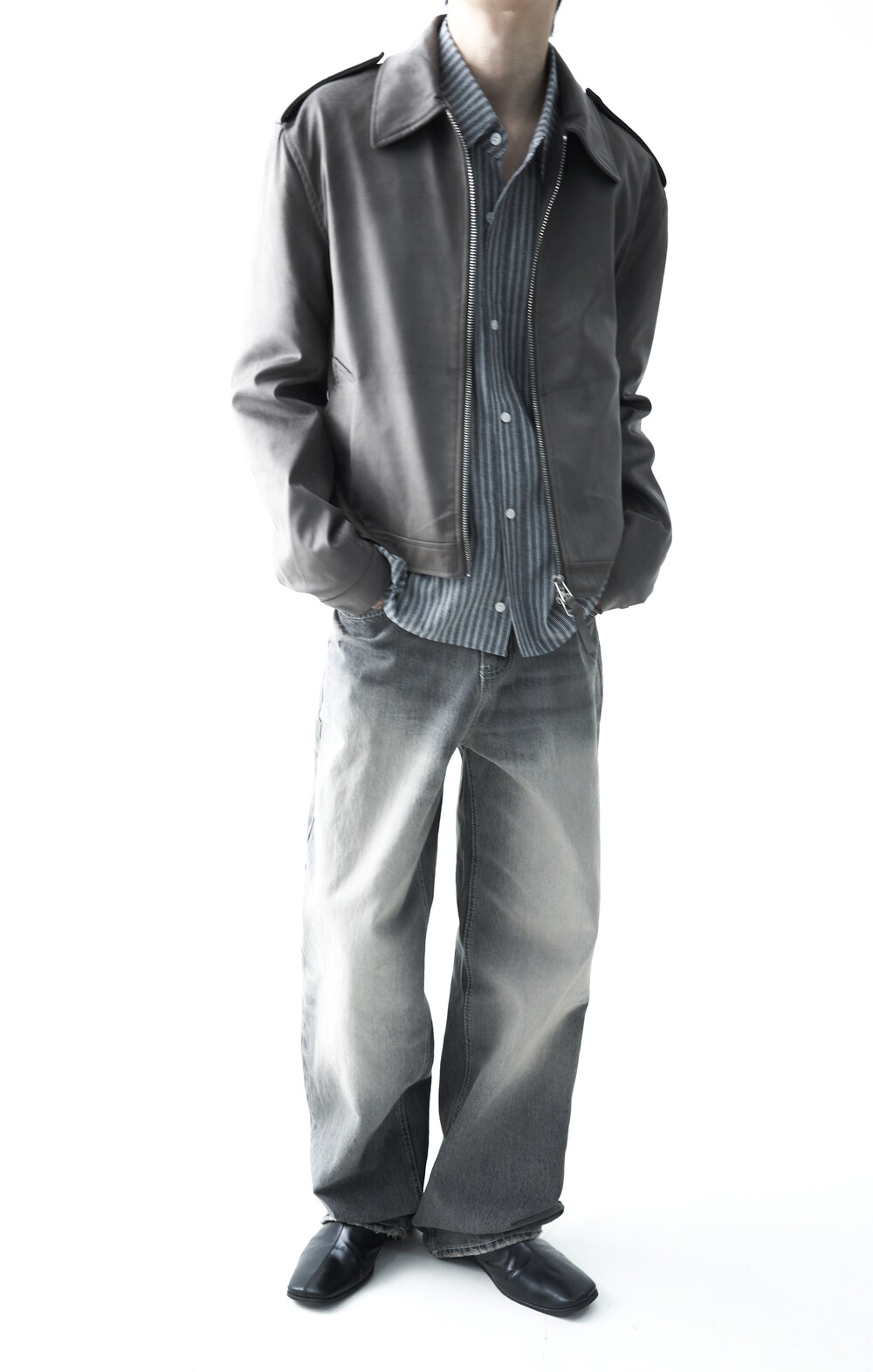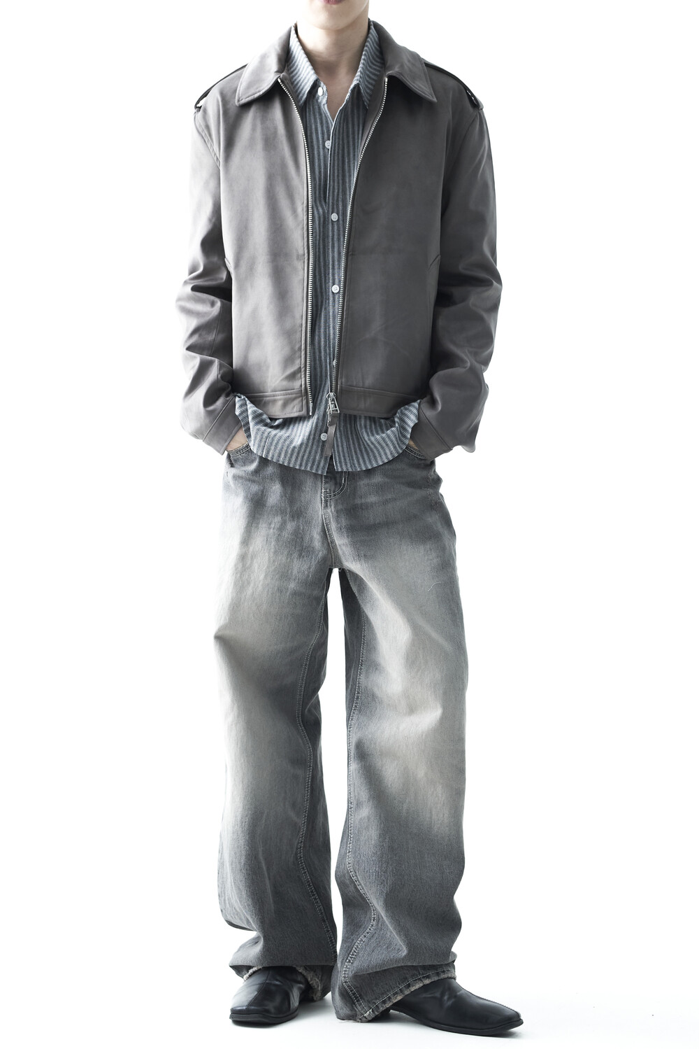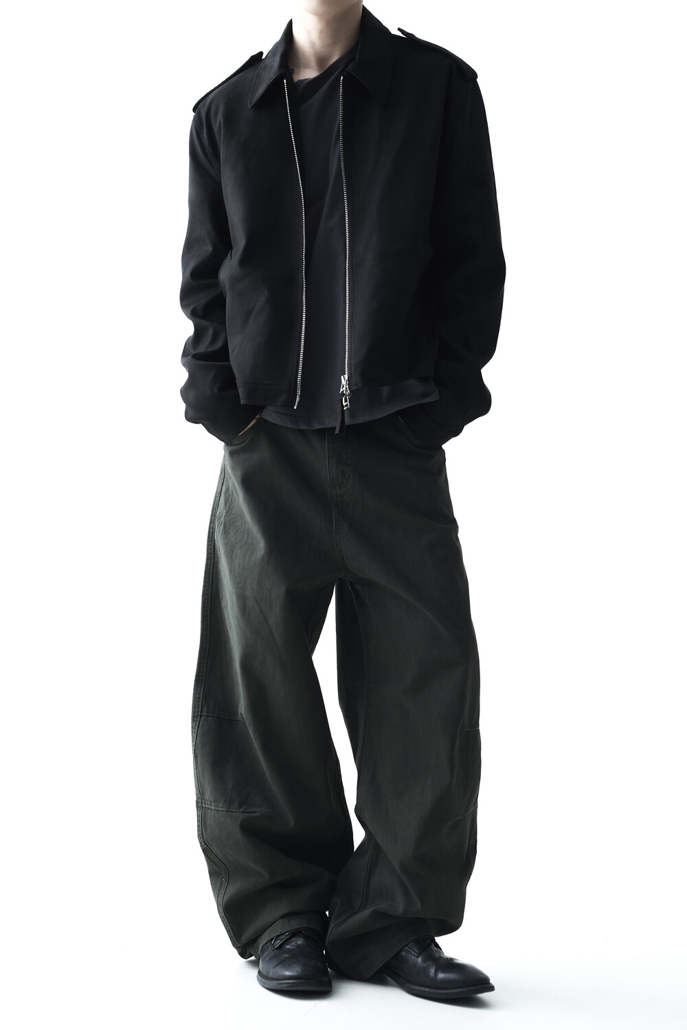 - 견장(epaulet) 디테일이 적용된 부드러운 터치감의 스웨이드 자켓 제품입니다. 간절기에 알맞은 두께감으로 구성되었으며, 크롭한 기장감으로 다양한 이너제품들과 높은 코디력을 갖춘 제품입니다. 디테일 투웨이 지퍼를 통해 두가지 스타일로 착용해보시는 것을 권장해드립니다.