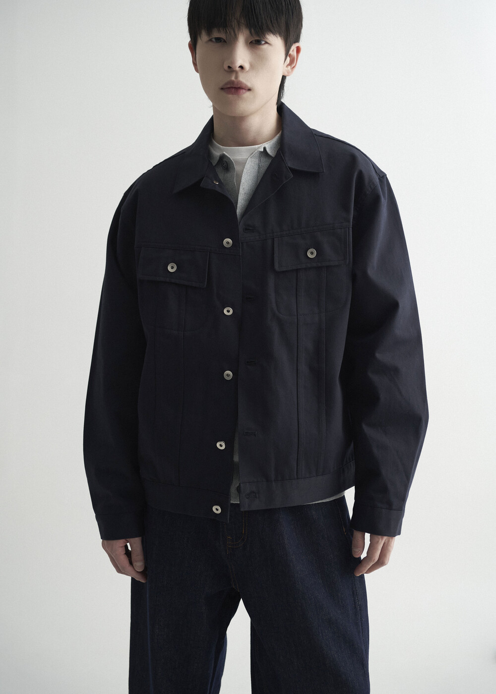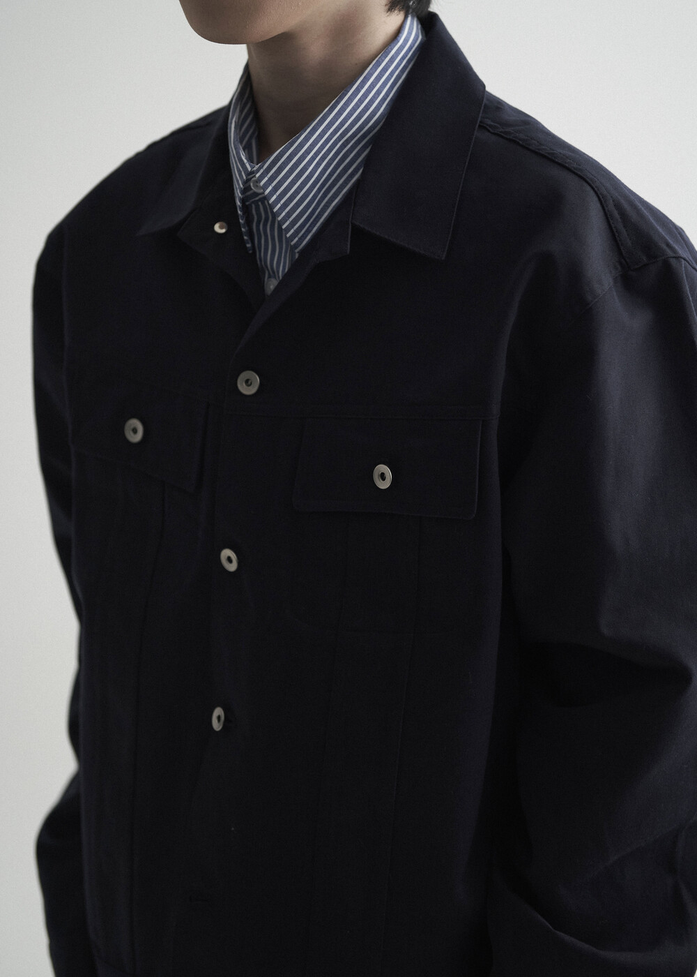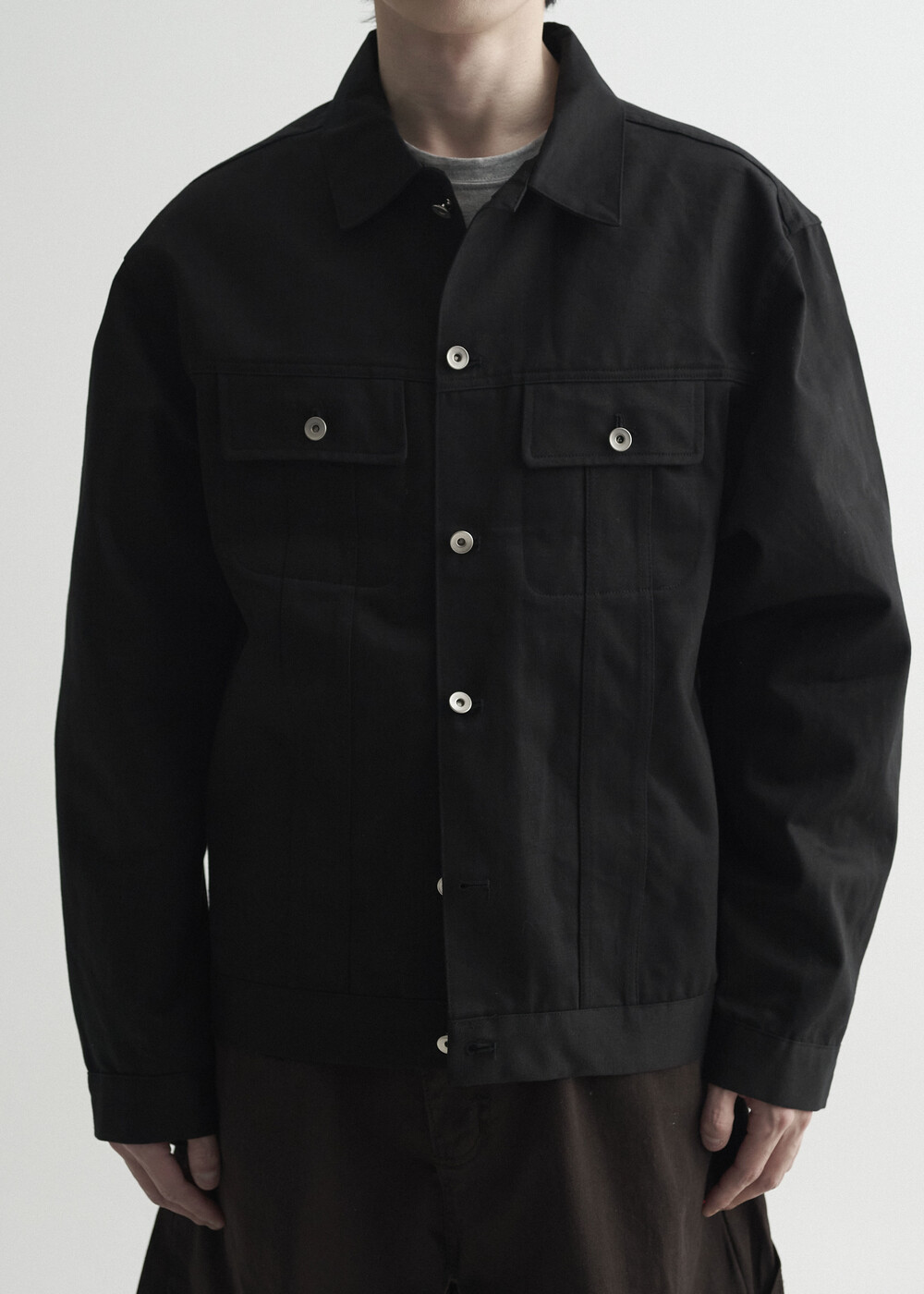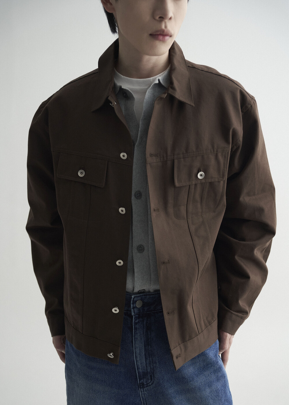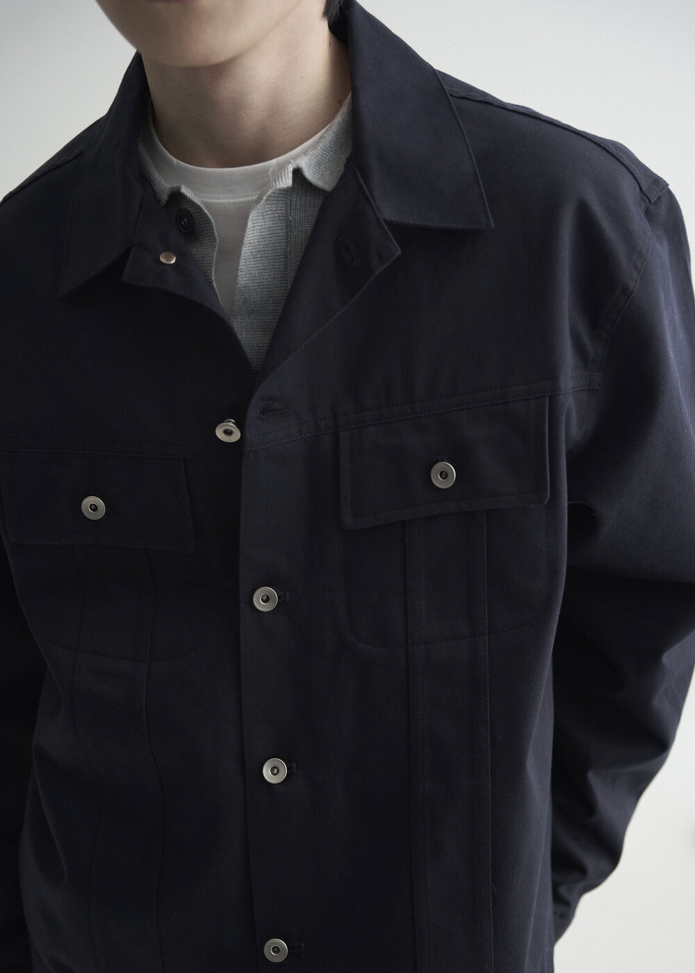 - 탄탄한 조직감의 세미 오버 실루엣을 띄는 코튼 트러커 자켓 제품