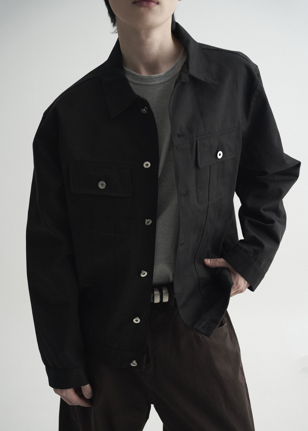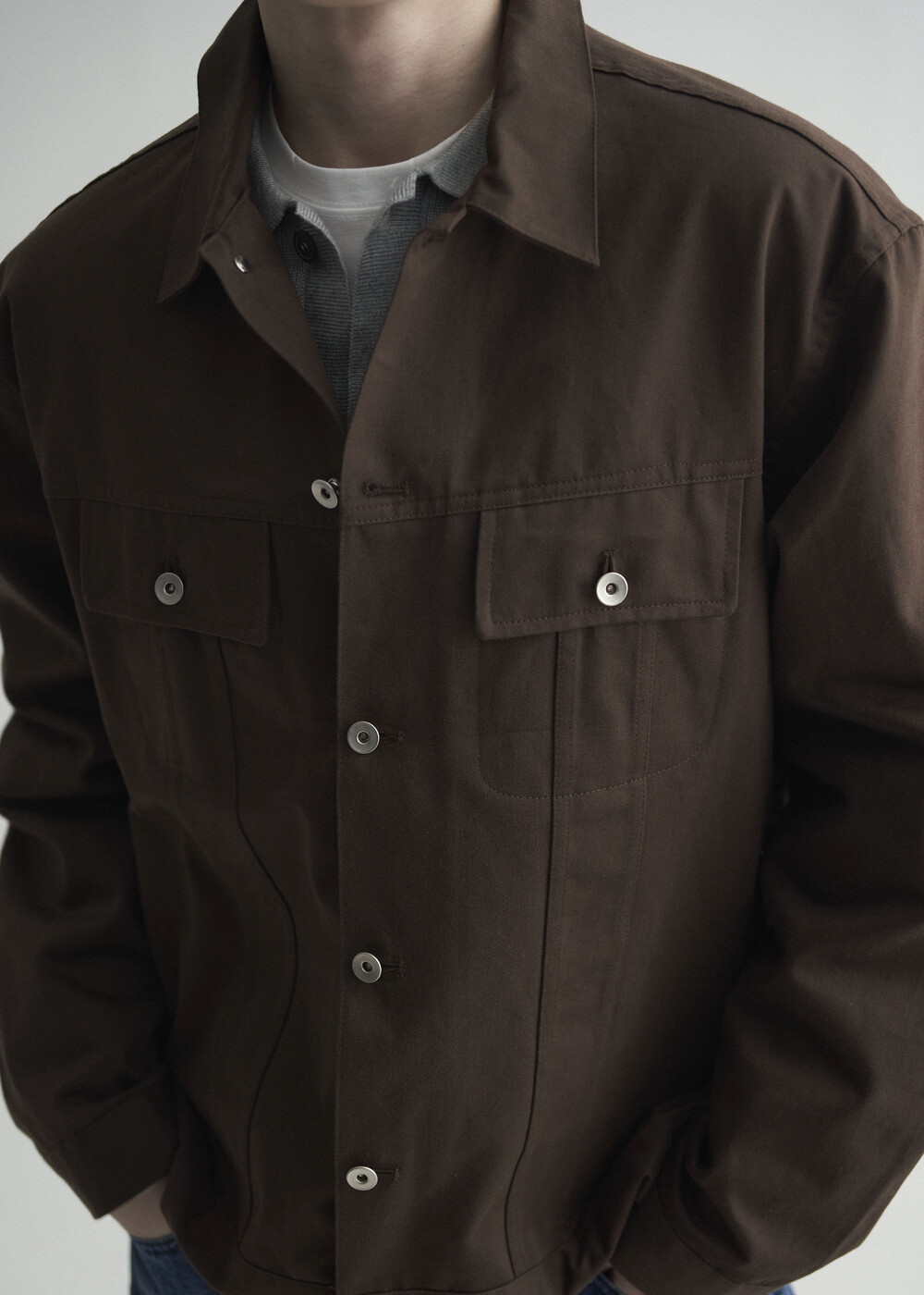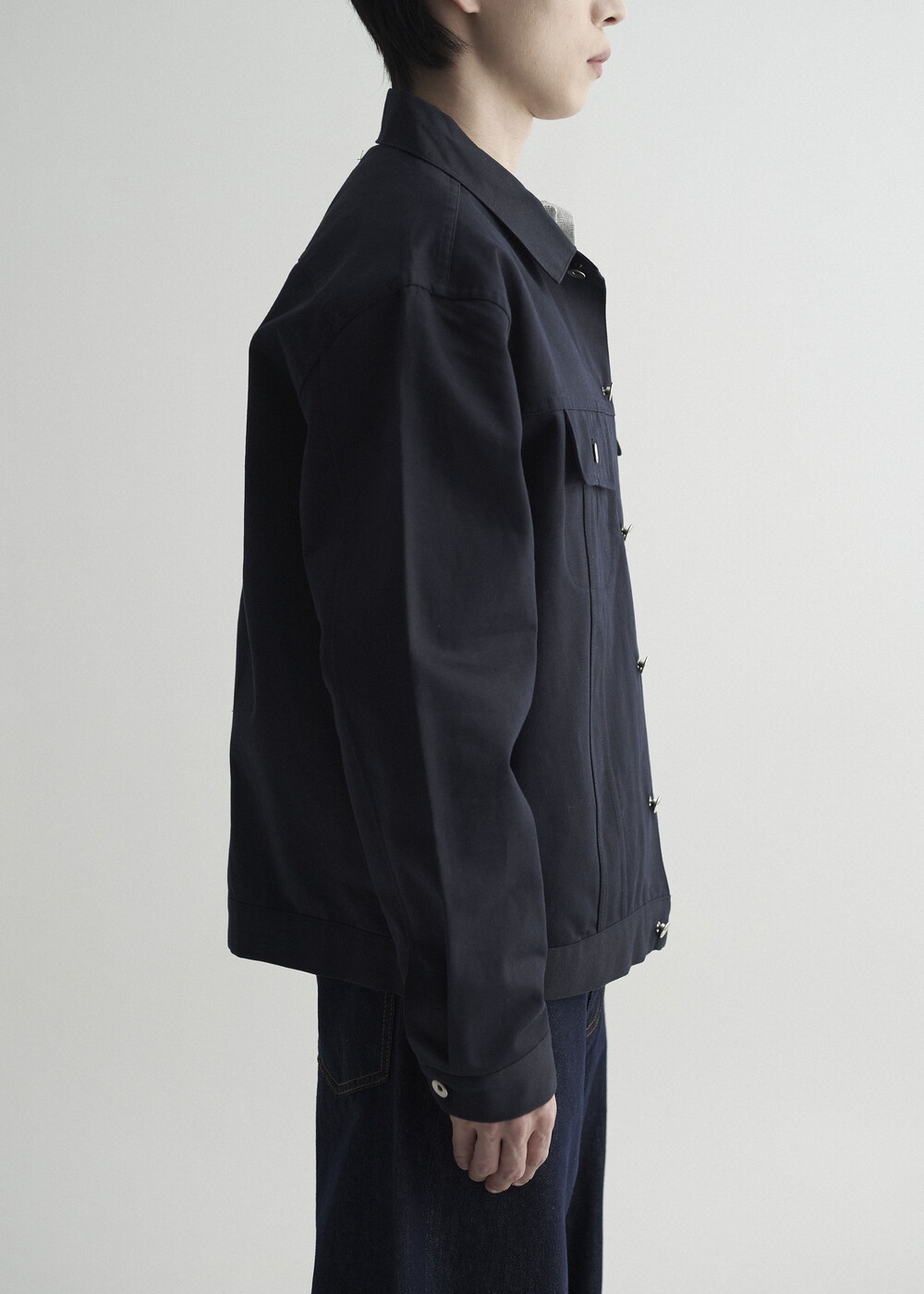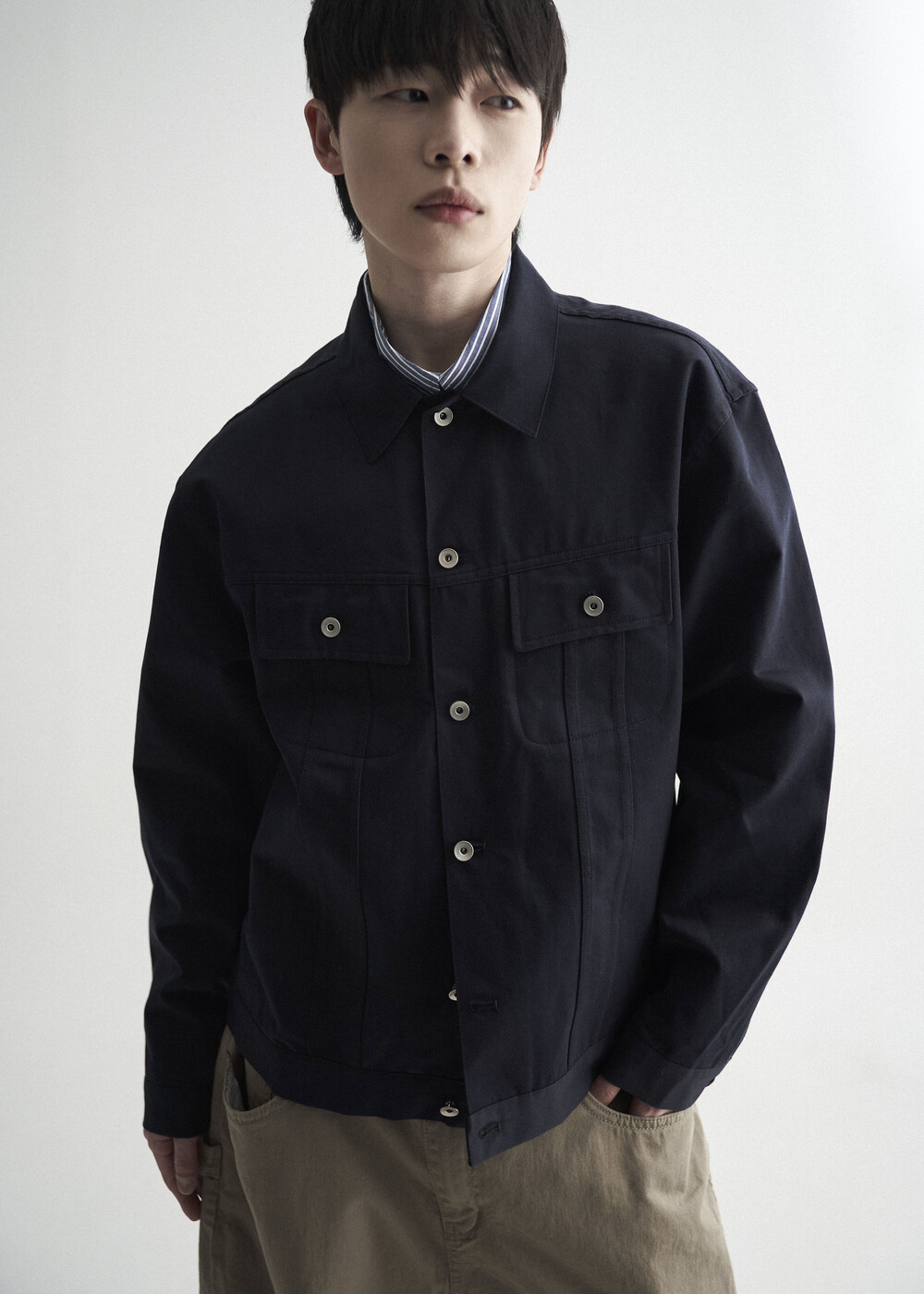 - 탄탄한 조직감의 세미 오버 실루엣을 띄는 코튼 트러커 자켓 제품