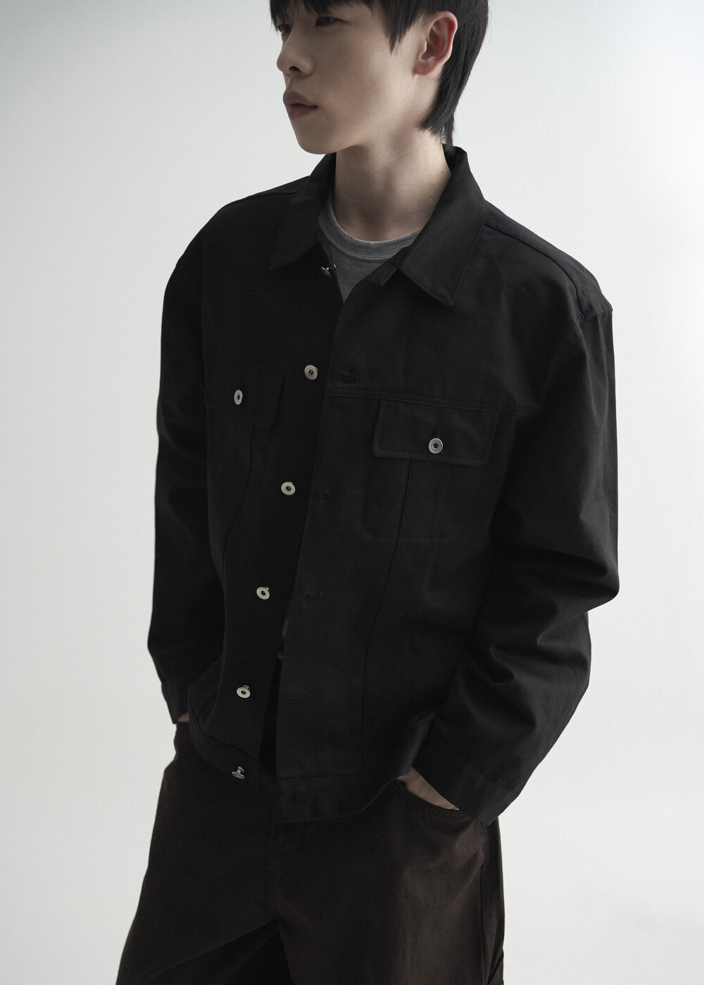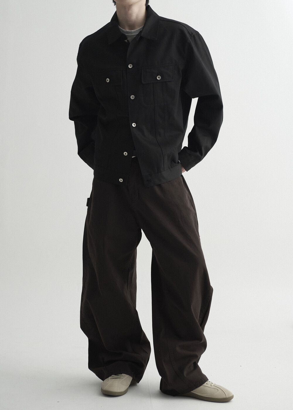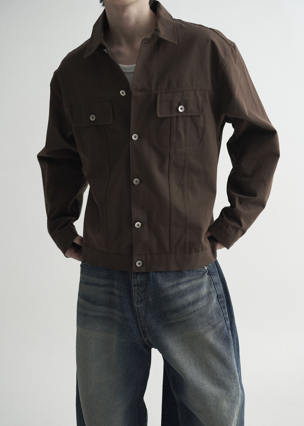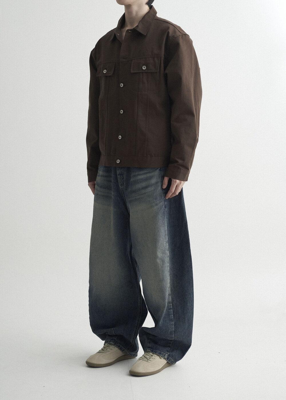 - 탄탄한 조직감의 세미 오버 실루엣을 띄는 코튼 트러커 자켓 제품