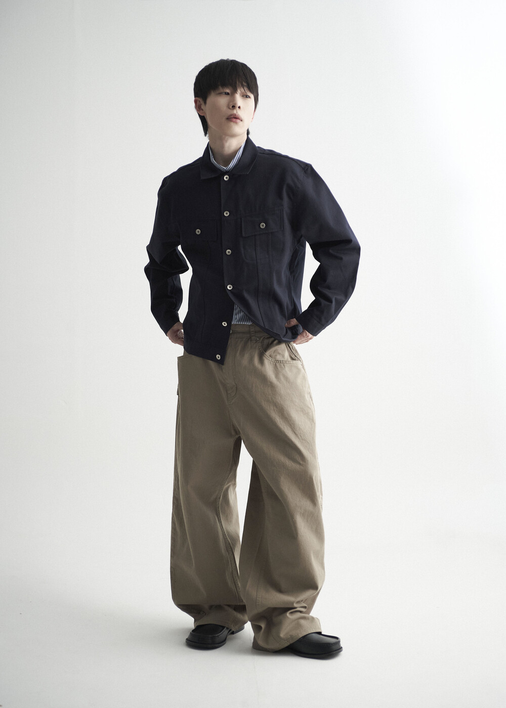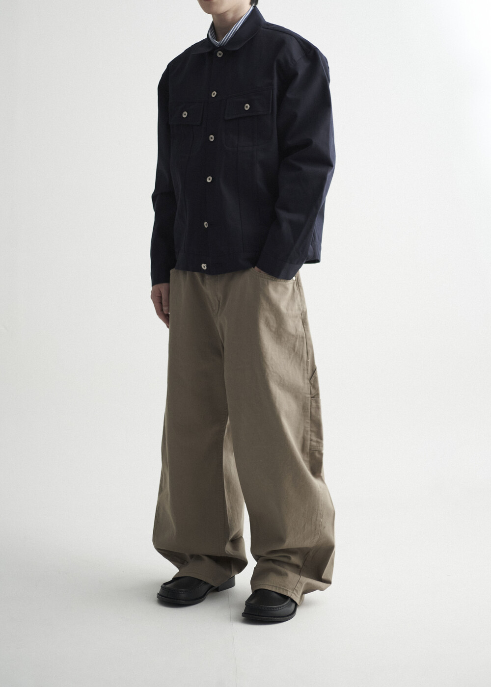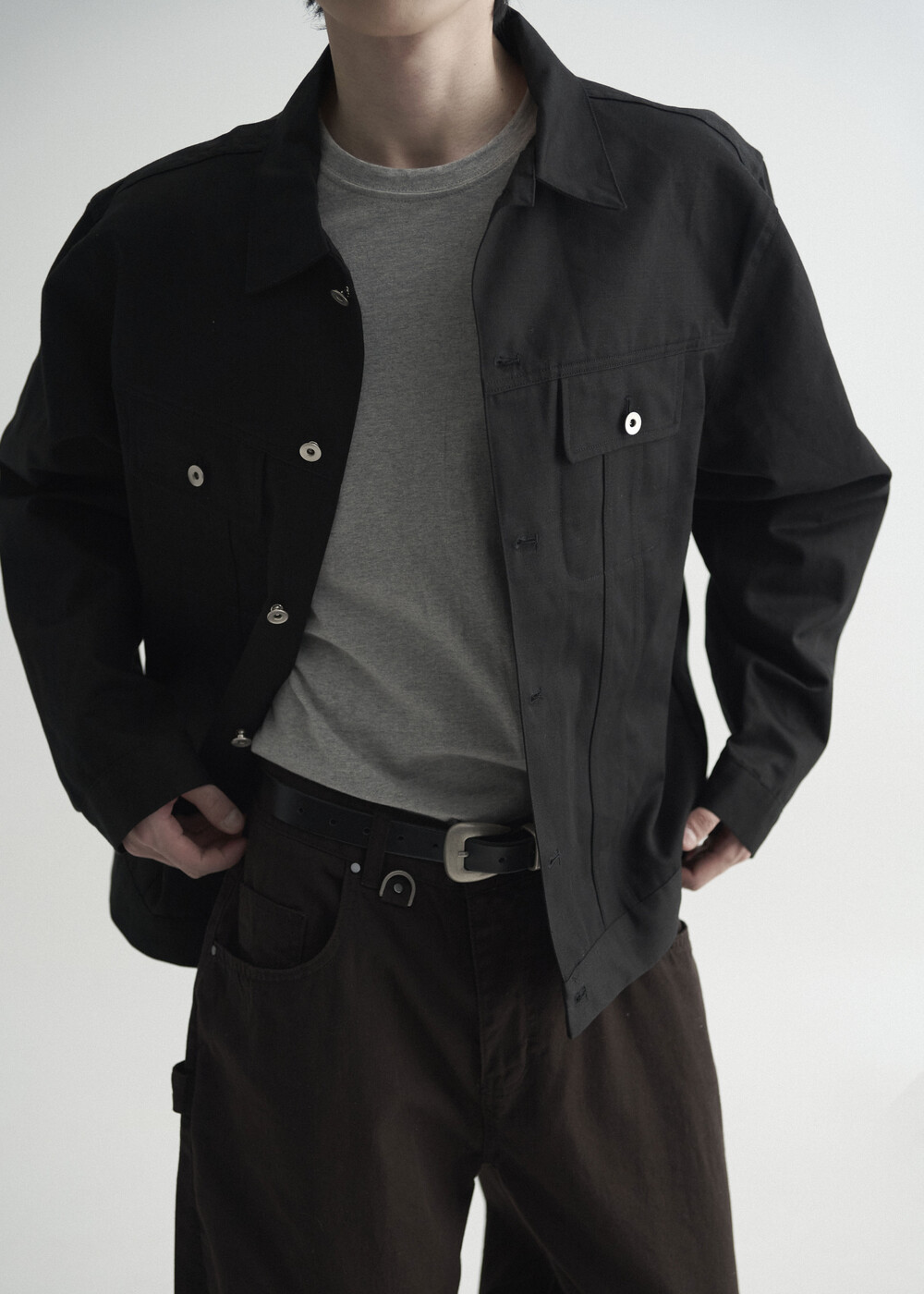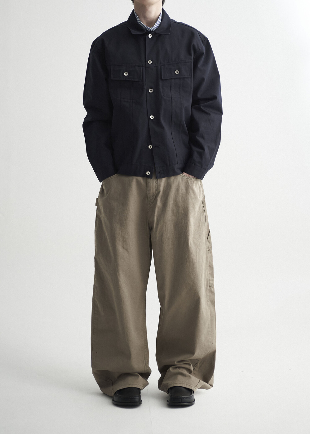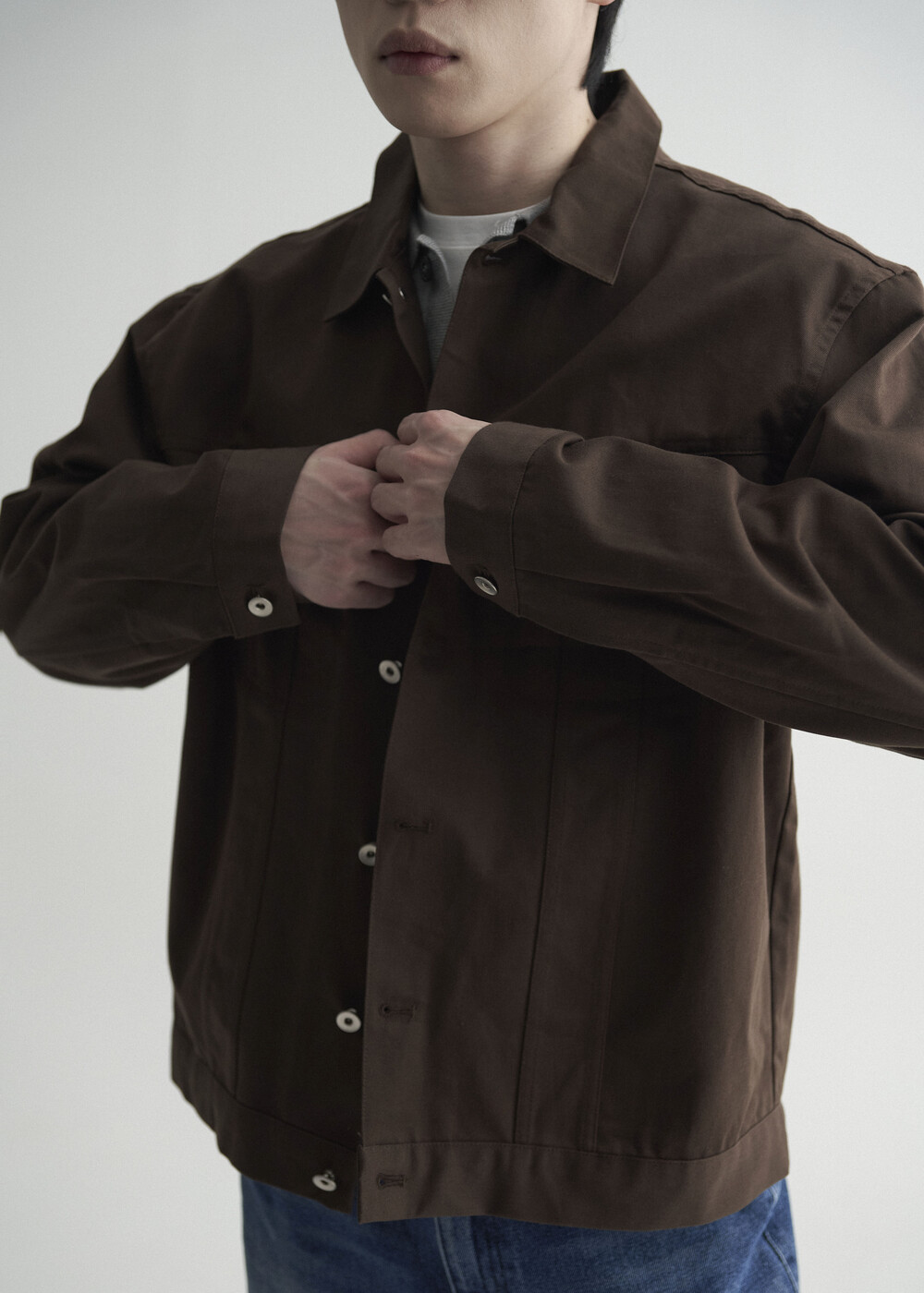 - 버튼 잠금 방식에 따라 오픈카라 연출 또한 가능하며, 쉽게 흐트러지지 않는 핏을 형성합니다.