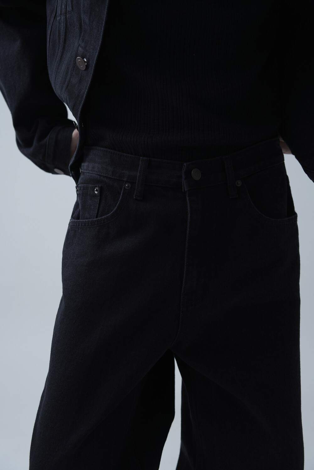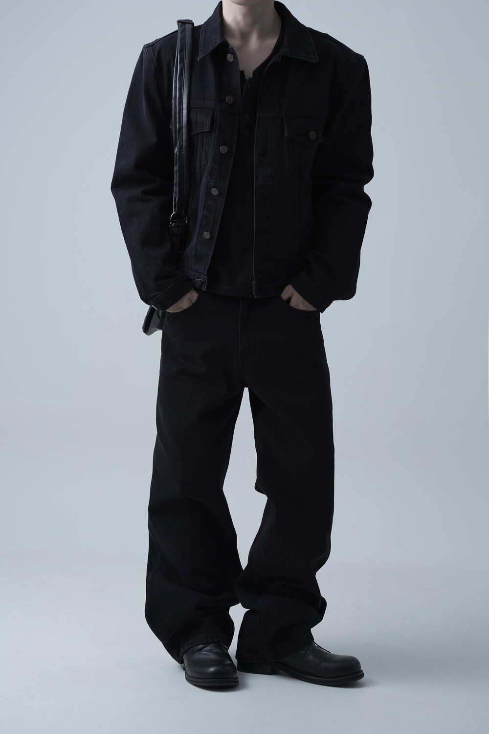 딥한 워시드 블랙 컬러감의 와이드 데님 팬츠 제품으로 워싱 가공을 통해 빛바랜듯한 코튼 데님 원단의 질감이 매력적인 데님팬츠 제품입니다. 동일 소재감의 자켓 제품과 함께 셋업 코디가 가능하며, 이외 다양한 상의 제품군들과 간편한 착용이 가능합니다.