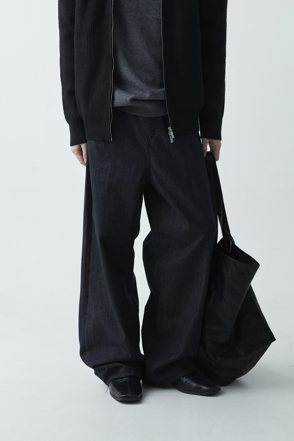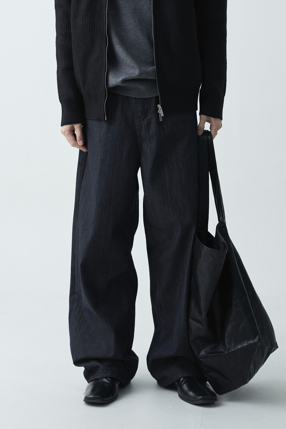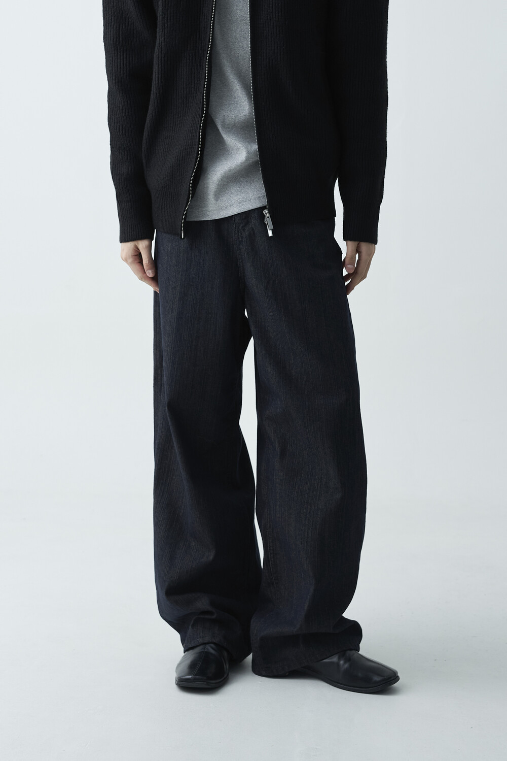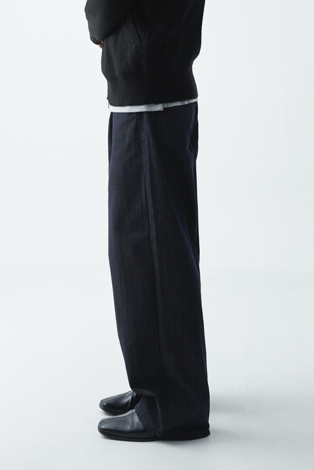 논페이드 생지 코튼 데님 소재감의 와이드 데님 팬츠 제품입니다. 은은한 슬럽 원단감이 더욱 고급스러운 매력을 전하며, 생지데님 특유의 탄탄한 조직감이 견고하게 잘 나타나는 와이드 팬츠 제품입니다.