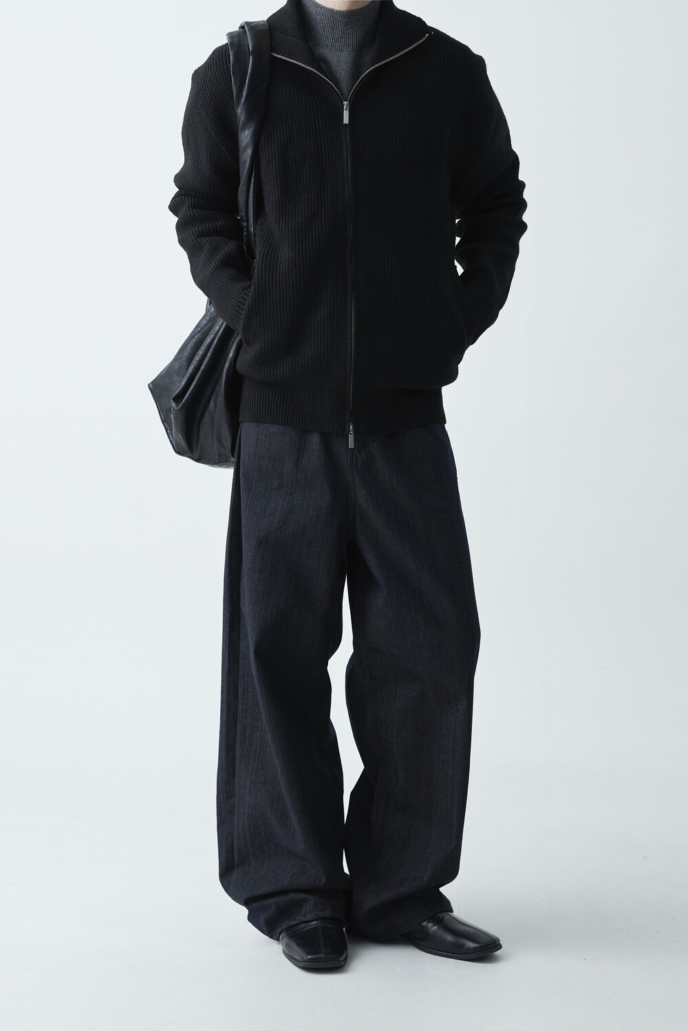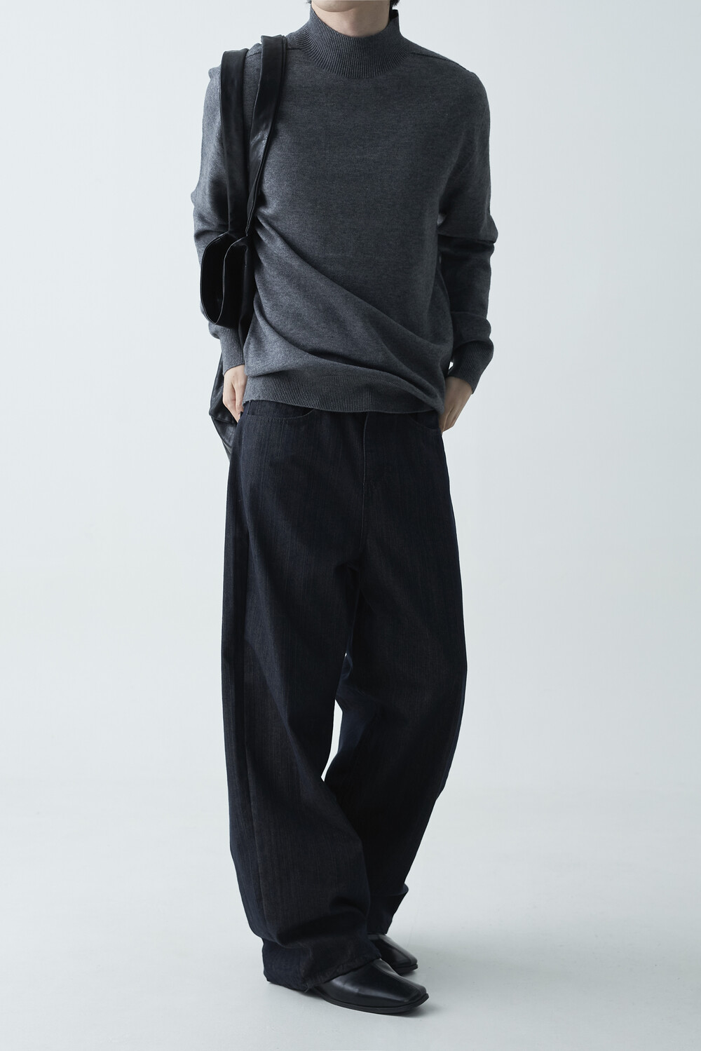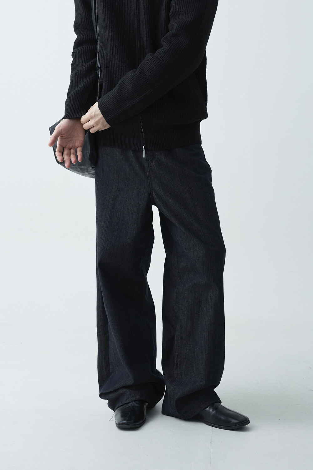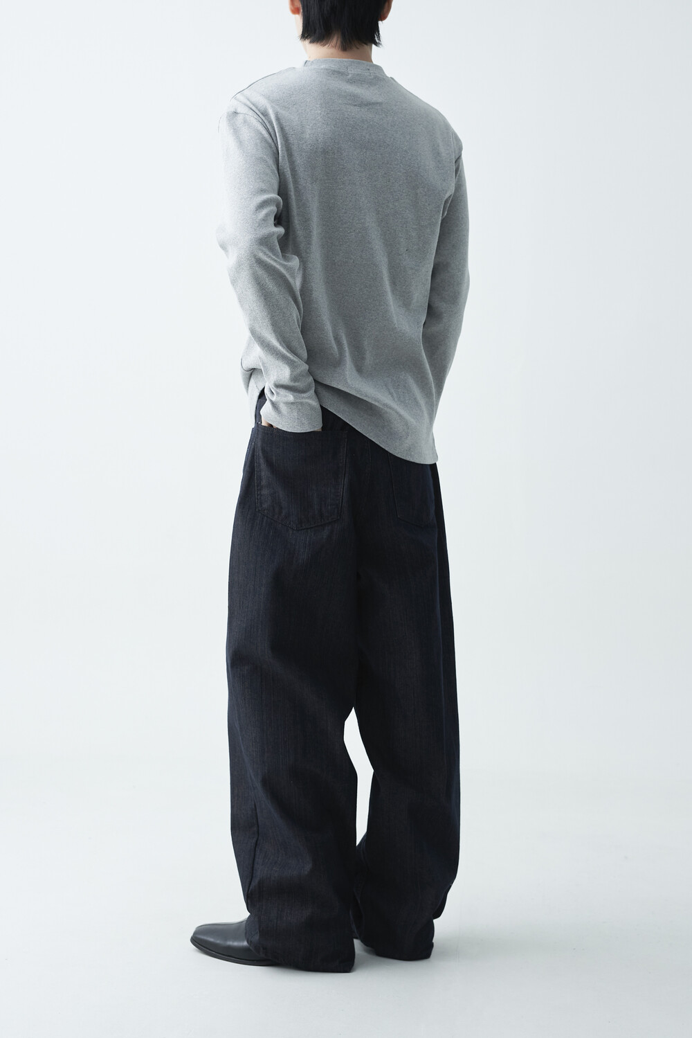 논페이드 생지 코튼 데님 소재감의 와이드 데님 팬츠 제품입니다. 은은한 슬럽 원단감이 더욱 고급스러운 매력을 전하며, 생지데님 특유의 탄탄한 조직감이 견고하게 잘 나타나는 와이드 팬츠 제품입니다.