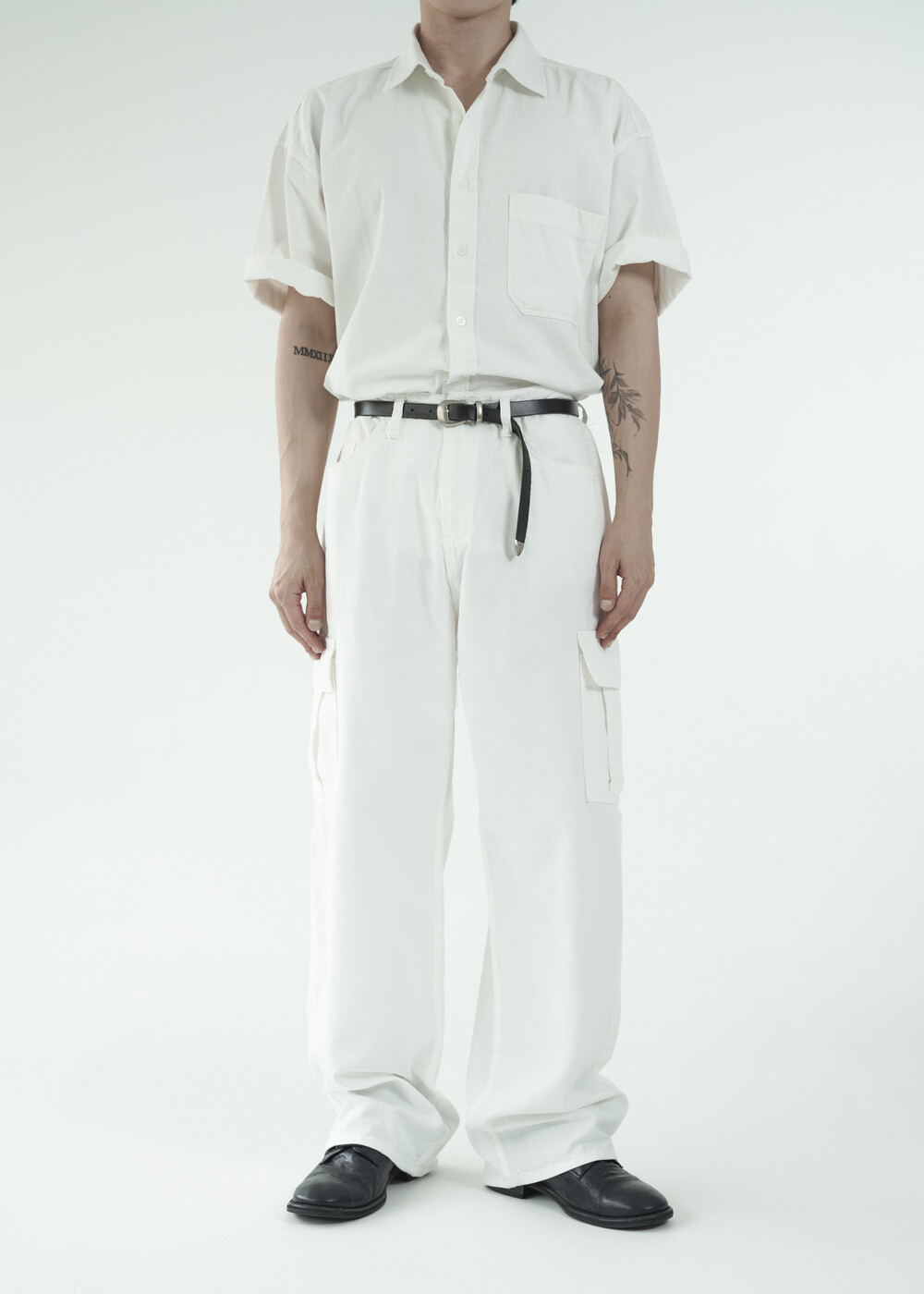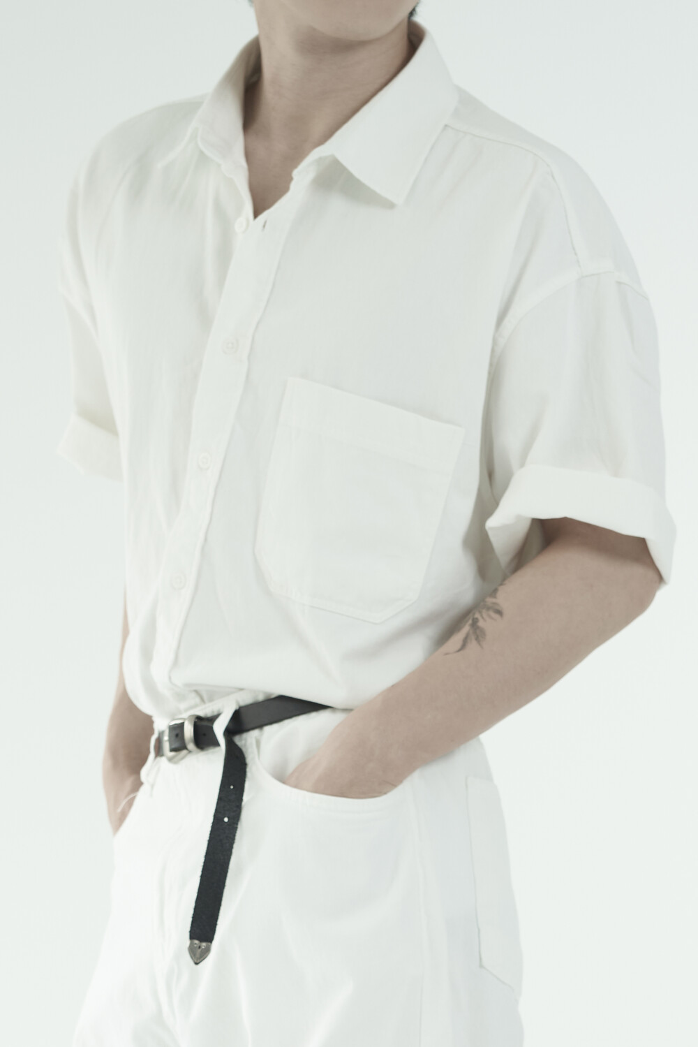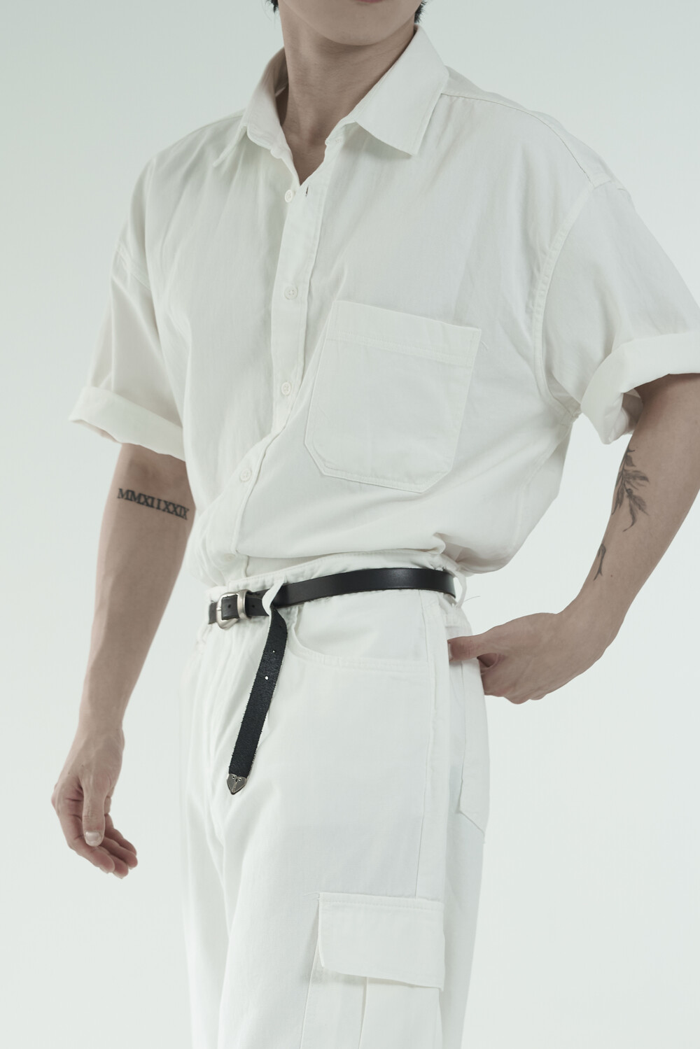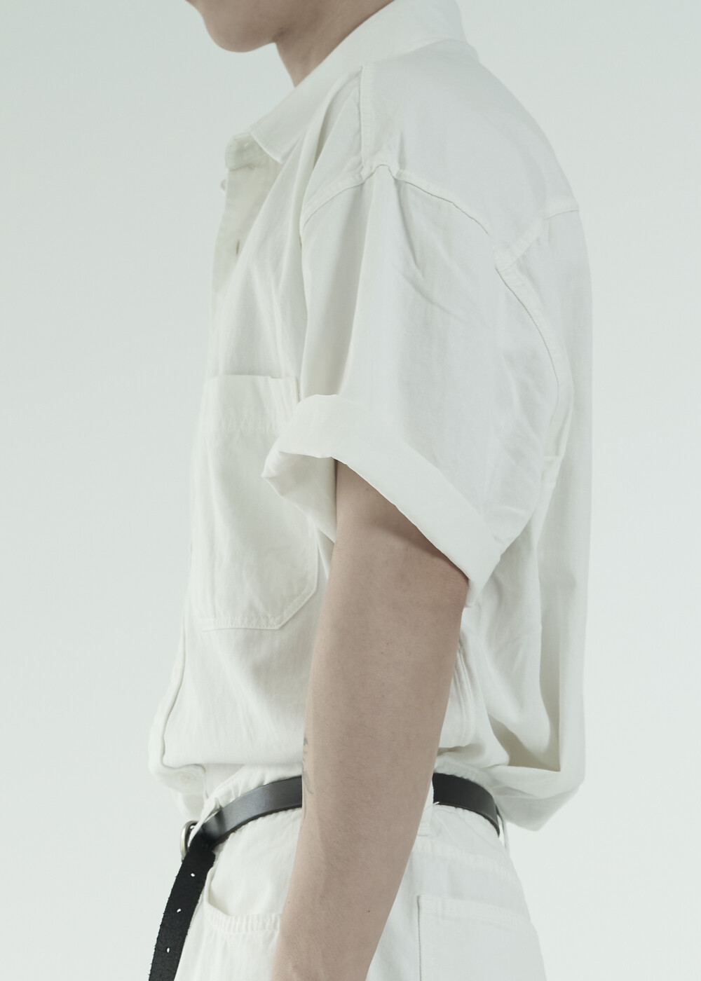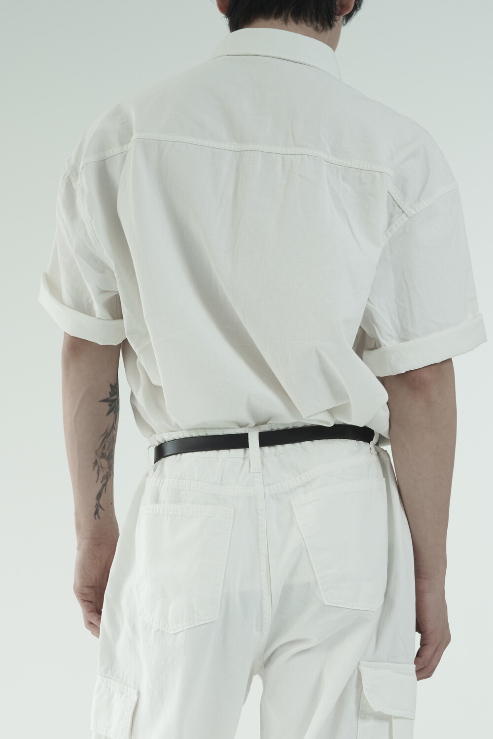 - 20수 트윌 원단감 사용으로 자연스러운 코튼의 구김이 더욱 매력적인 하프컷 셔츠