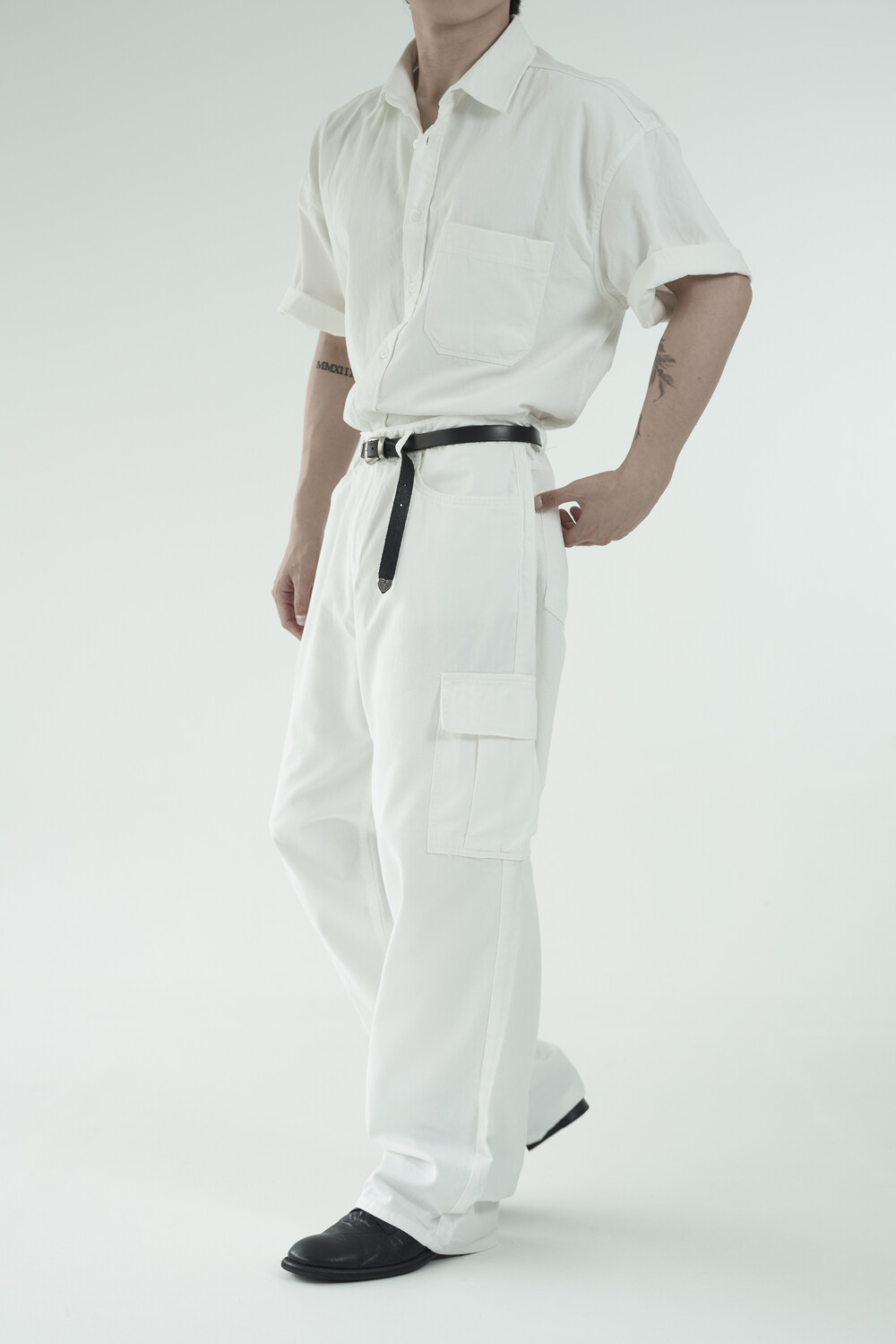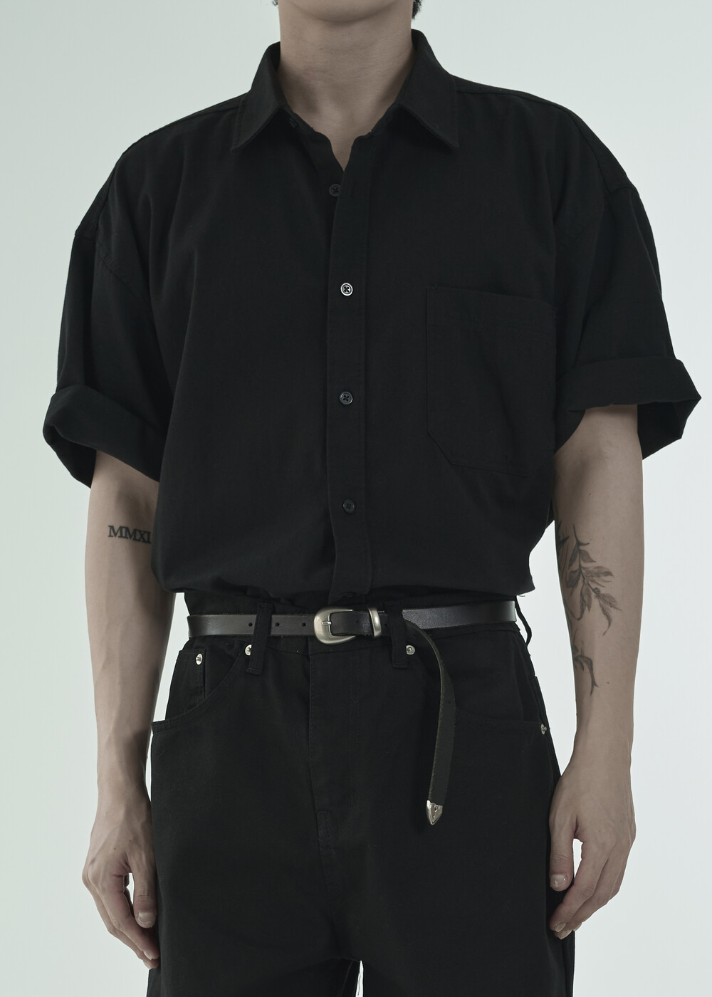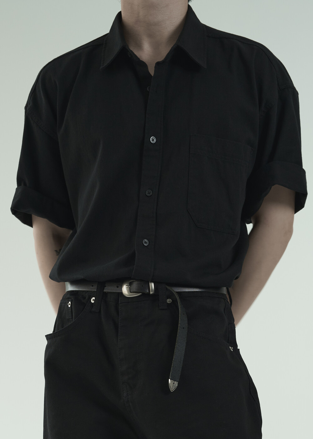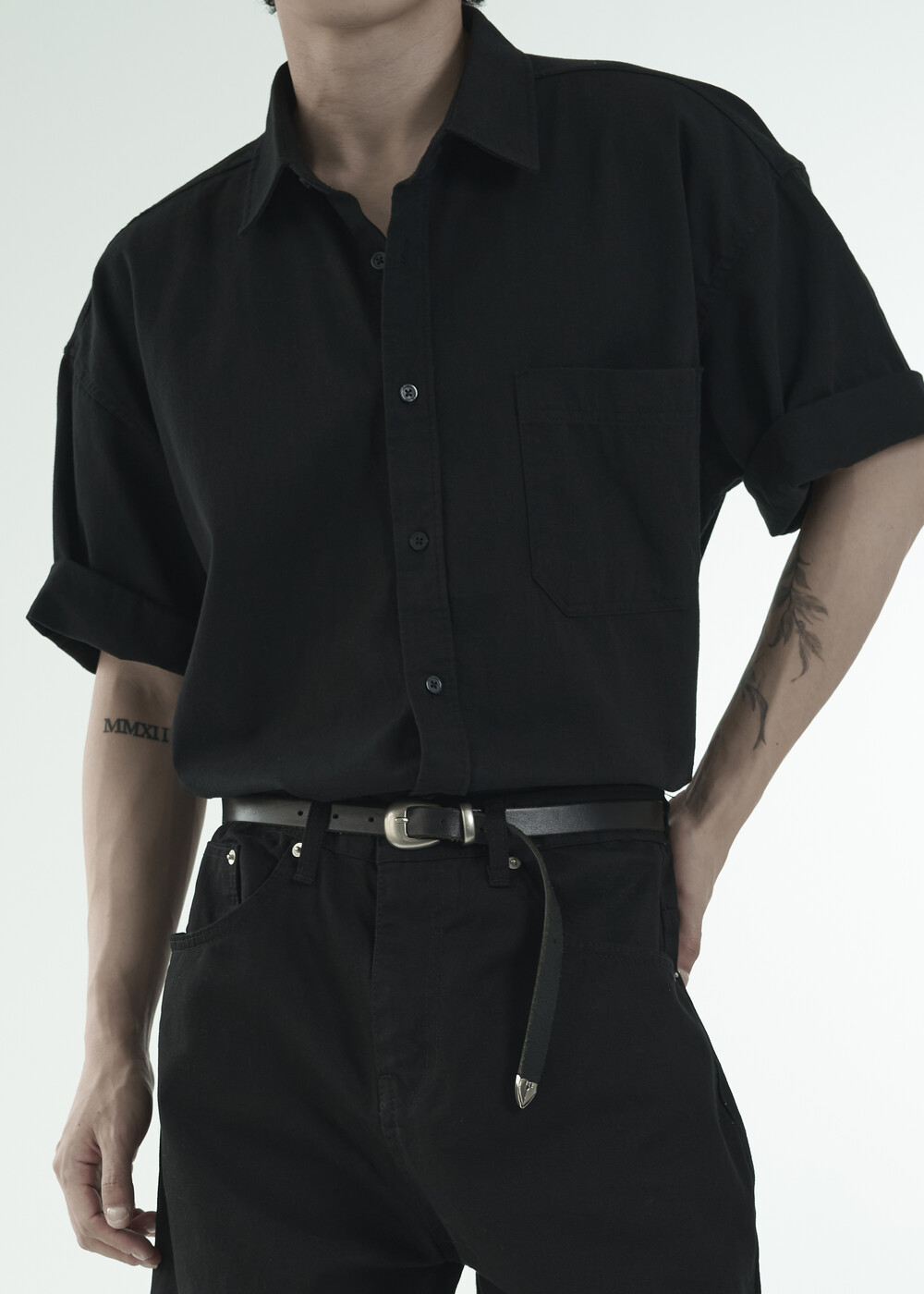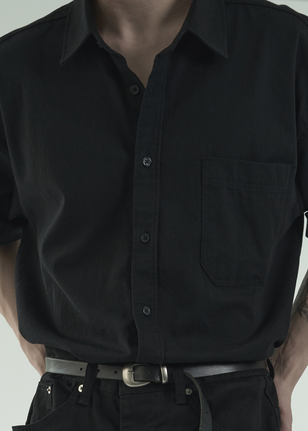 - 20수 트윌 원단감 사용으로 자연스러운 코튼의 구김이 더욱 매력적인 하프컷 셔츠