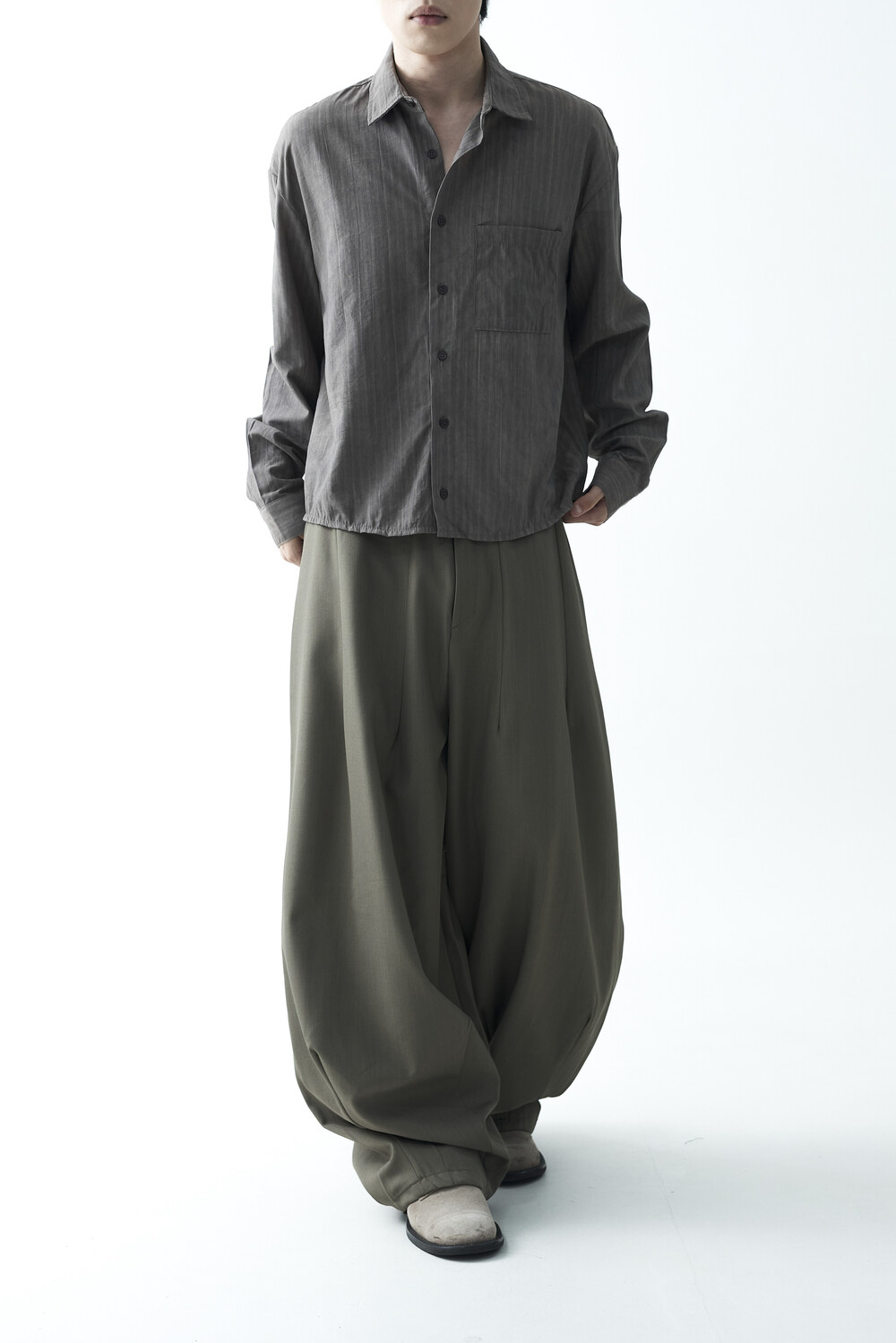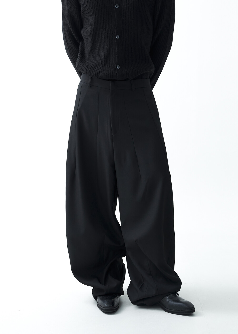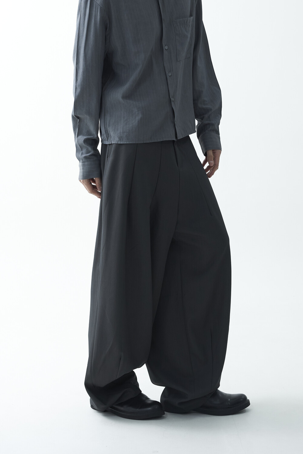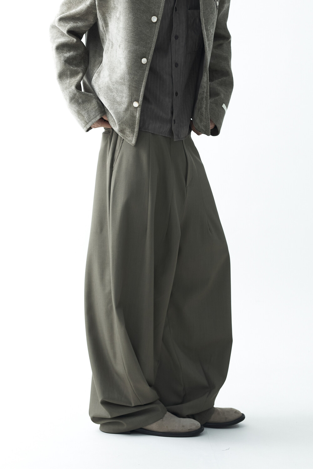 다트 투핀턱 디테일과 오버와이드 벌룬핏 실루엣으로 찰랑이는 연출이 돋보이는 슬렉스 제품입니다. 셔츠와 자켓으로 3피스 셋업 코디가 가능하며 미니멀하면서도 캐쥬얼한 무드 연출에 효과적입니다. 프리사이즈로 제작되어 허리뒷밴딩을 통해 편안하게 착용하실 수 있습니다.