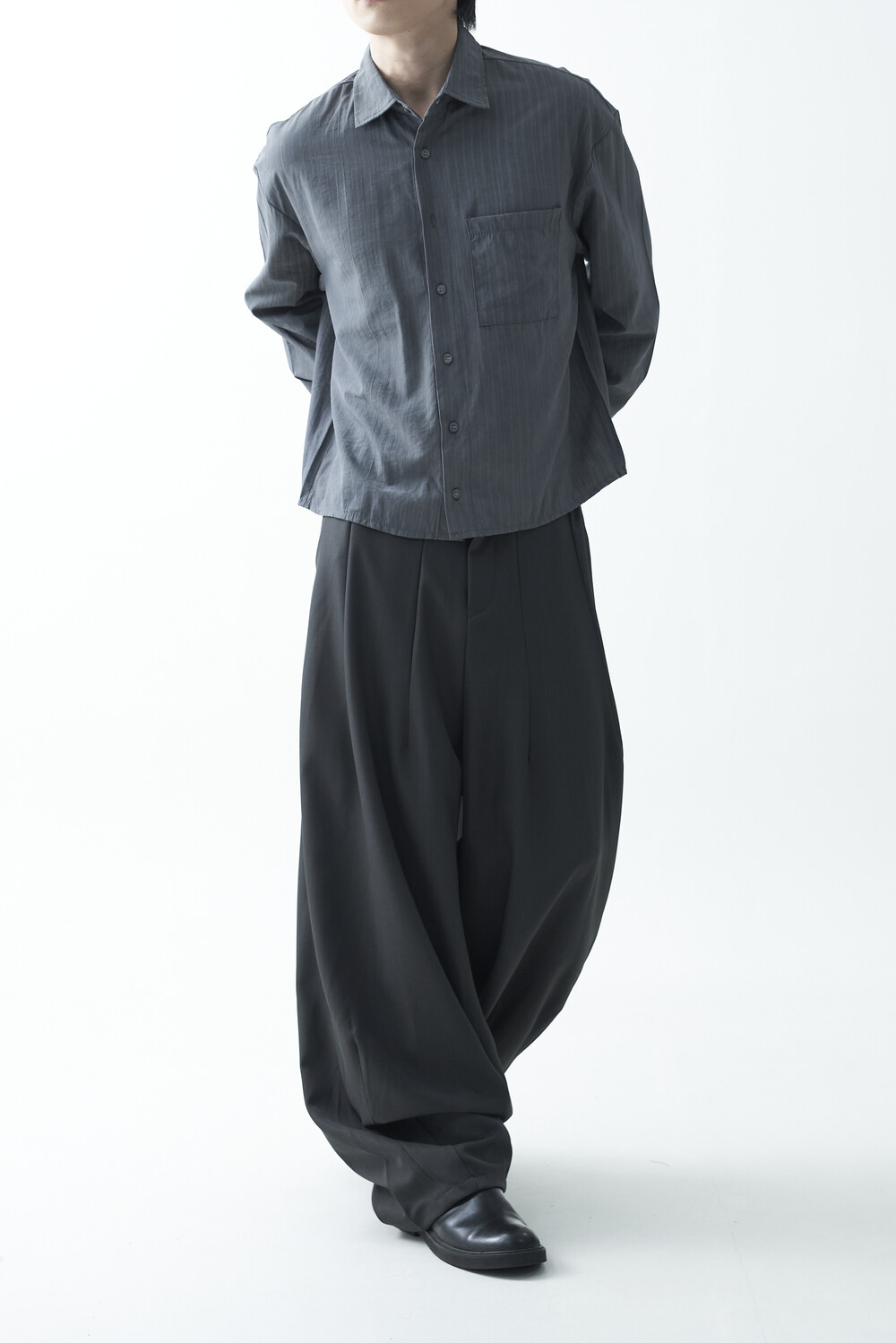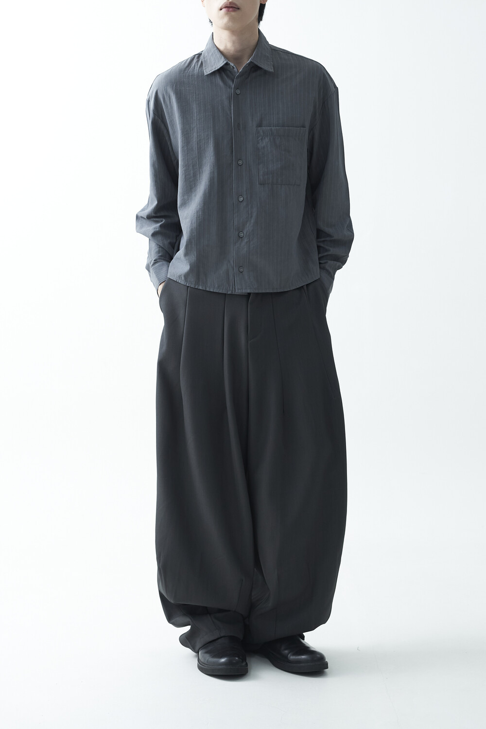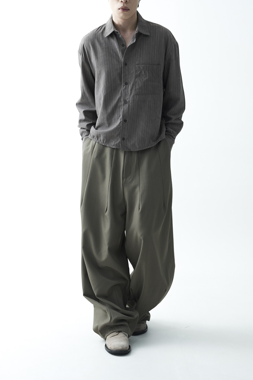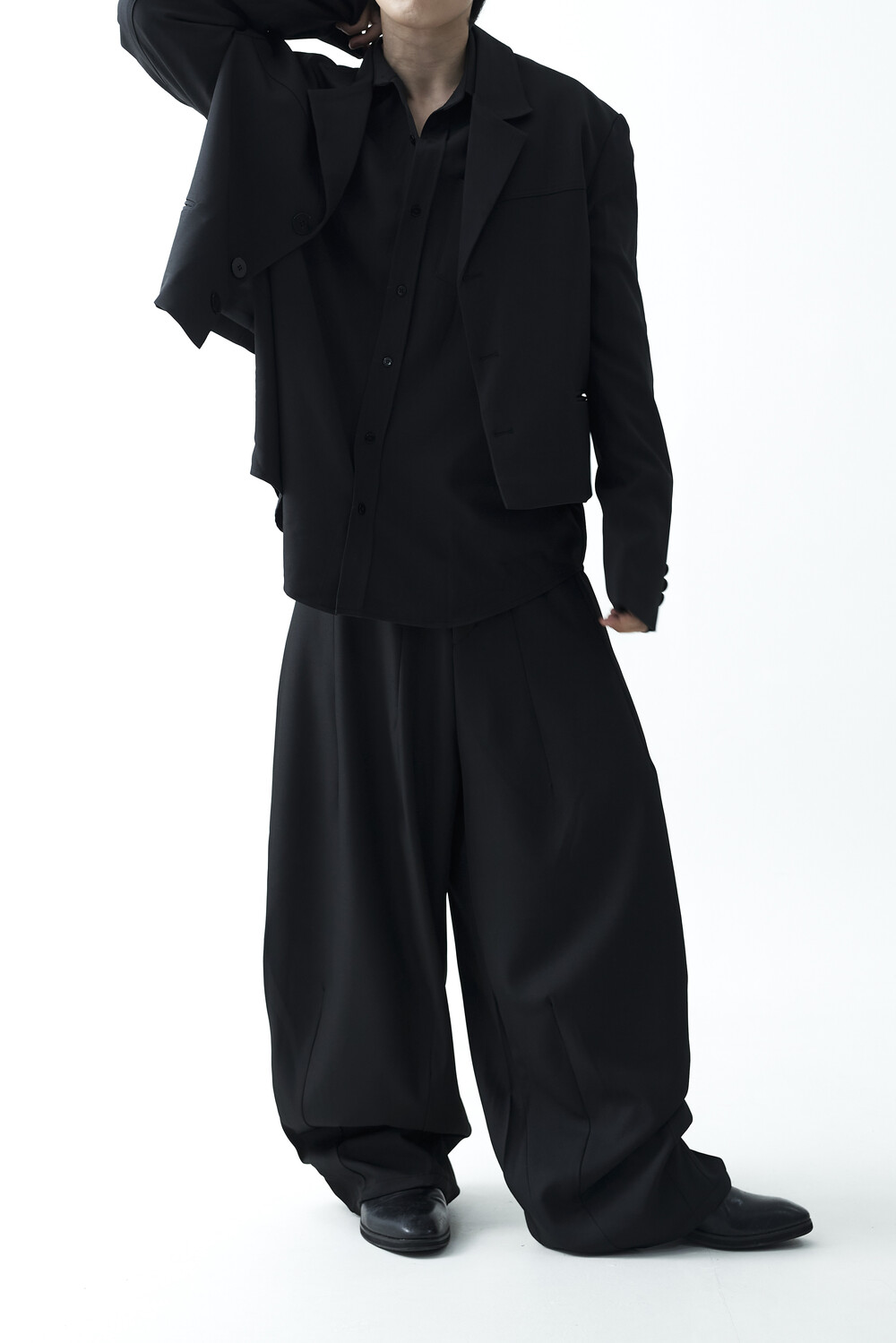 다트 투핀턱 디테일과 오버와이드 벌룬핏 실루엣으로 찰랑이는 연출이 돋보이는 슬렉스 제품입니다. 셔츠와 자켓으로 3피스 셋업 코디가 가능하며 미니멀하면서도 캐쥬얼한 무드 연출에 효과적입니다. 프리사이즈로 제작되어 허리뒷밴딩을 통해 편안하게 착용하실 수 있습니다.