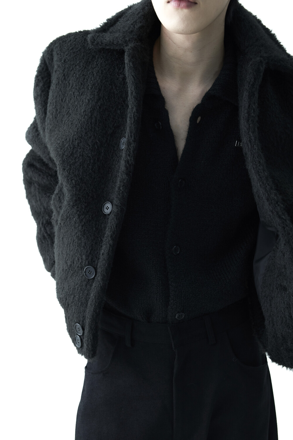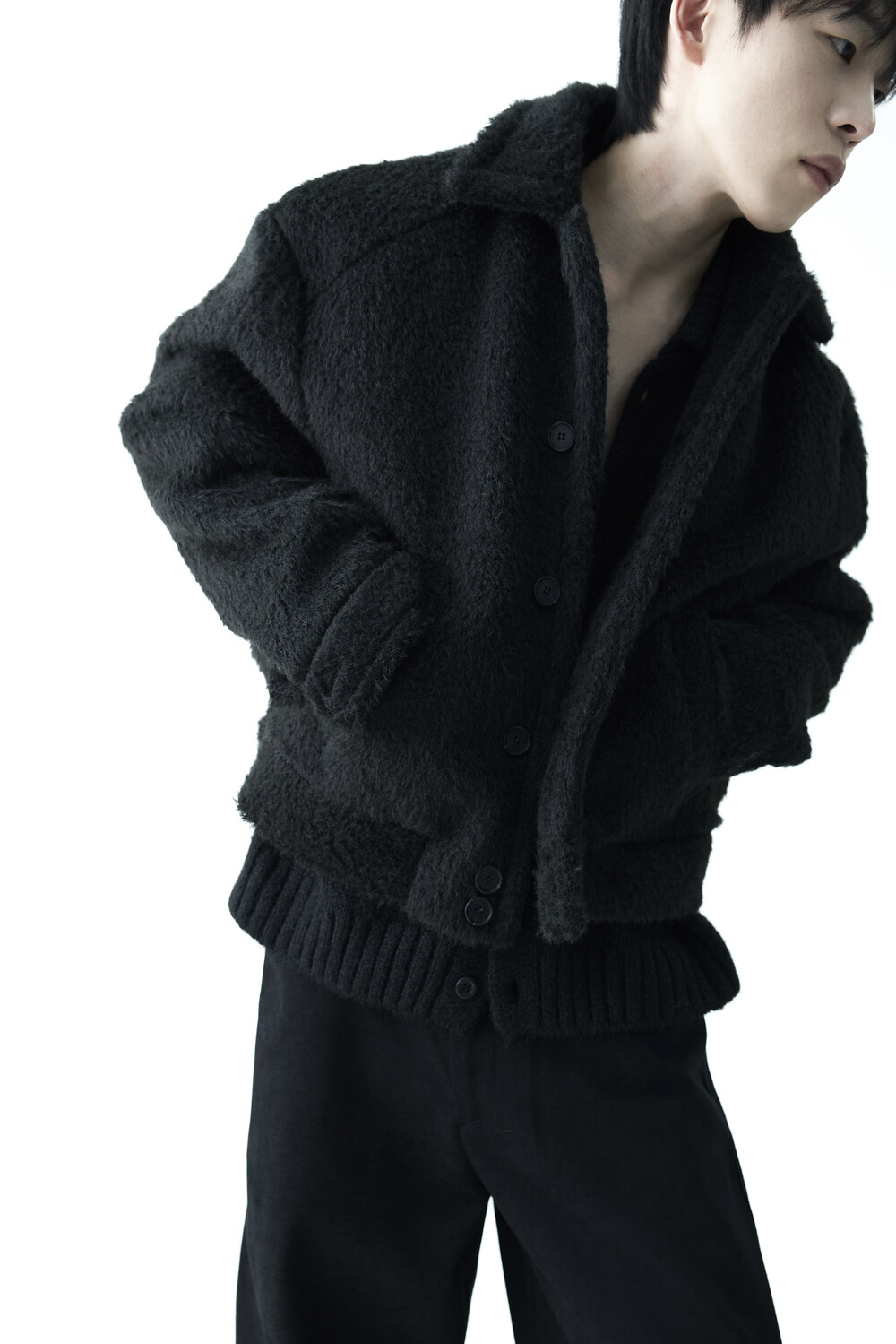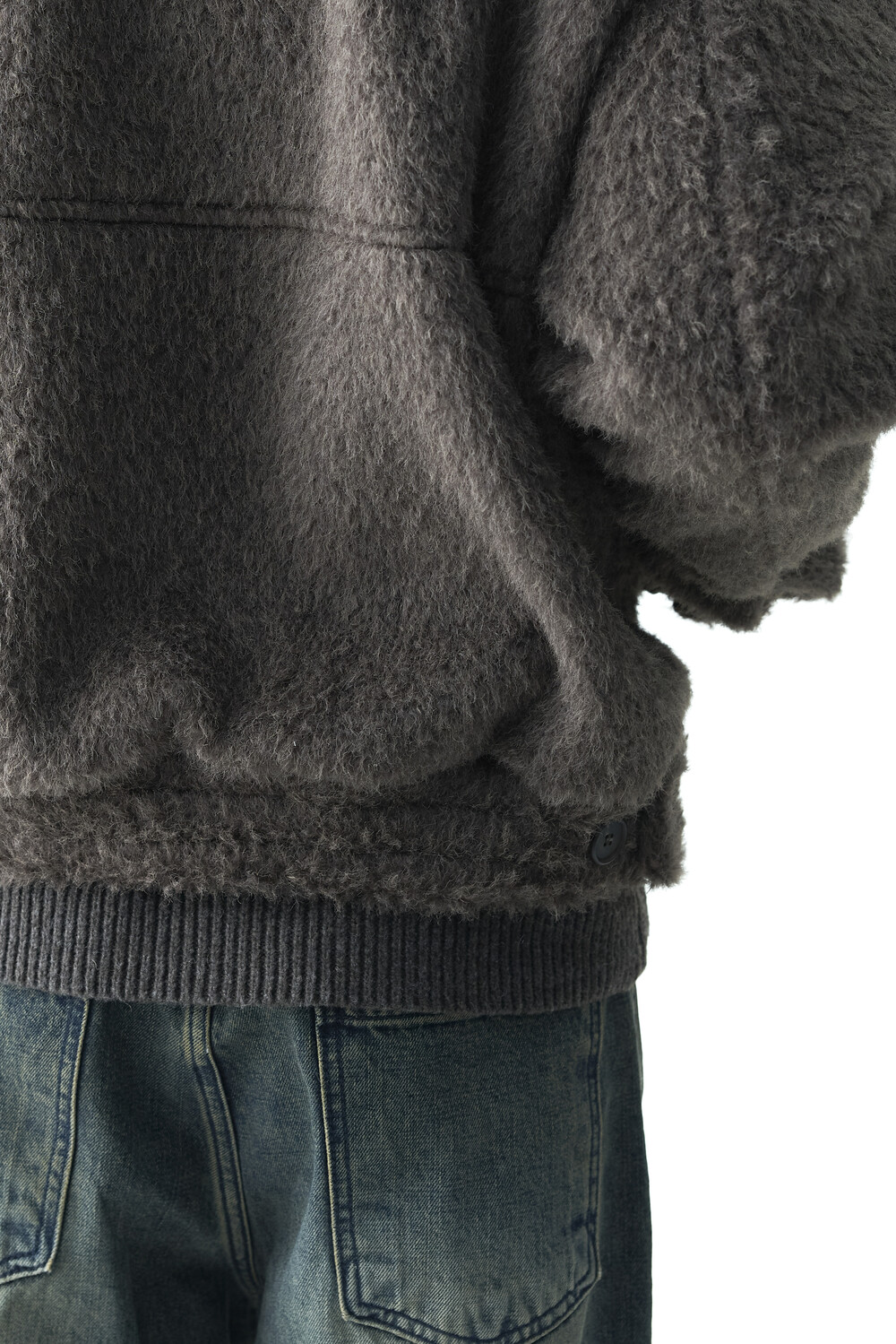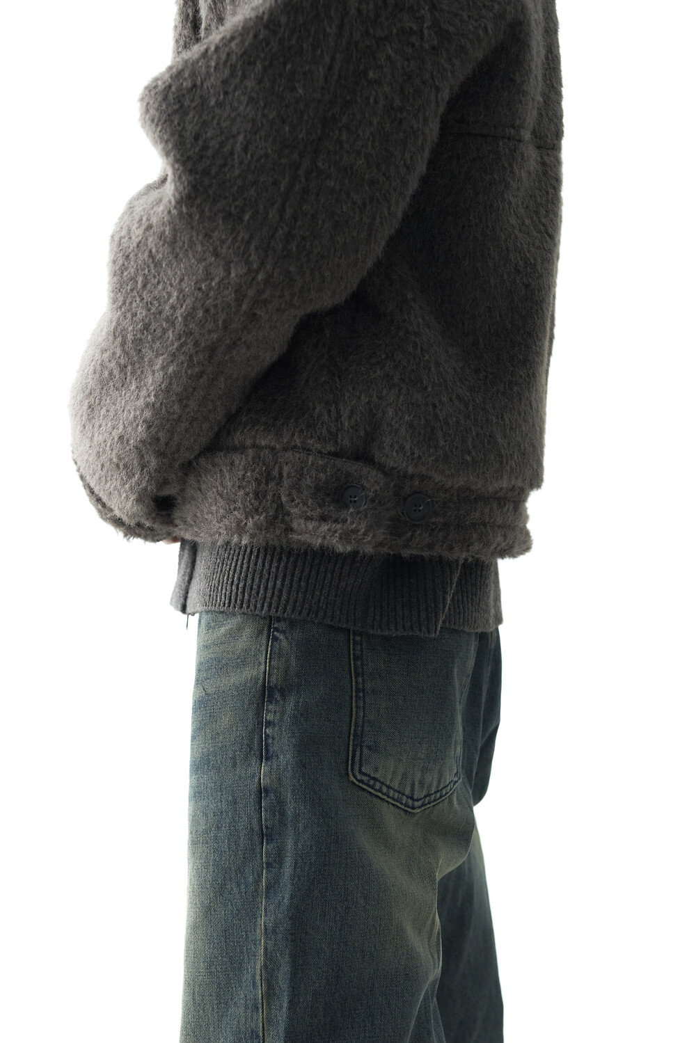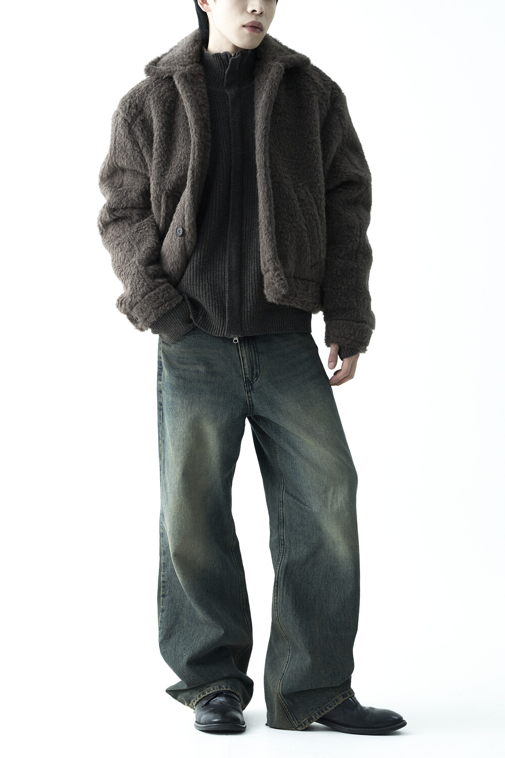 - 루즈한 카라 라인과 숏 크롭한 기장감으로 젠더리스한 아웃핏을 선사하는 헤어리 울 점퍼 제품입니다.