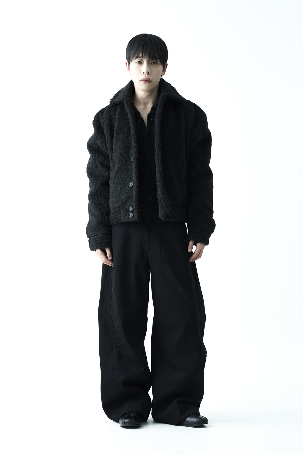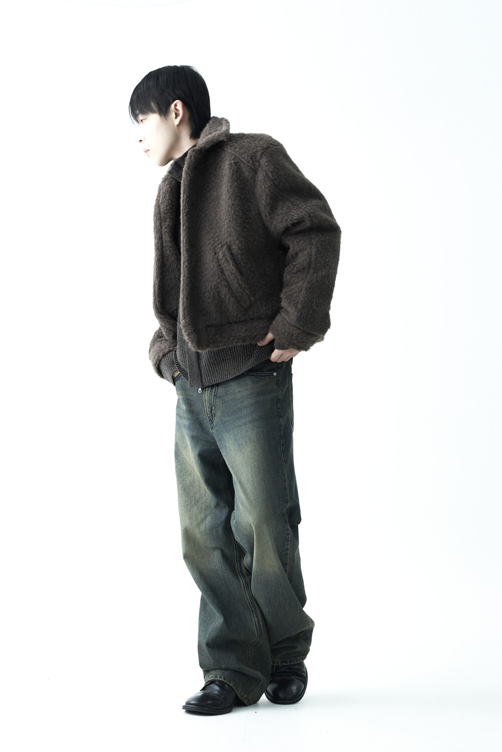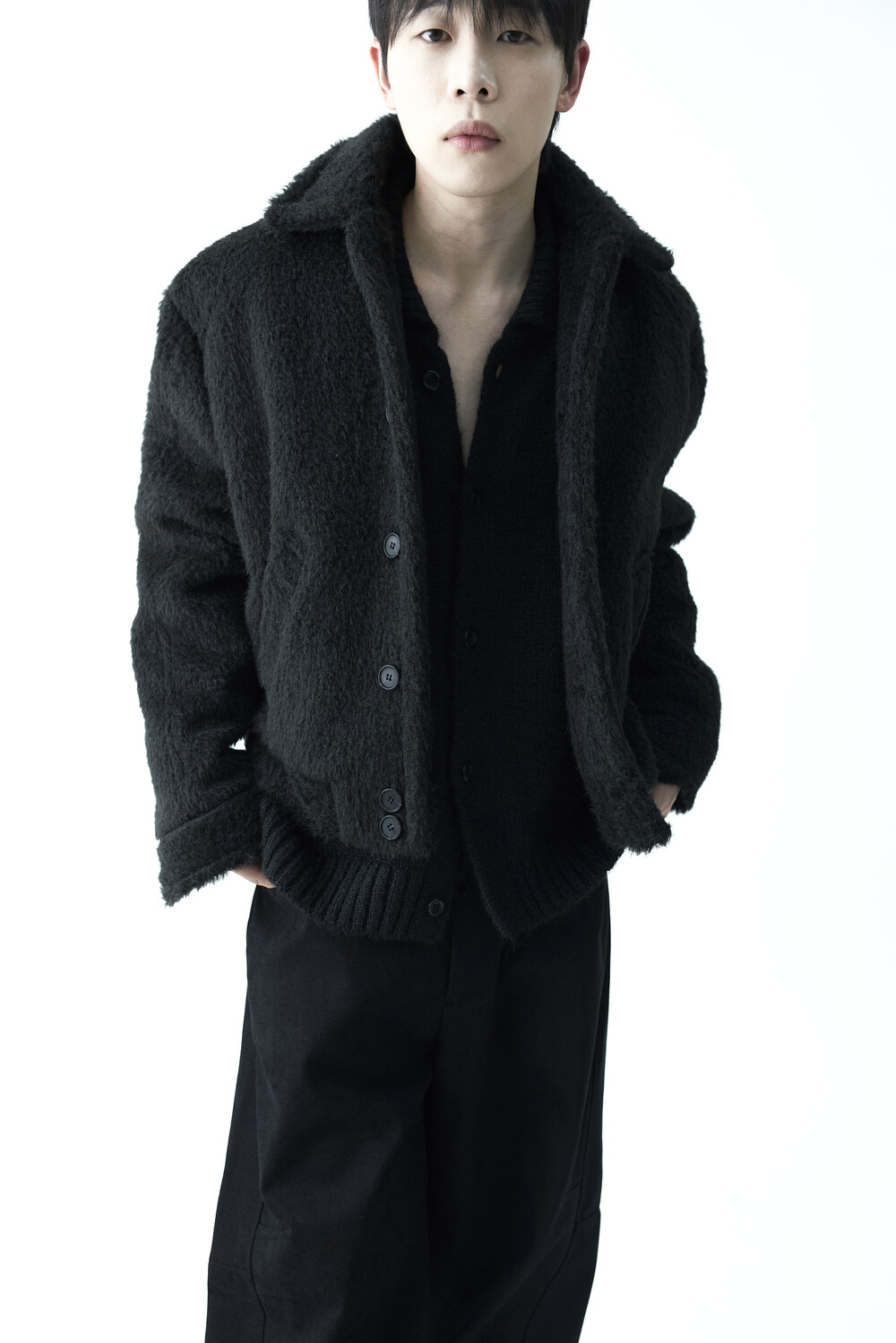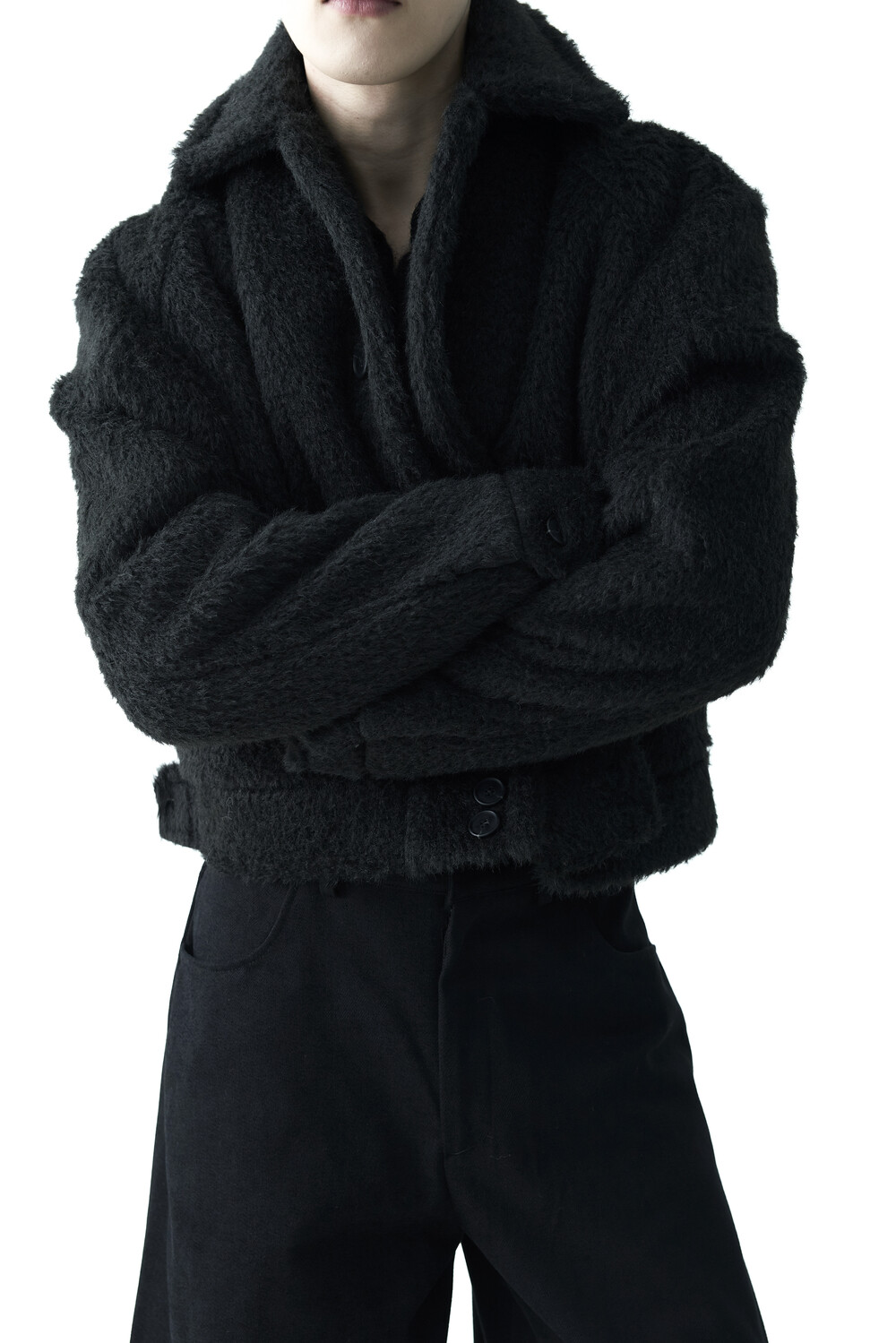 - 루즈한 카라 라인과 숏 크롭한 기장감으로 젠더리스한 아웃핏을 선사하는 헤어리 울 점퍼 제품입니다.