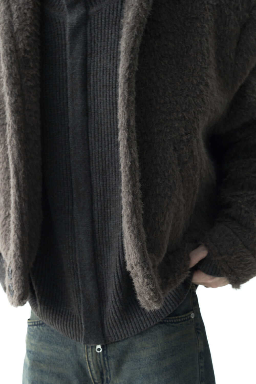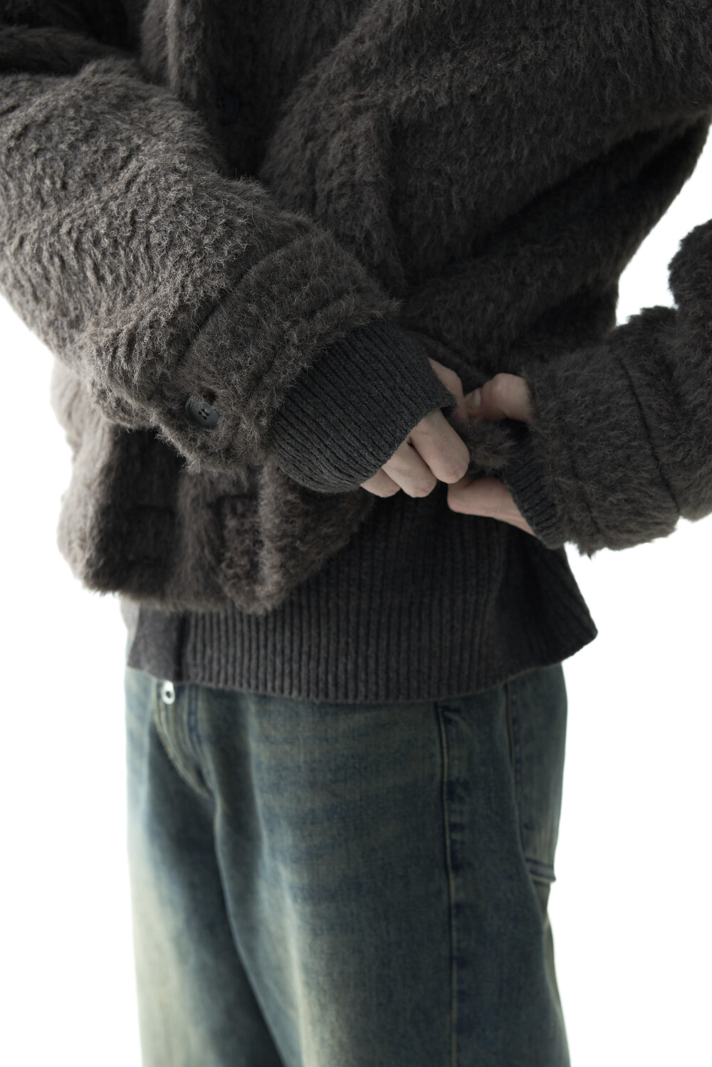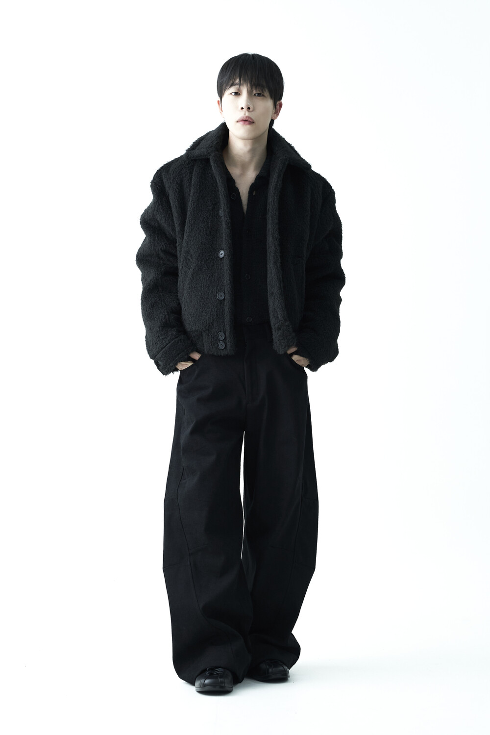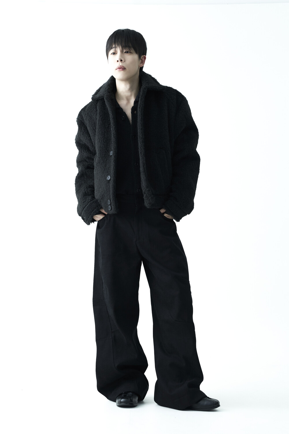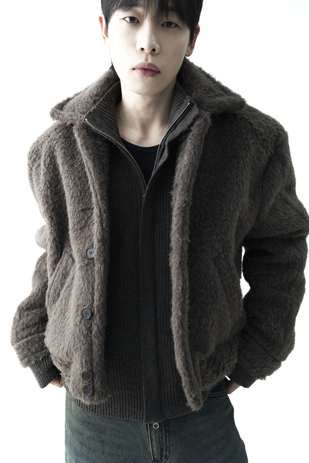 - 루즈한 카라 라인과 숏 크롭한 기장감으로 젠더리스한 아웃핏을 선사하는 헤어리 울 점퍼 제품입니다.