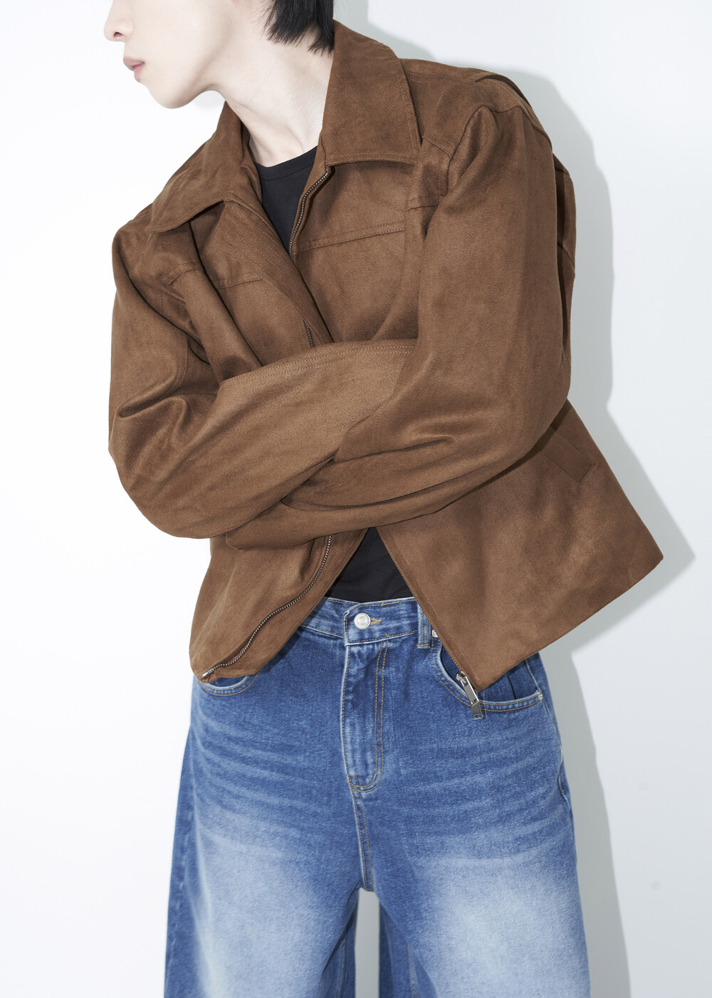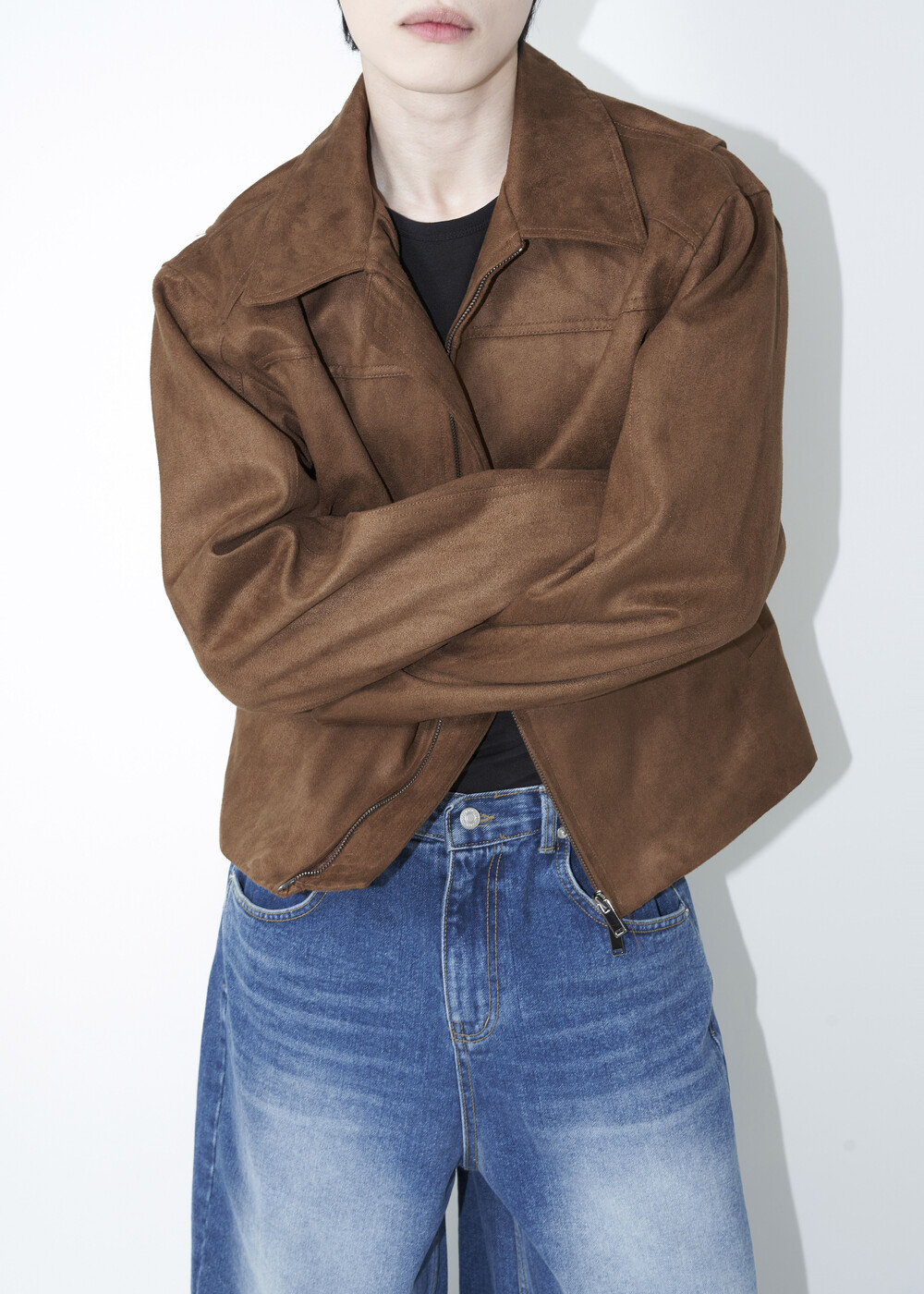 숄더 절개 라이닝 디테일과 크롭한 기장감으로 구성된 스웨이드 아우터 제품으로 탄탄한 착용감이 매력적인 제품입니다.