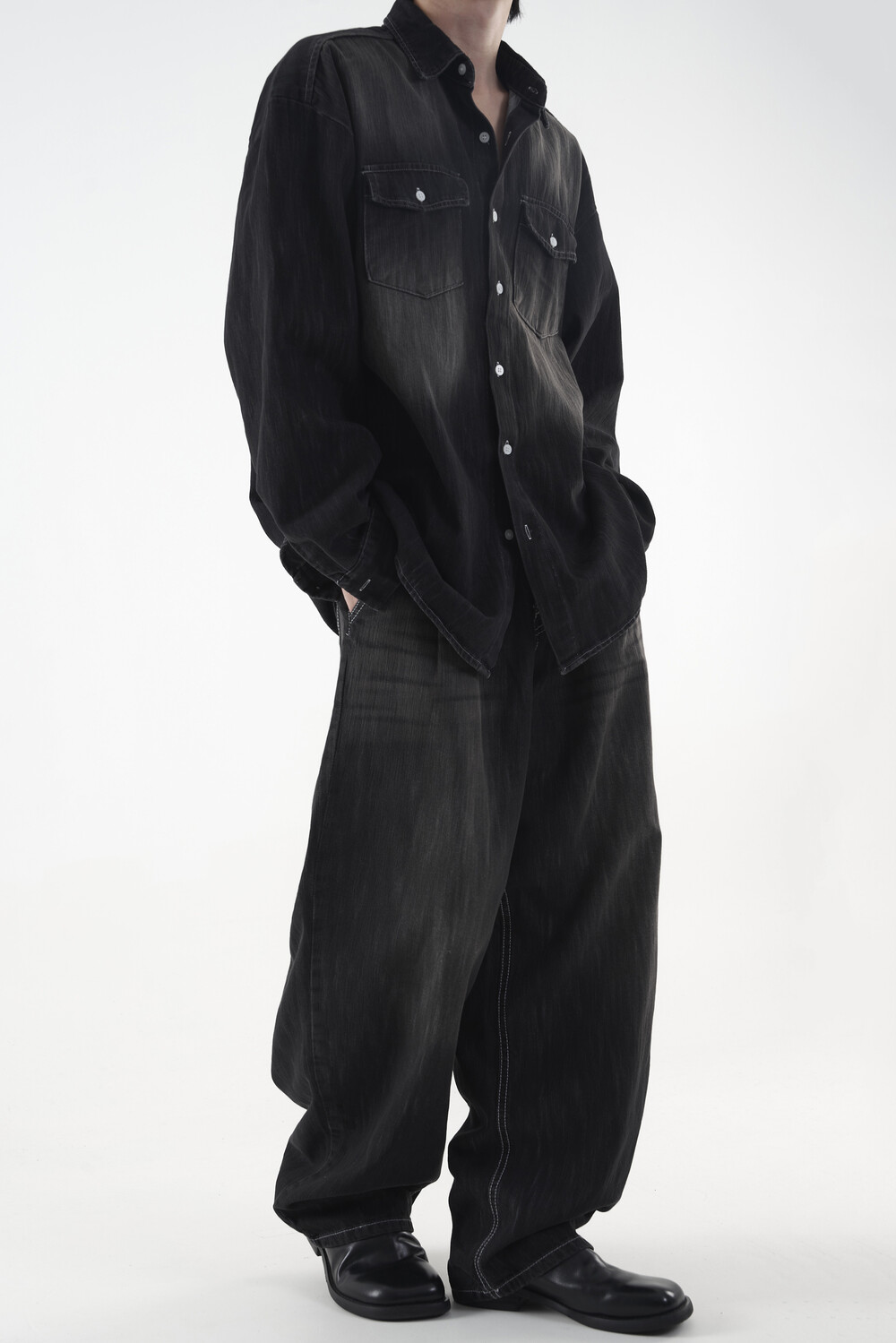 - 과하지 않은 와이드 실루엣 연출
