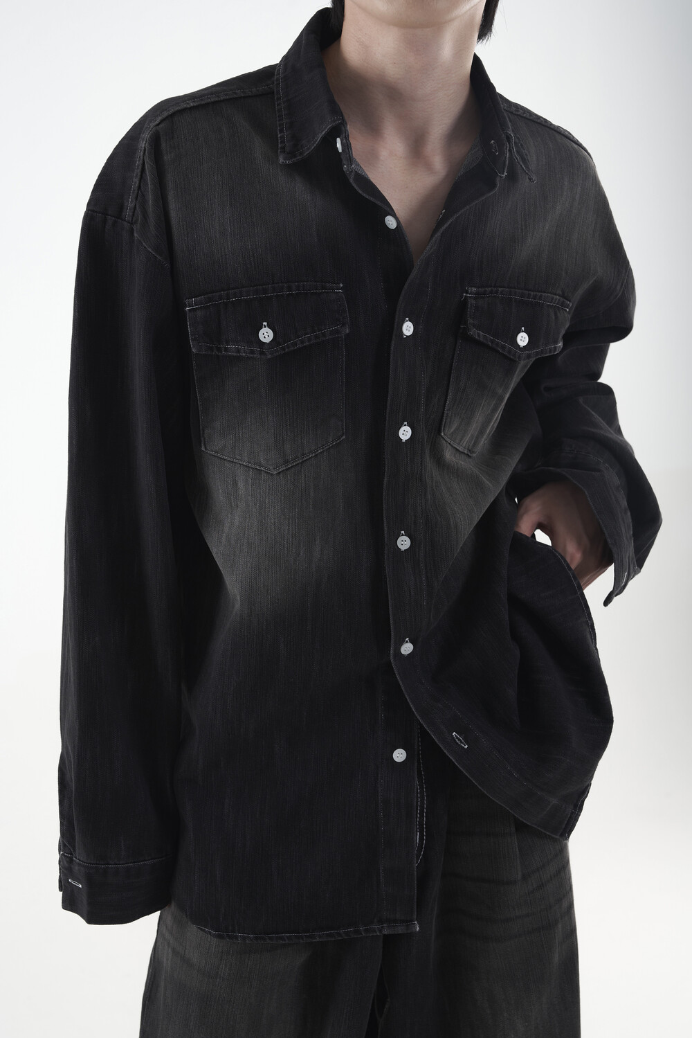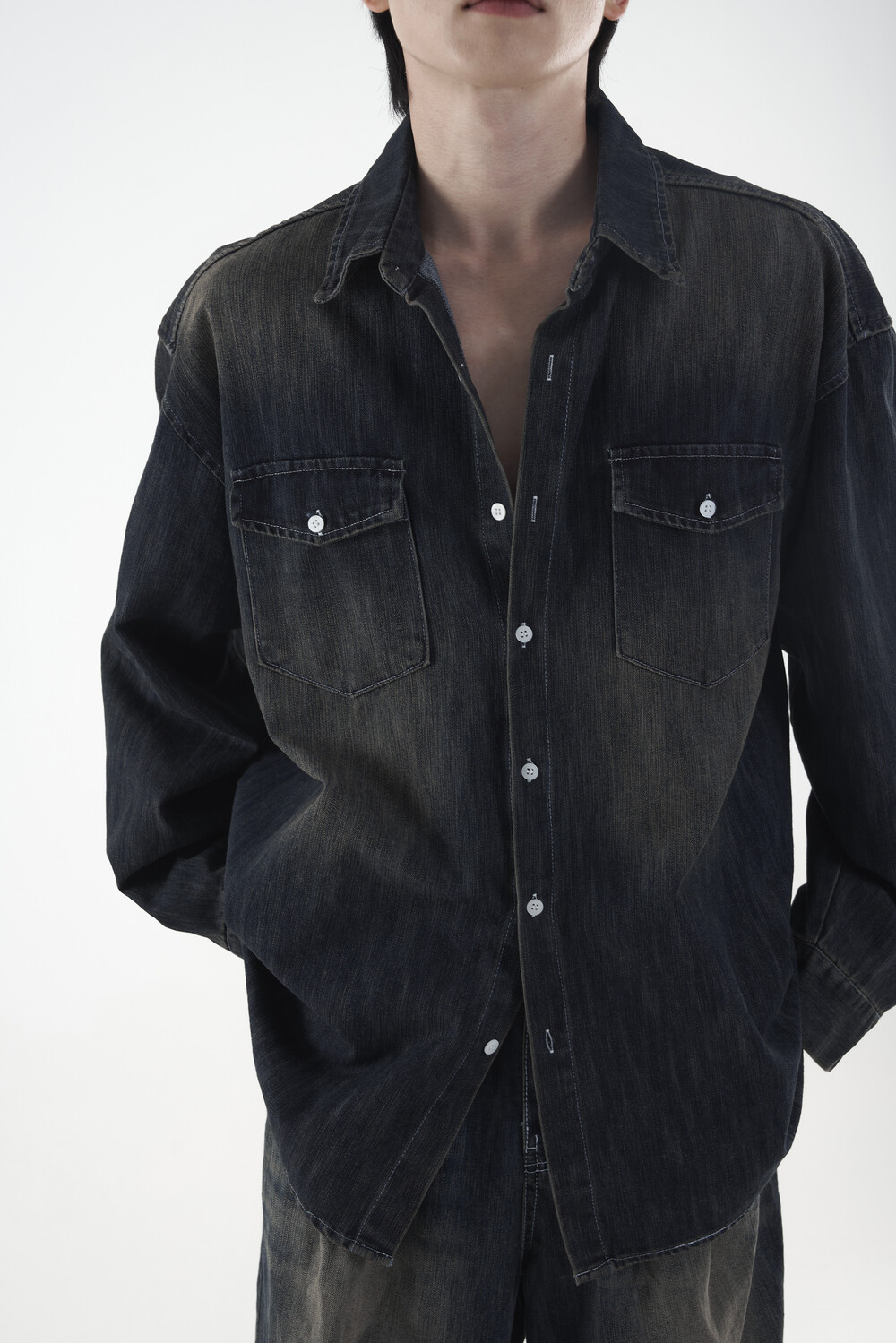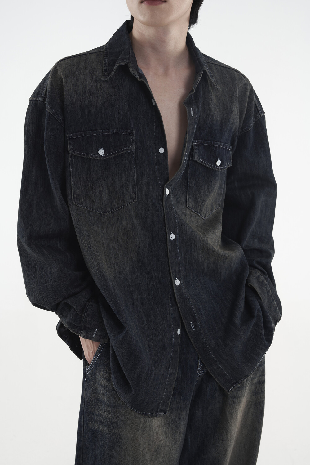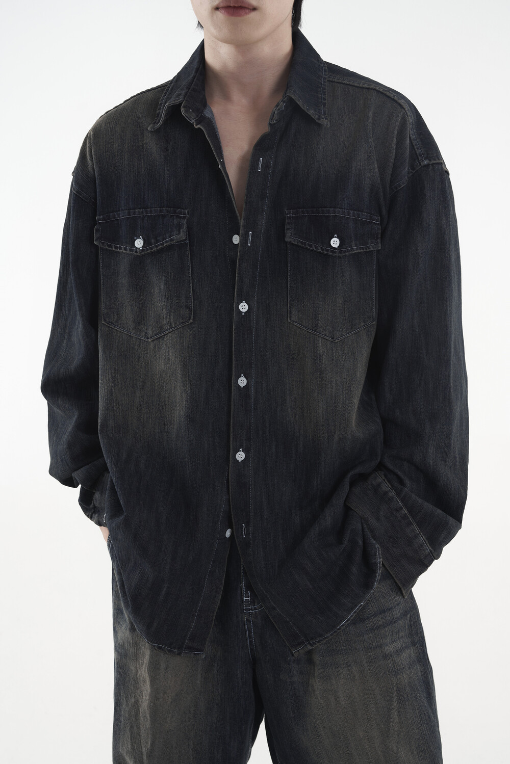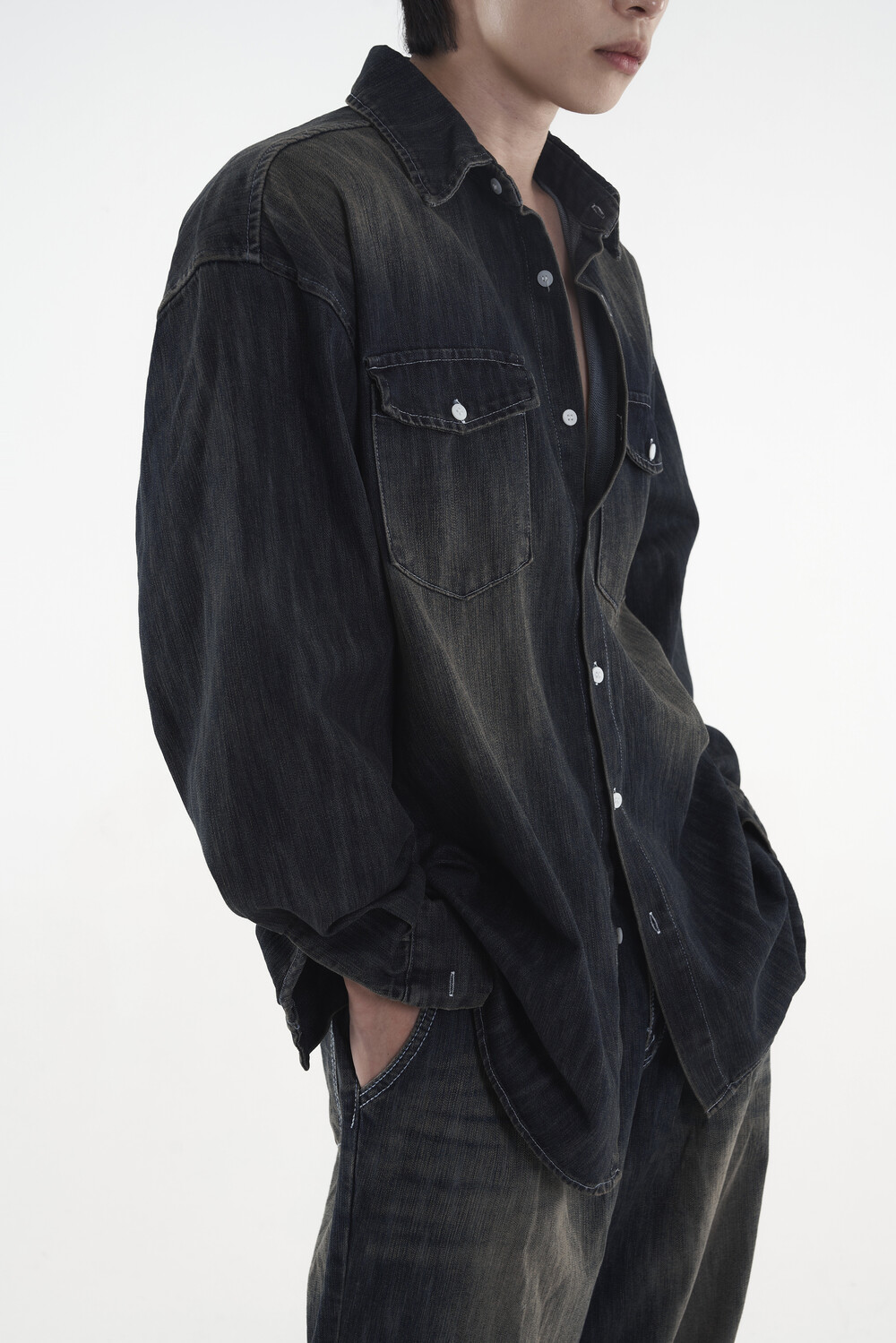슬랍 코튼 질감의 워싱 데님 셔츠 제품