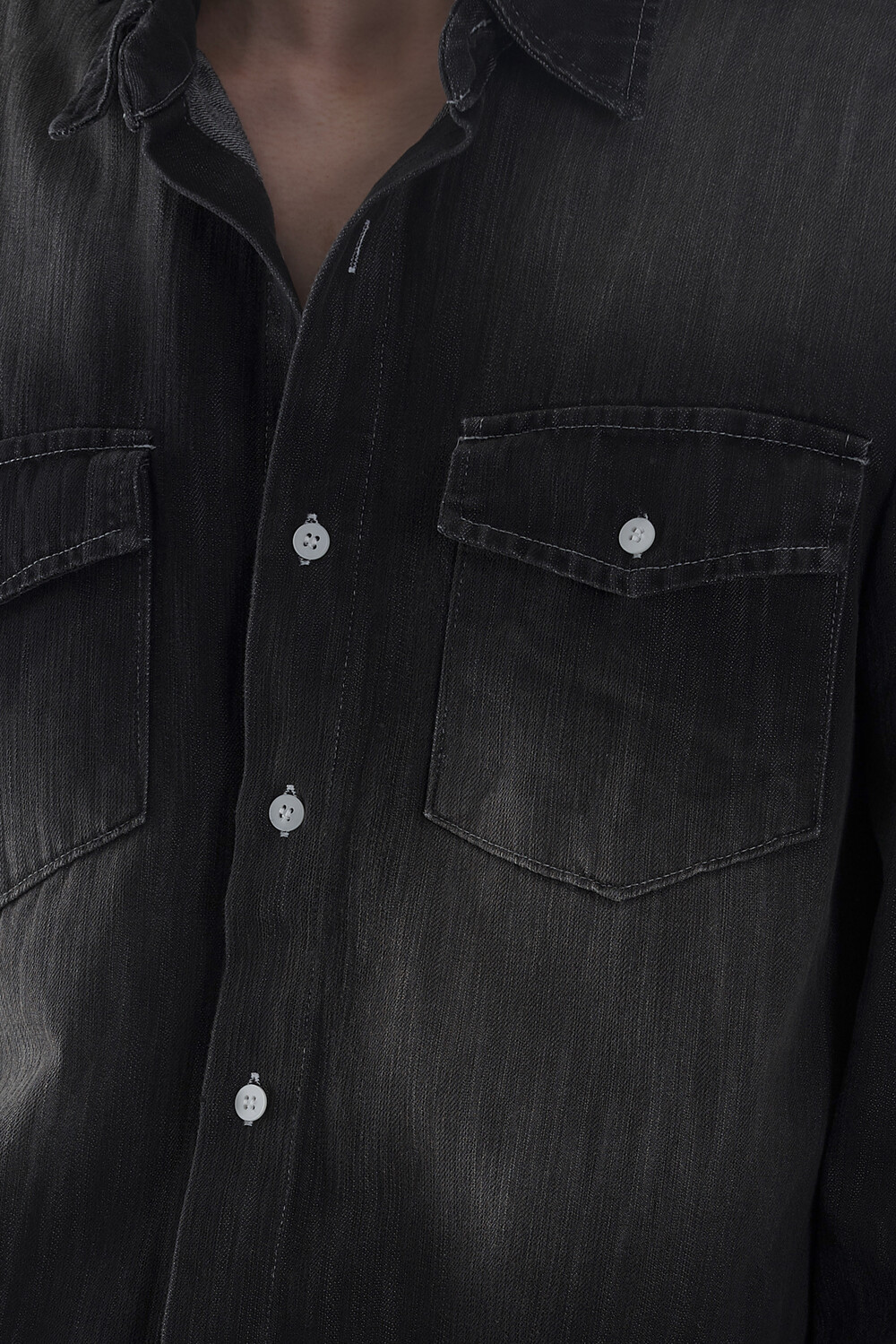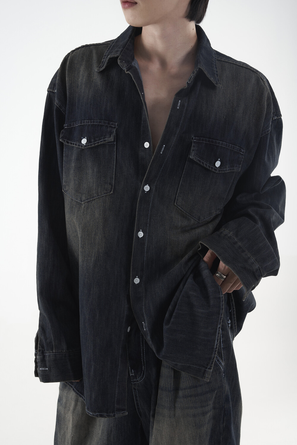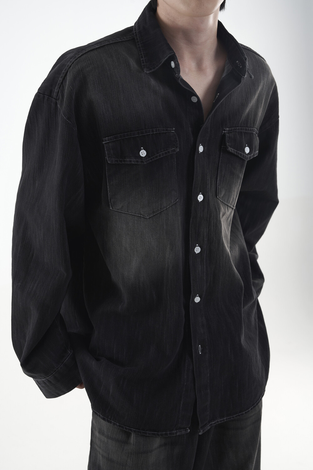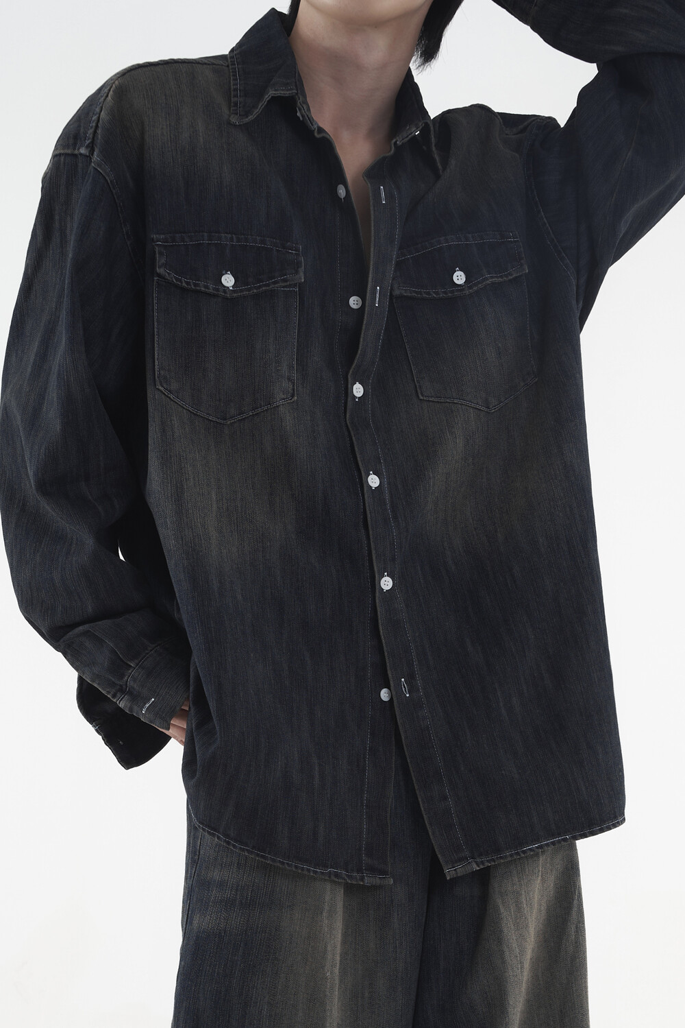 슬랍 코튼 질감의 워싱 데님 셔츠 제품
