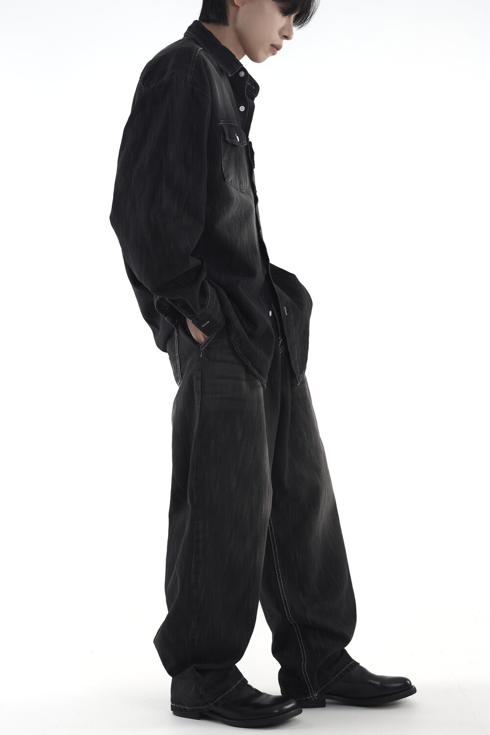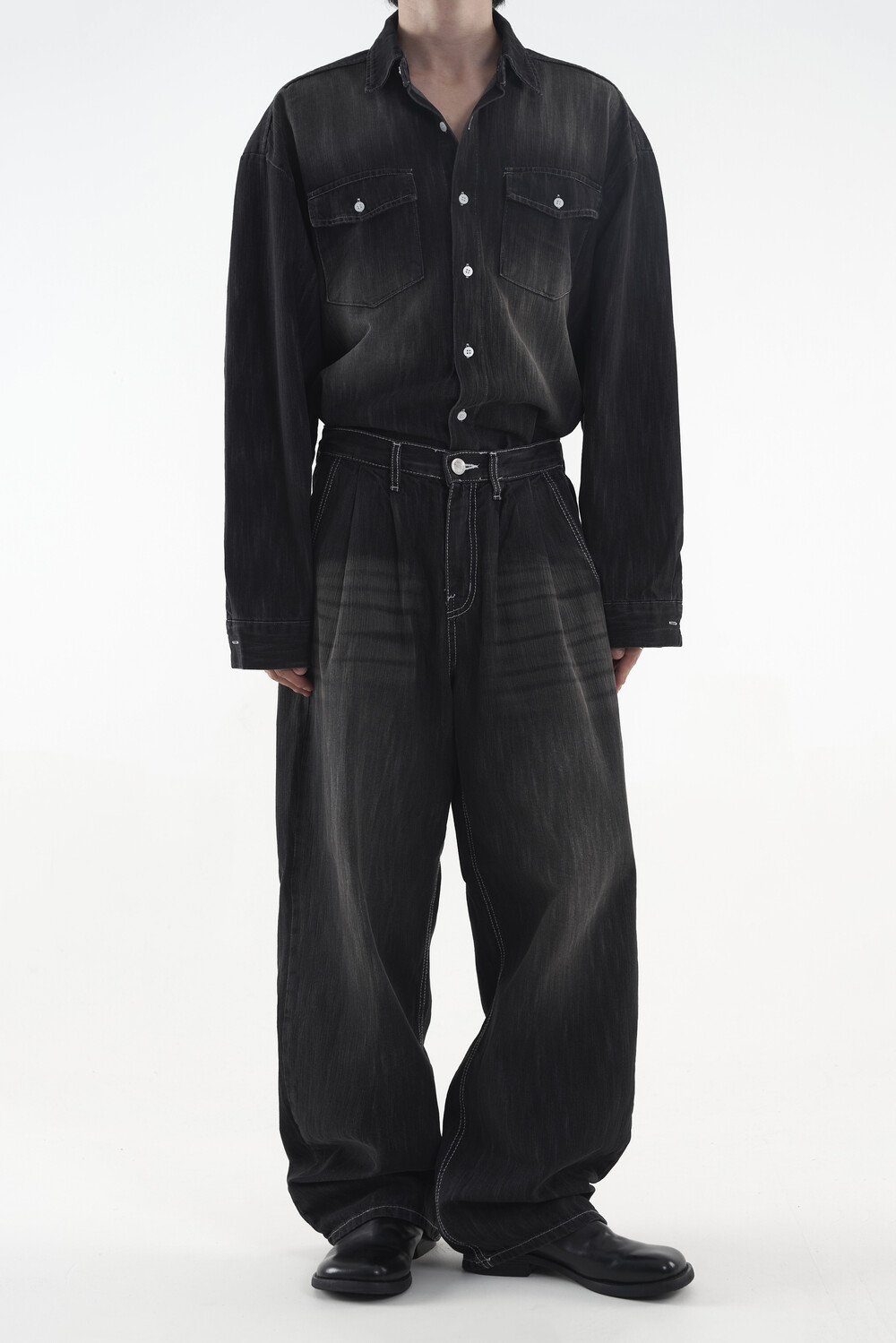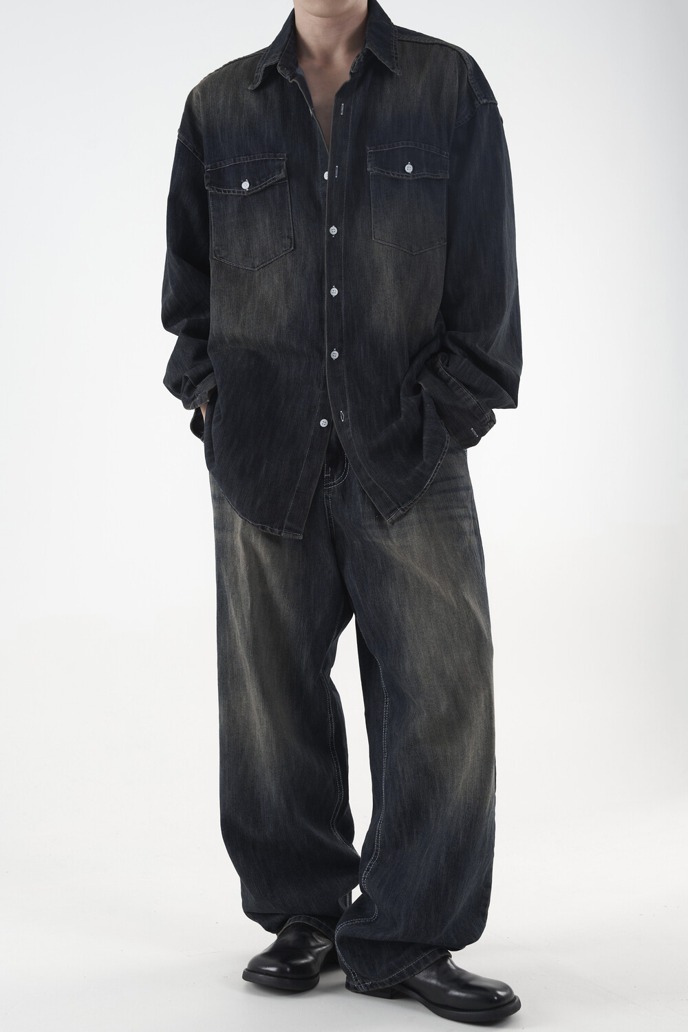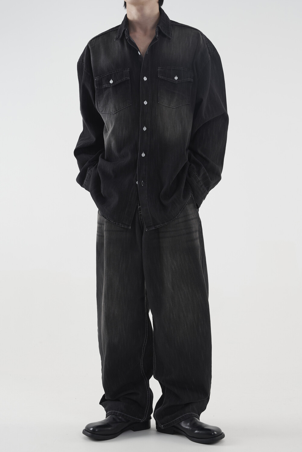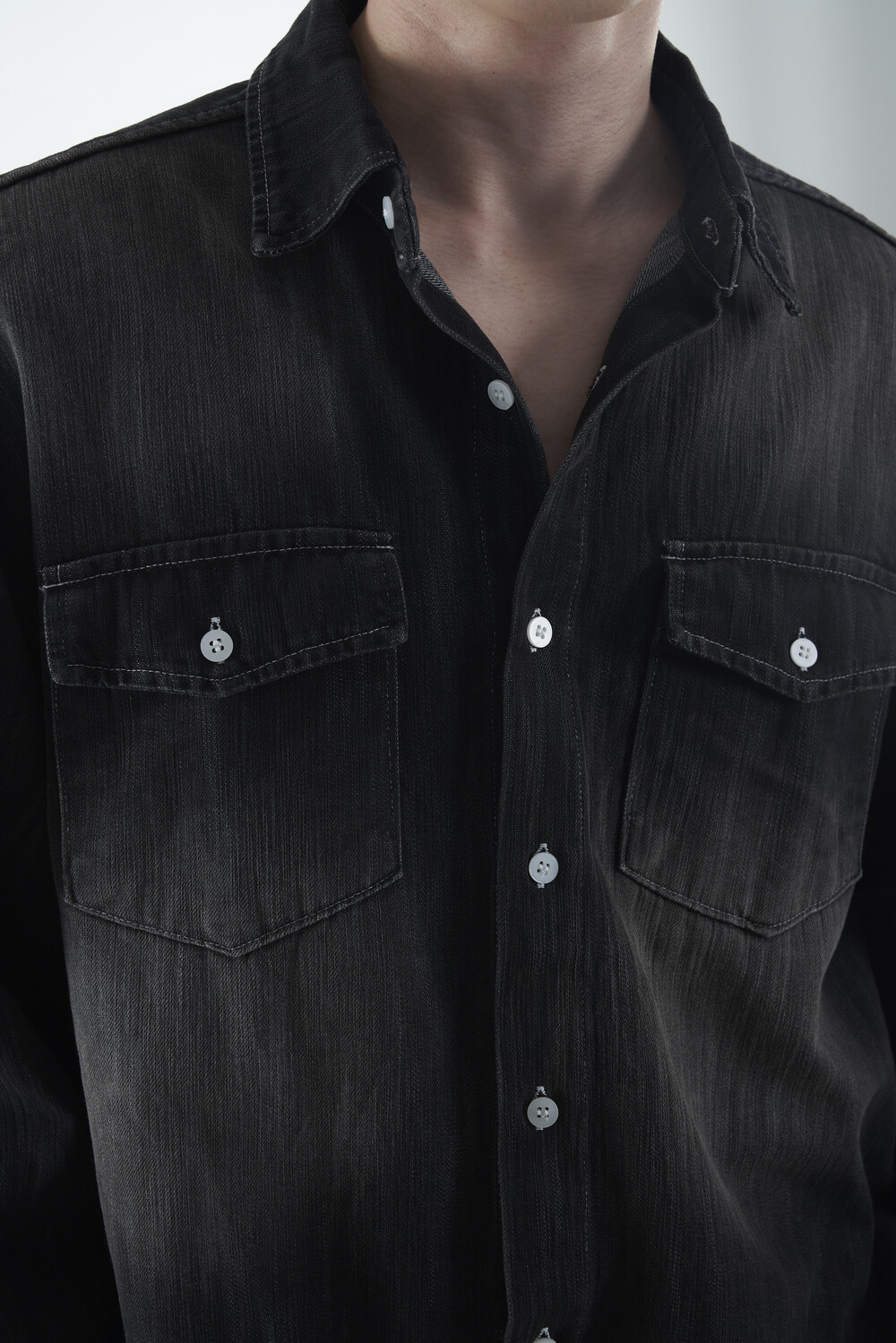슬랍 코튼 질감의 워싱 데님 셔츠 제품