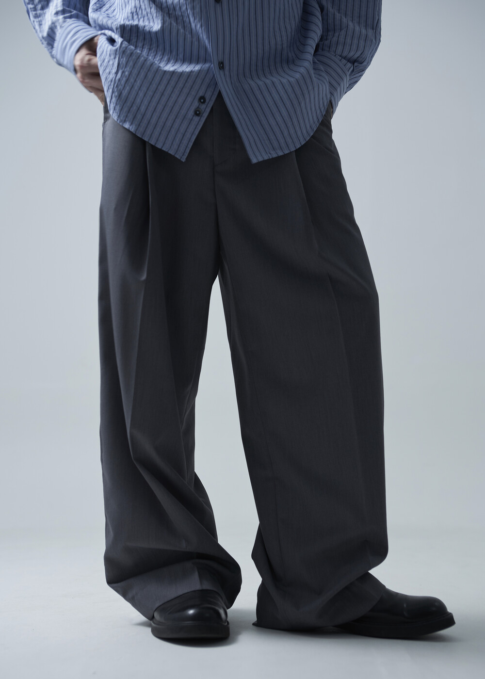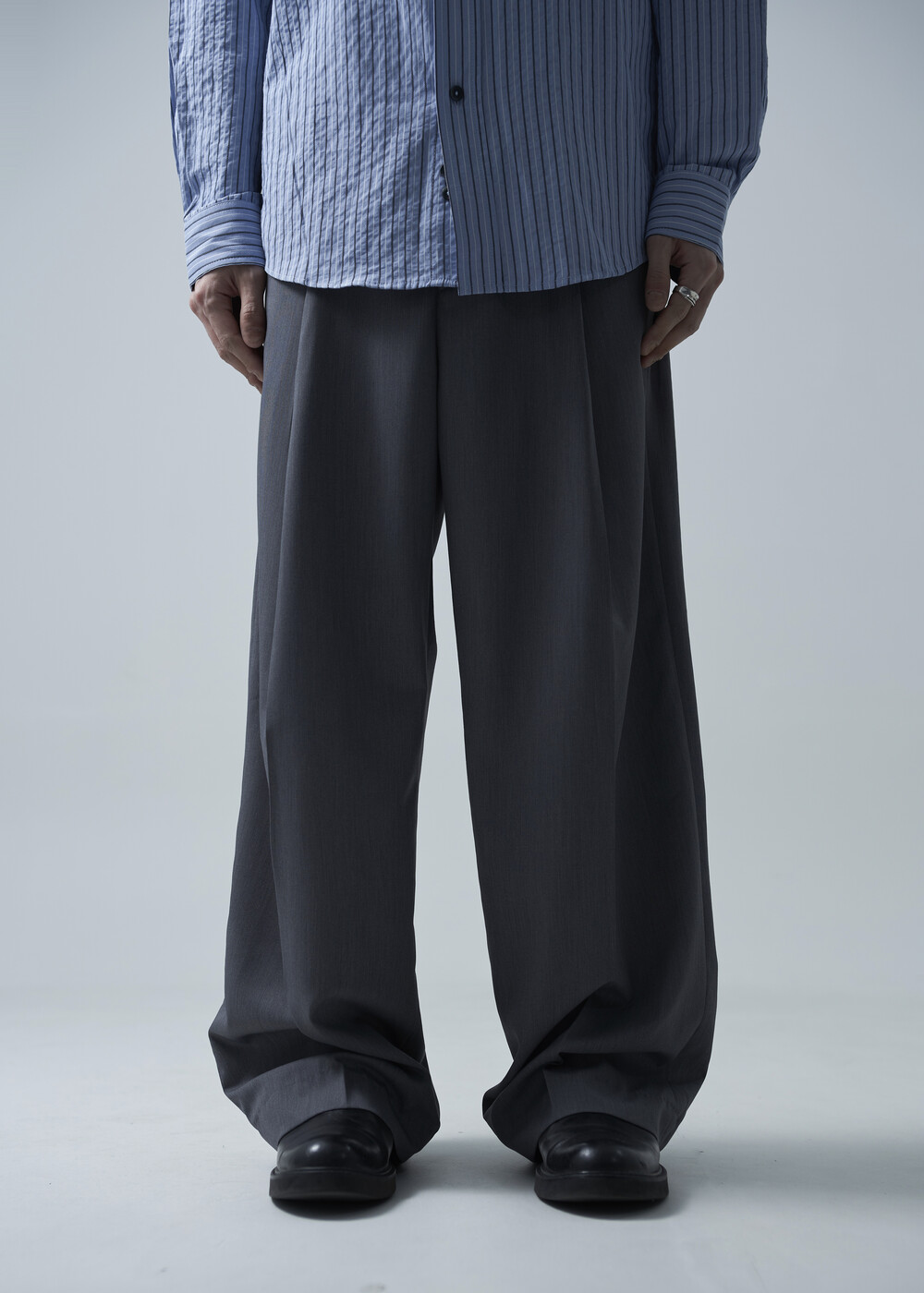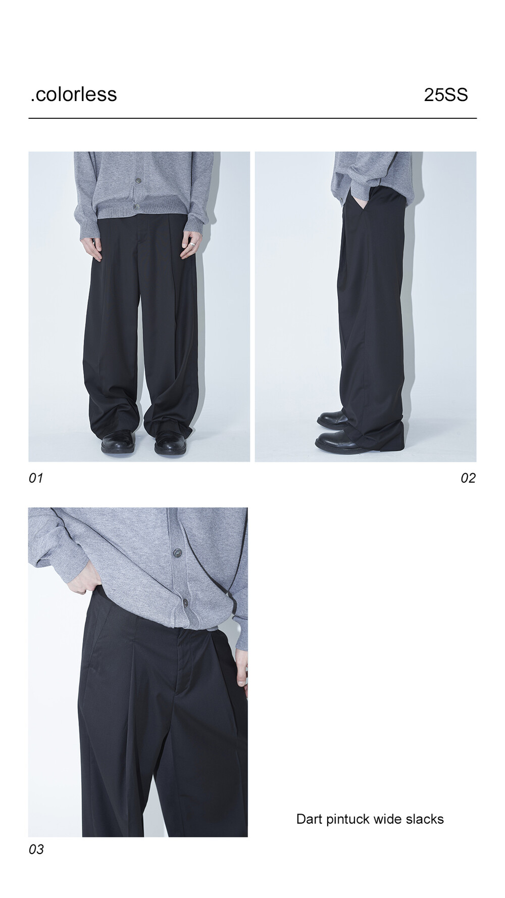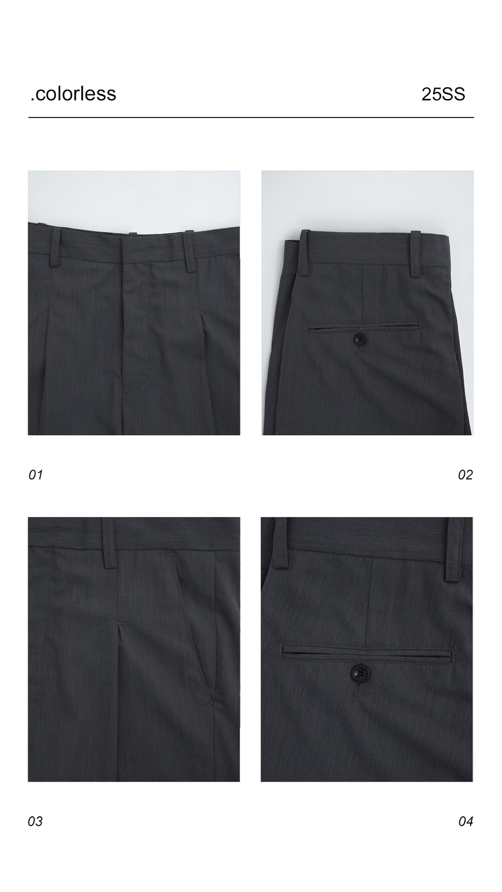 시즌에 알맞게 소프트한 터치감으로 가볍게 착용하기 좋은 슬렉스 제품입니다. 레이온 소재의 함유로 고급스러운 광택감이 매력적이며, 핀턱 윗단을 다트형식으로 디테일 작업하여 내츄럴하게 찰랑이는 실루엣이 돋보이는 제품입니다.
