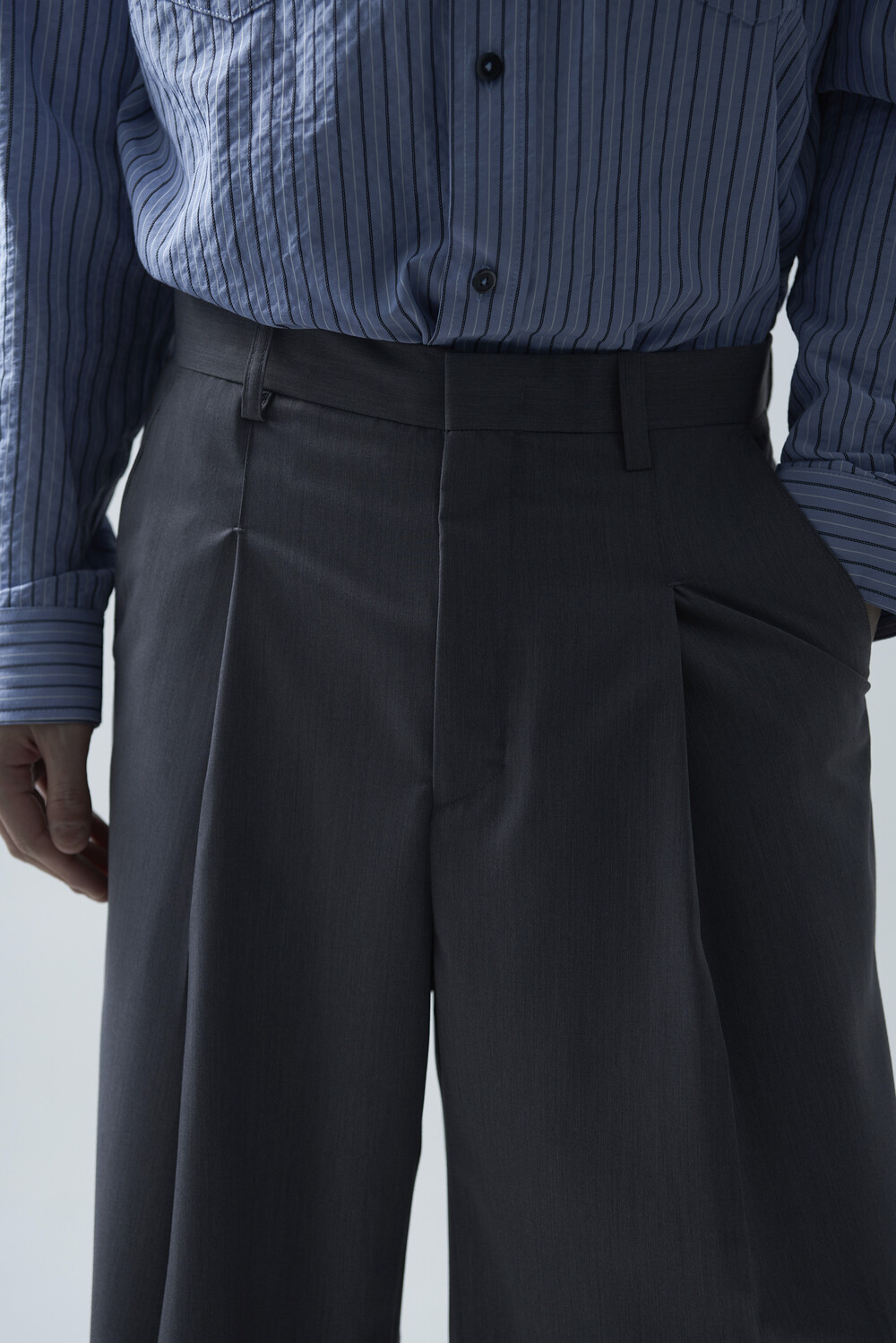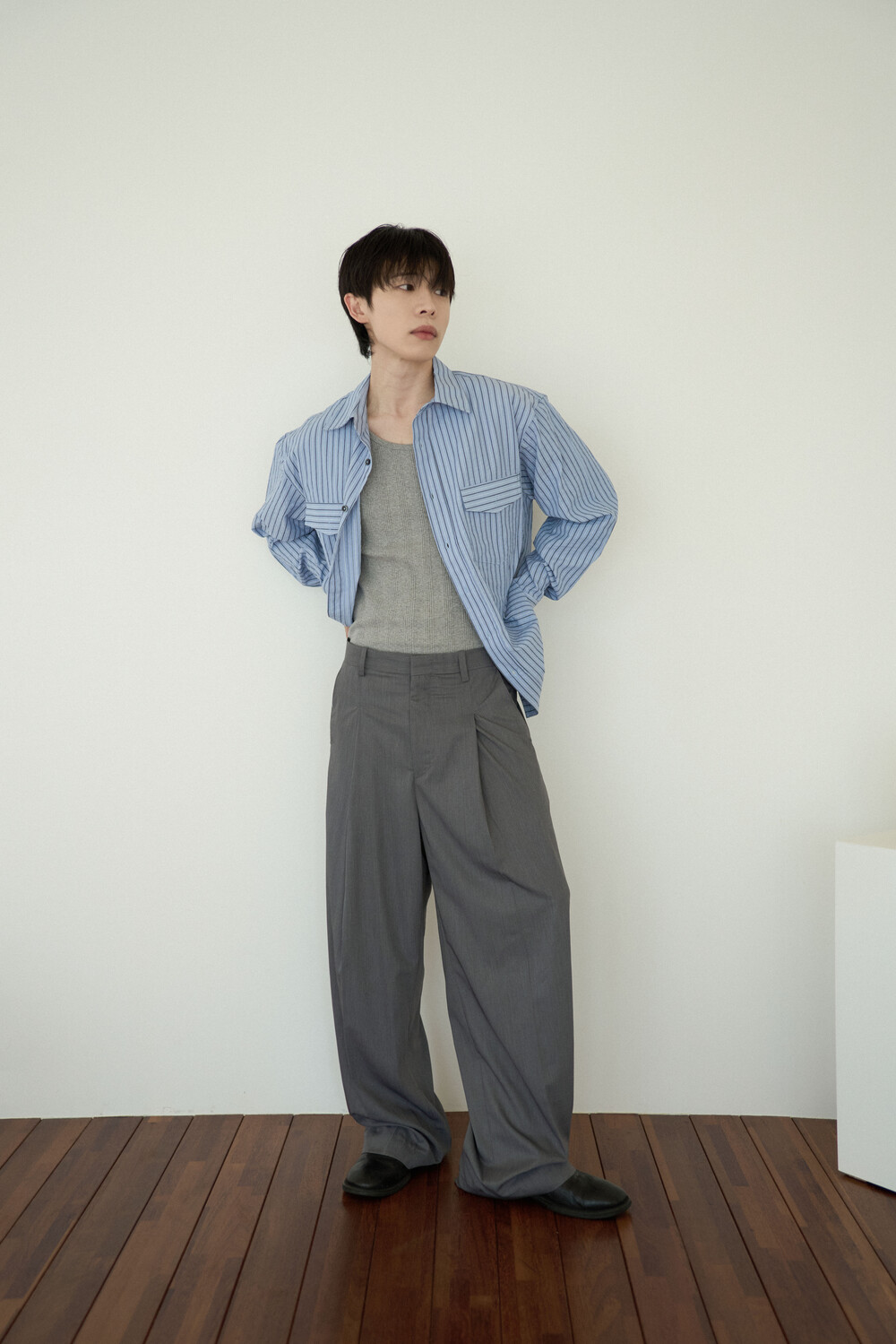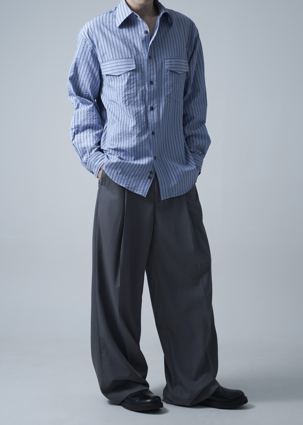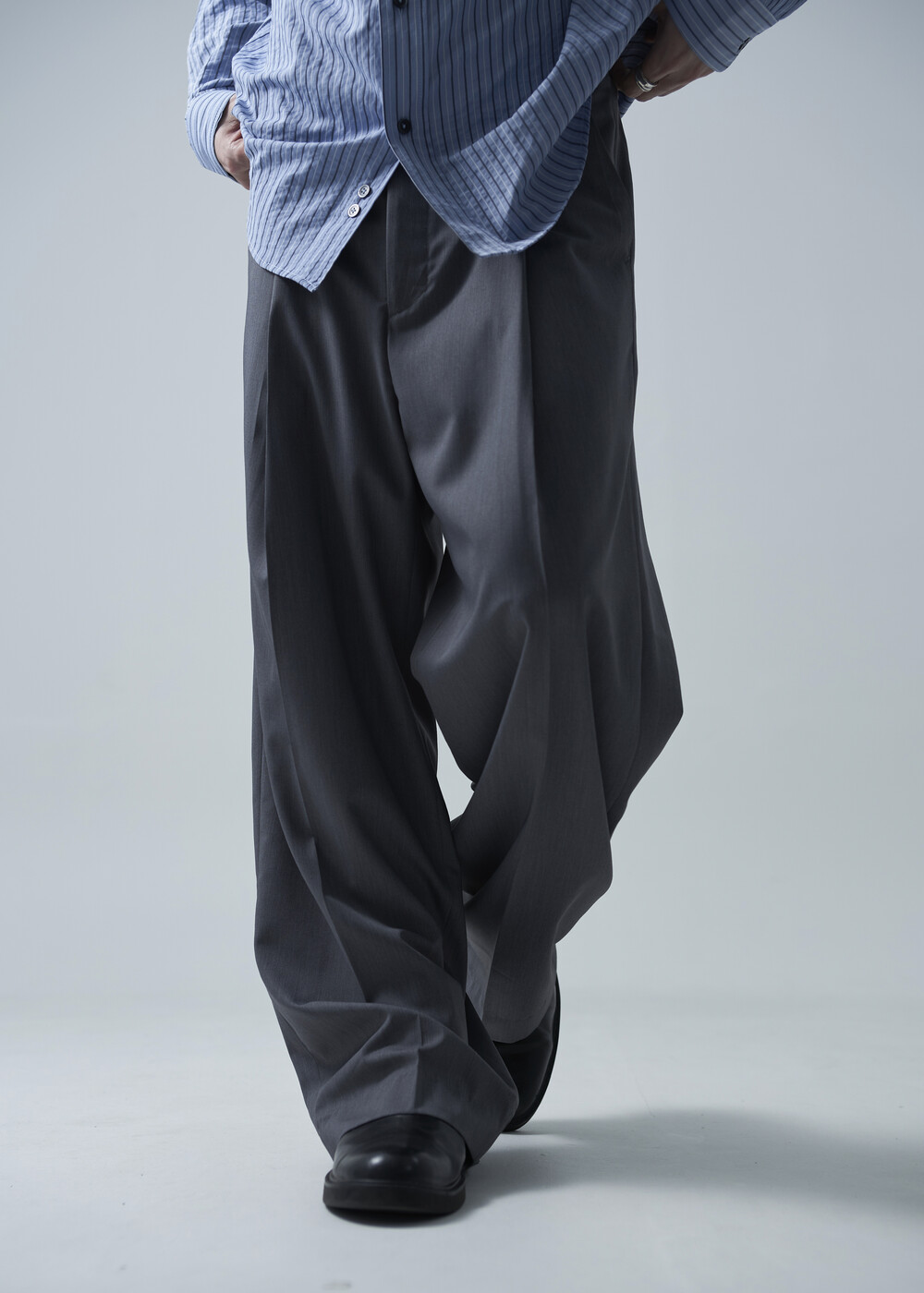 시즌에 알맞게 소프트한 터치감으로 가볍게 착용하기 좋은 슬렉스 제품입니다. 레이온 소재의 함유로 고급스러운 광택감이 매력적이며, 핀턱 윗단을 다트형식으로 디테일 작업하여 내츄럴하게 찰랑이는 실루엣이 돋보이는 제품입니다.