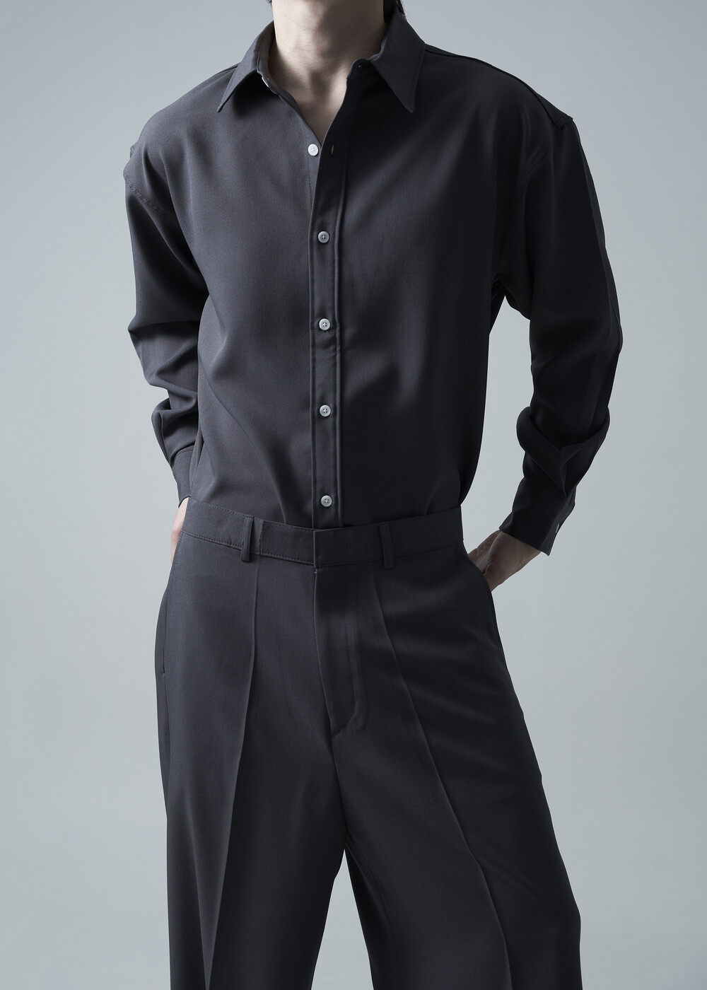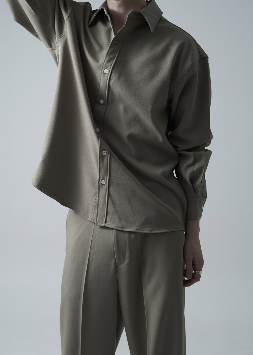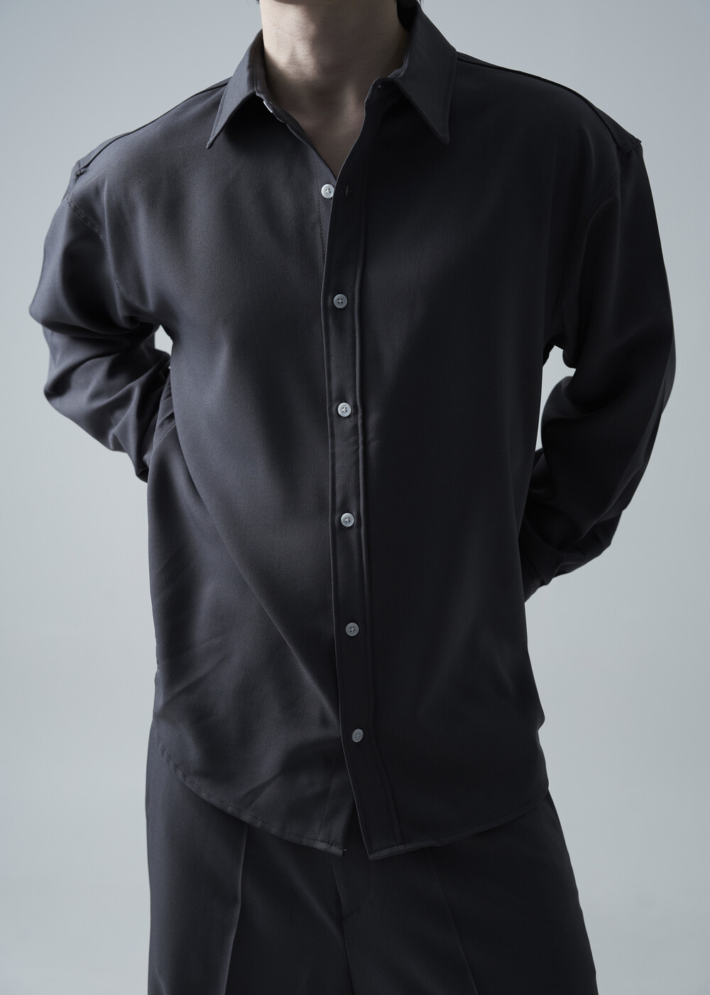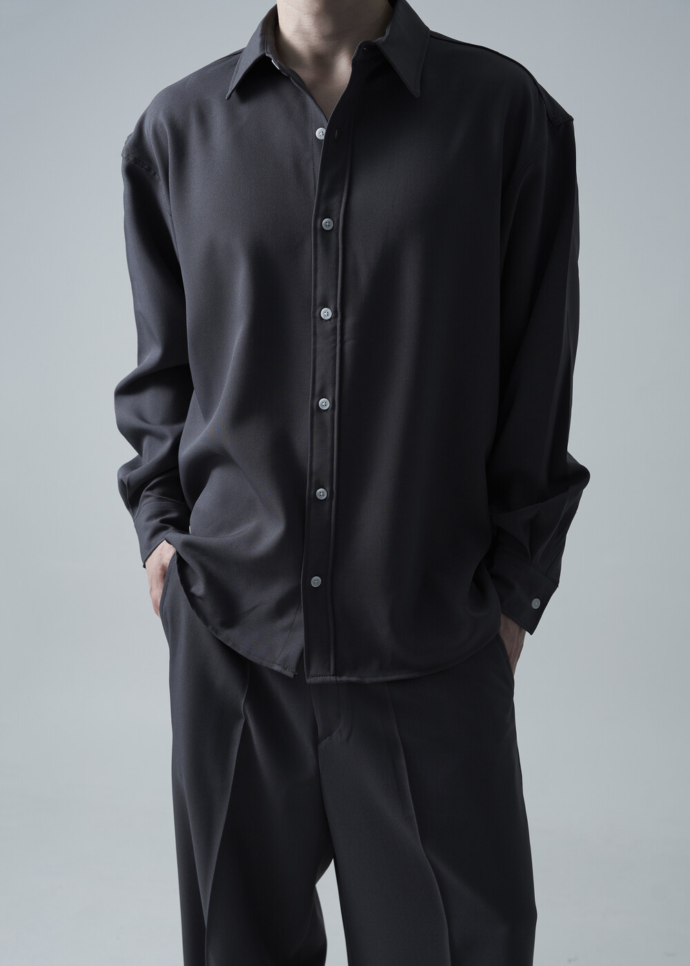 우아하게 찰랑거리는 실루엣이 매력적인 TR소재로 구성되어 미니멀한 아웃핏을 연출해주는 오버핏 셔츠 제품입니다.
