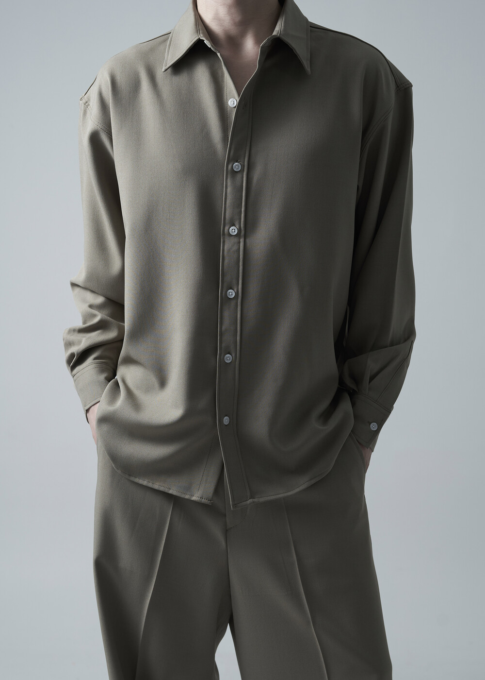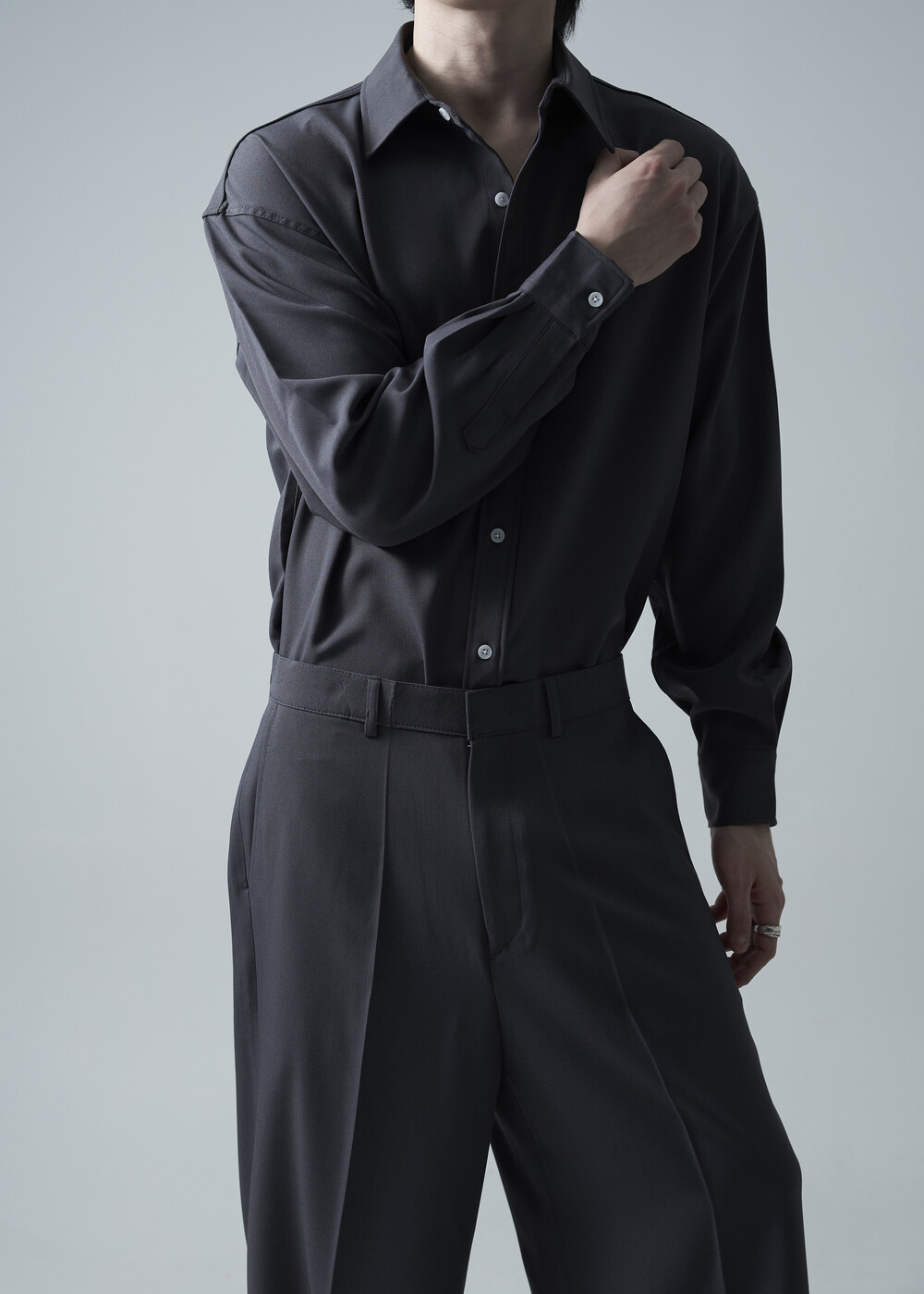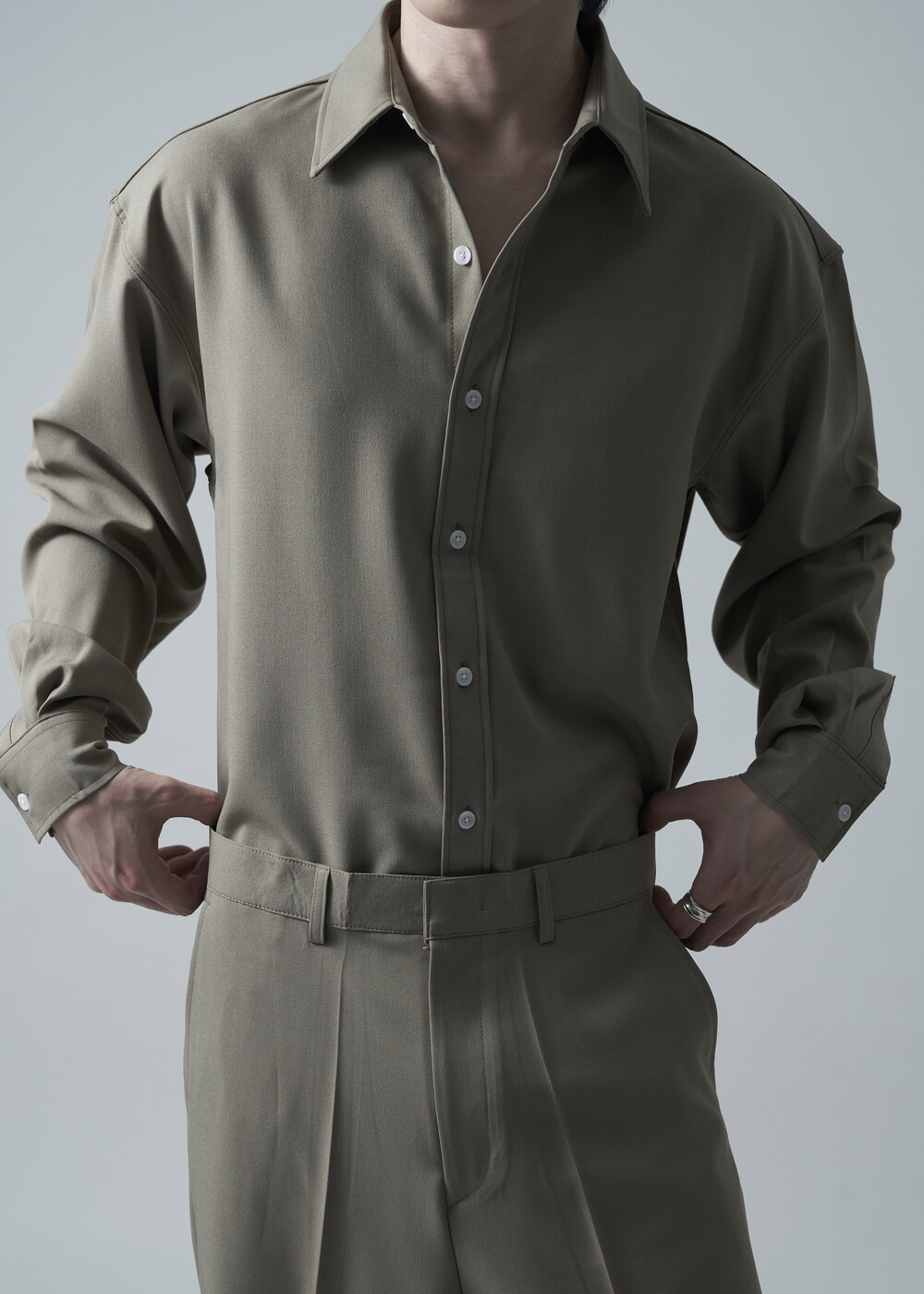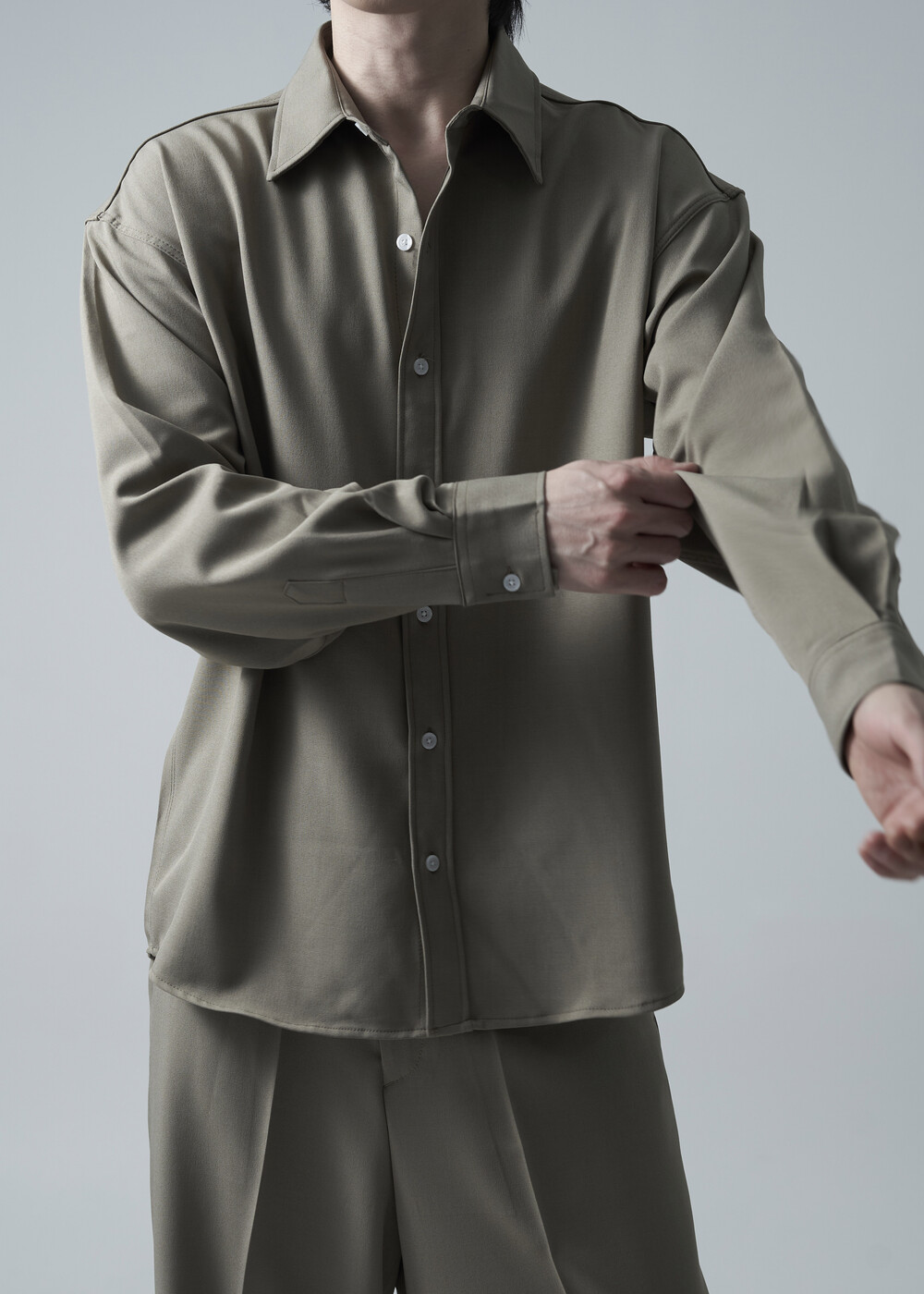 우아하게 찰랑거리는 실루엣이 매력적인 TR소재로 구성되어 미니멀한 아웃핏을 연출해주는 오버핏 셔츠 제품입니다.